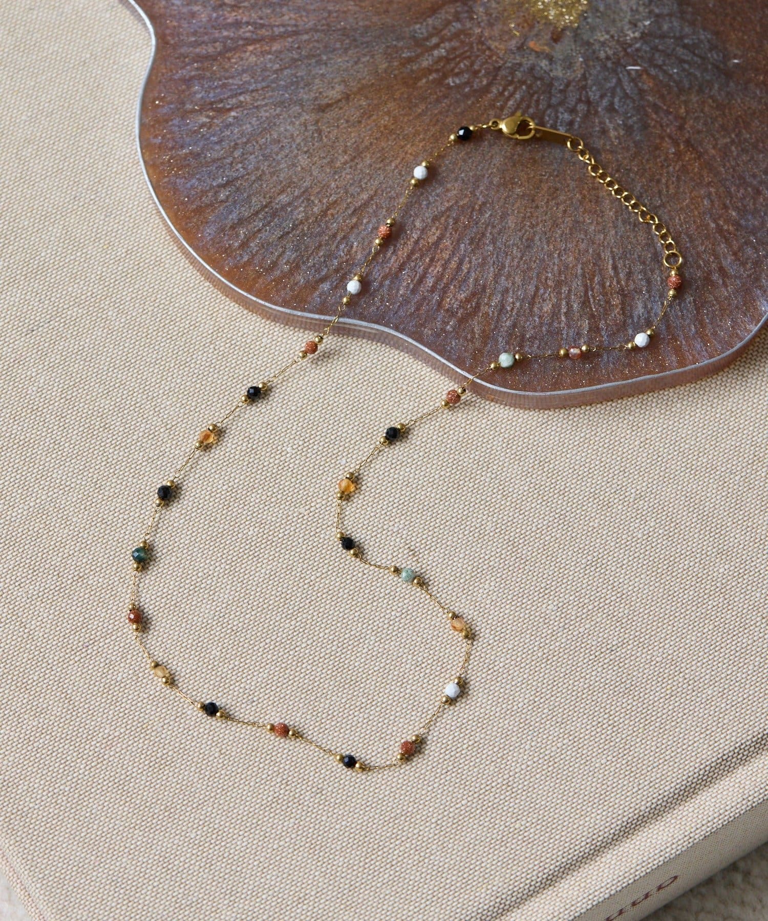 5種類の極小天然石が連なる「ブラウンストーンネックレス」