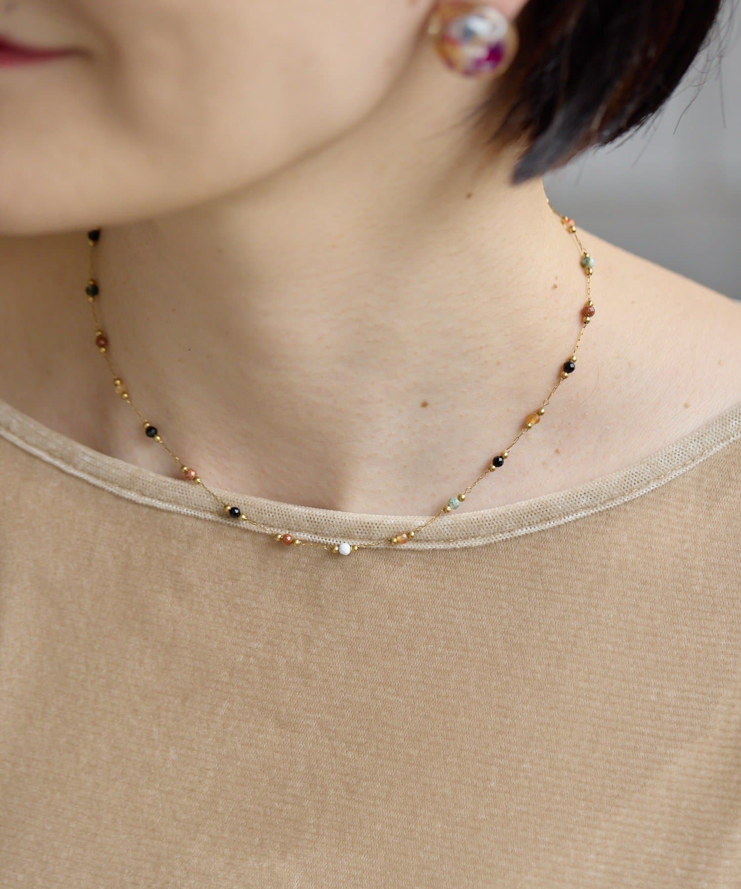 ・5種類の極小天然石がチェーンになった、贅沢なネックレス