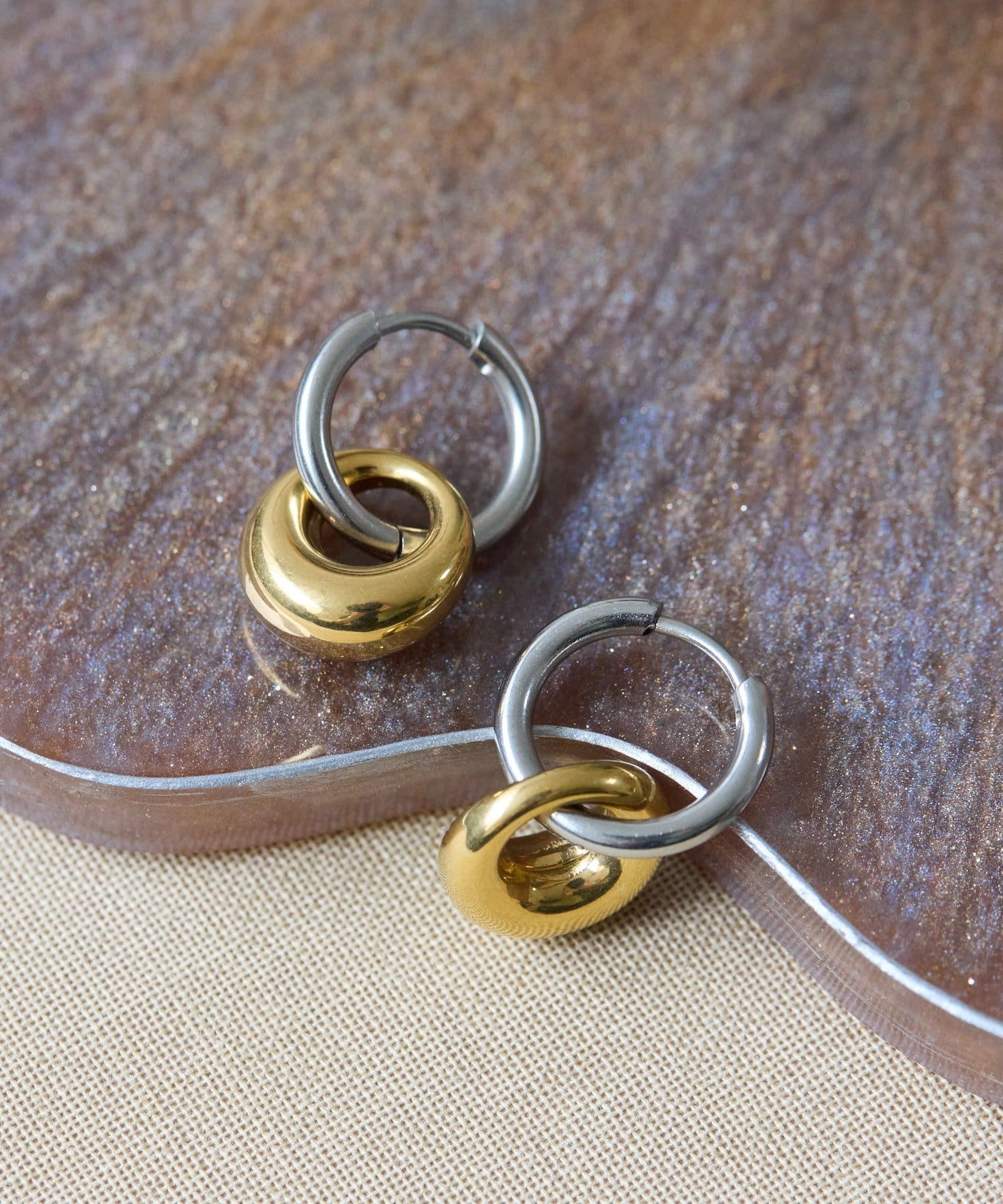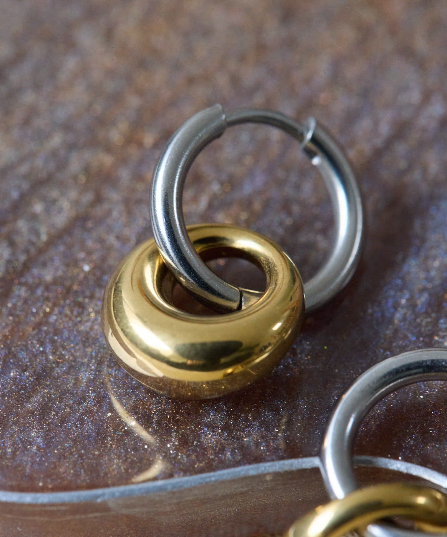 耳元で揺れる、遊び心あふれる「太輪バイカラーピアス」
