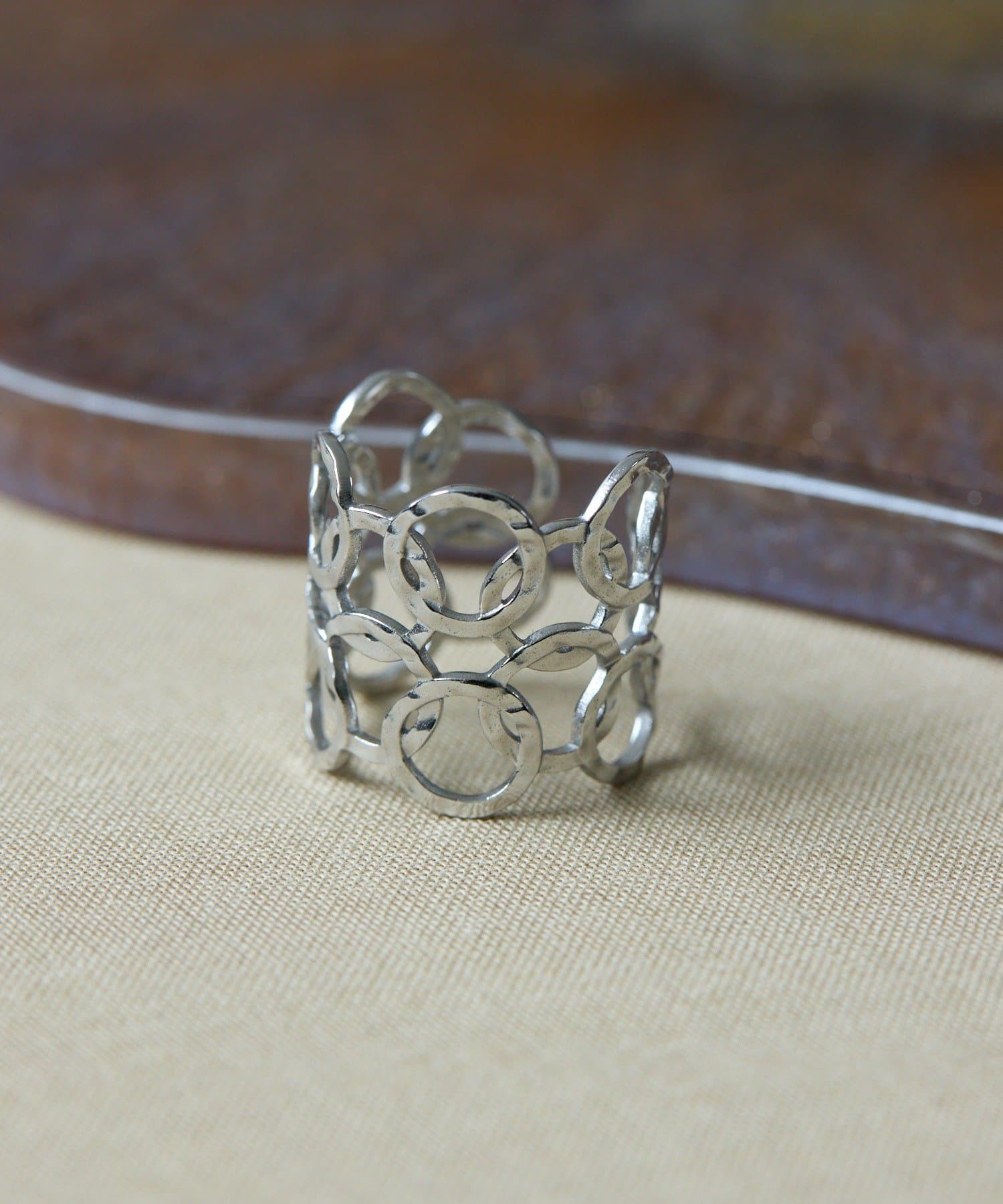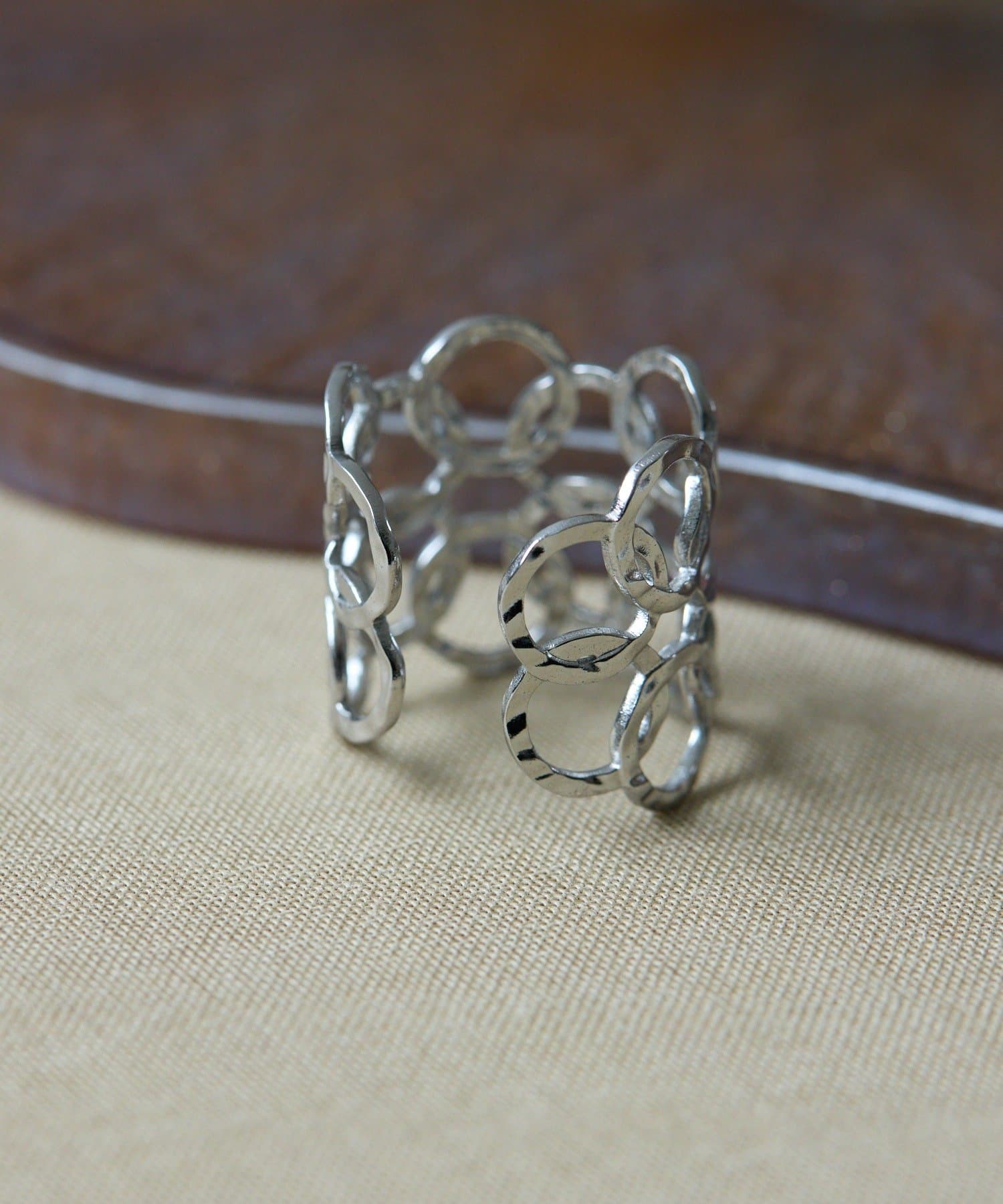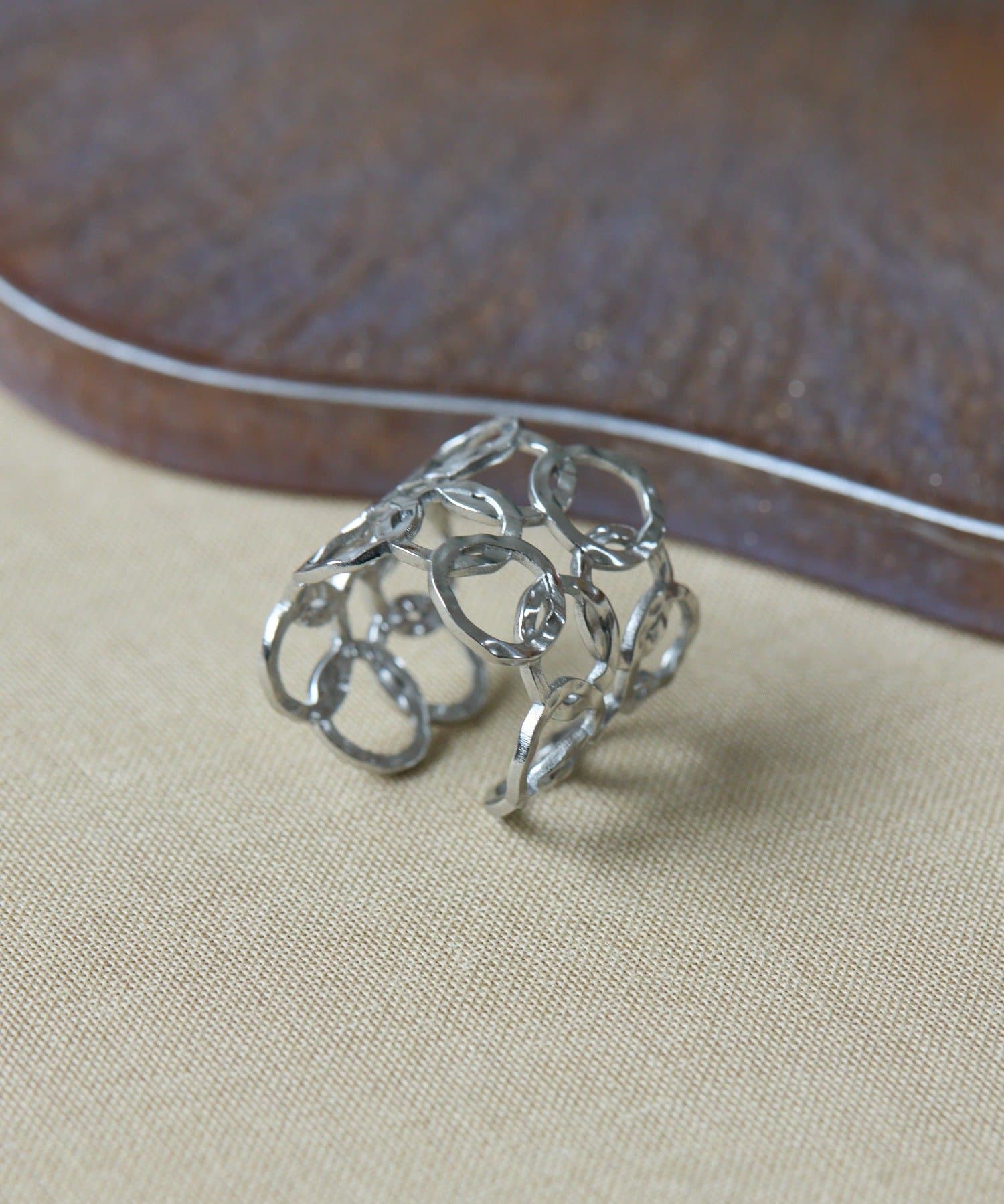 ・小さな輪っかを重ねて組み合わせた、ボリューム感のあるリング