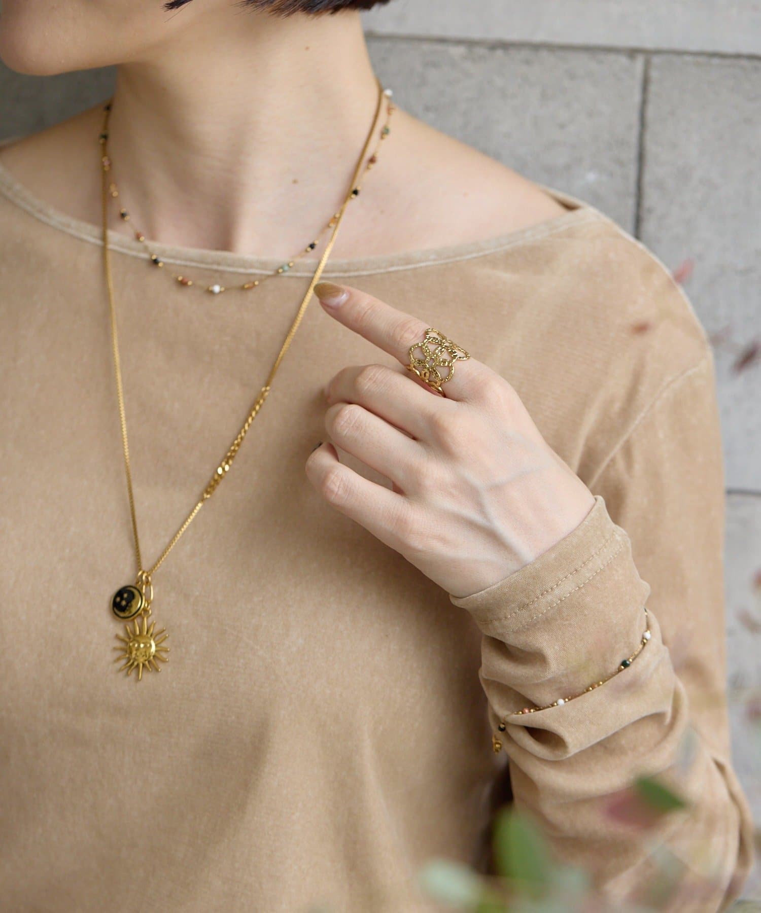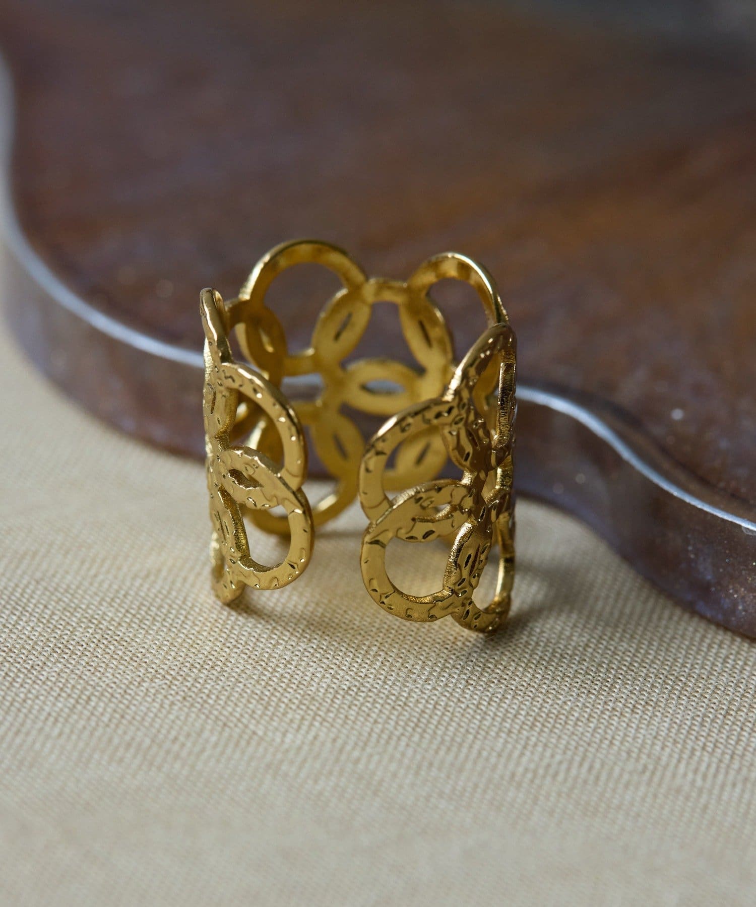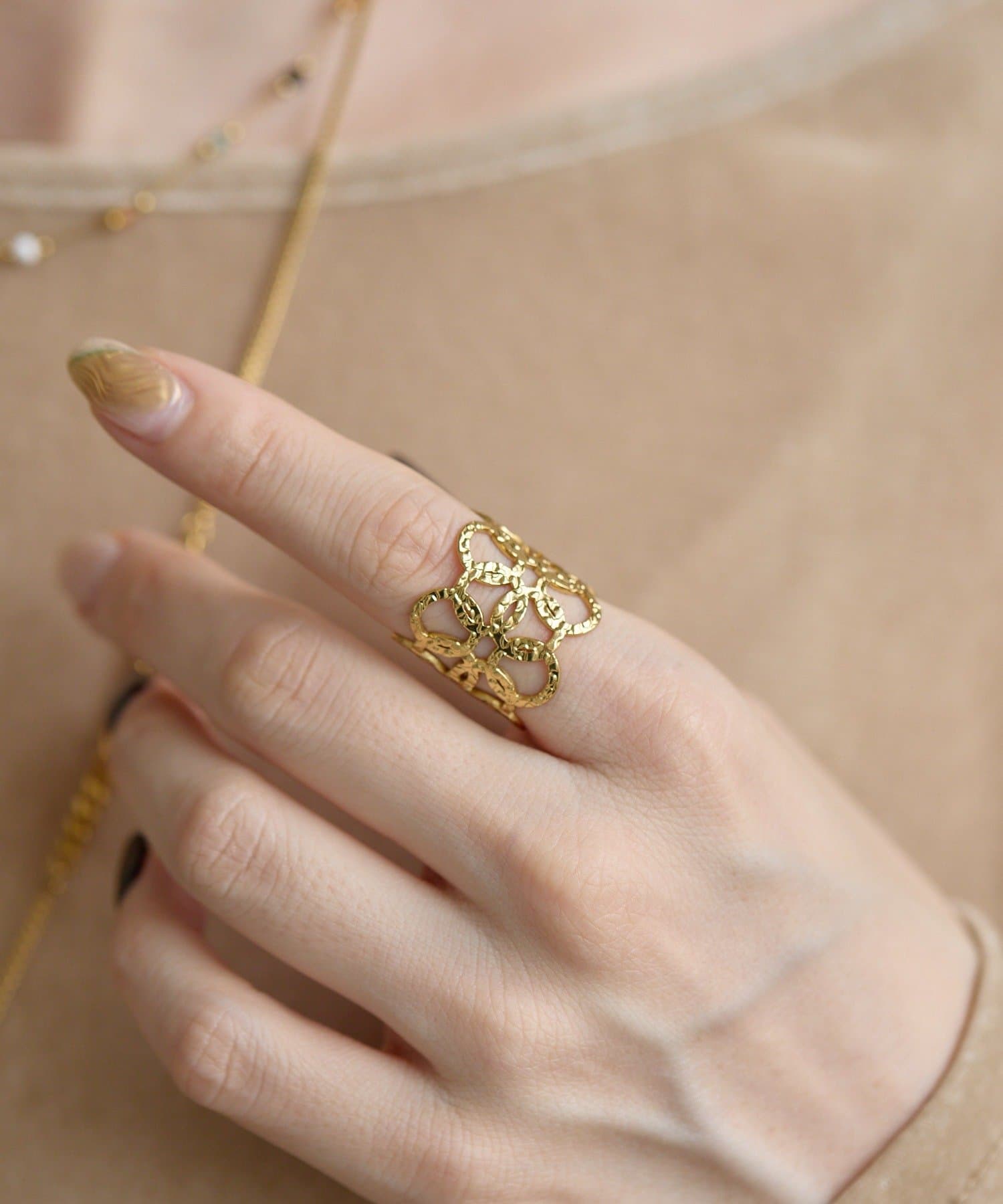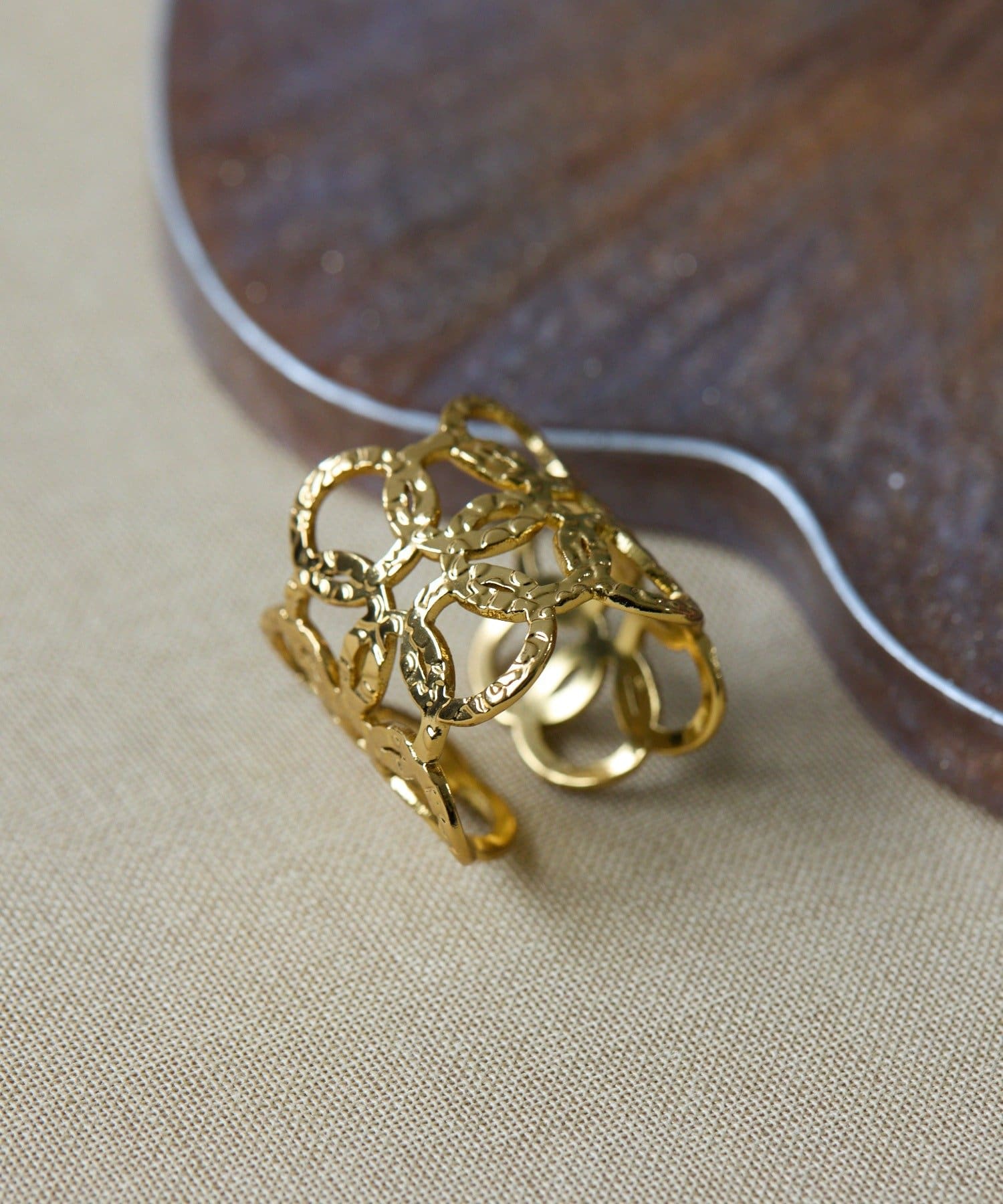 ・小さな輪っかを重ねて組み合わせた、ボリューム感のあるリング