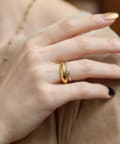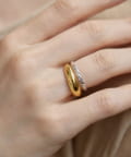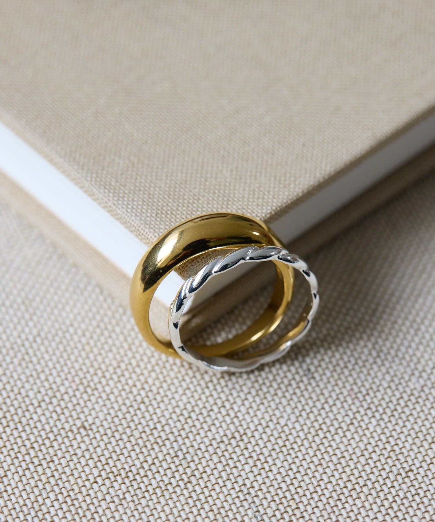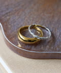 ・ぽってりと厚みあるリングに縞目模様のある細いリングを組み合わせ、全体の印象を引き締めています