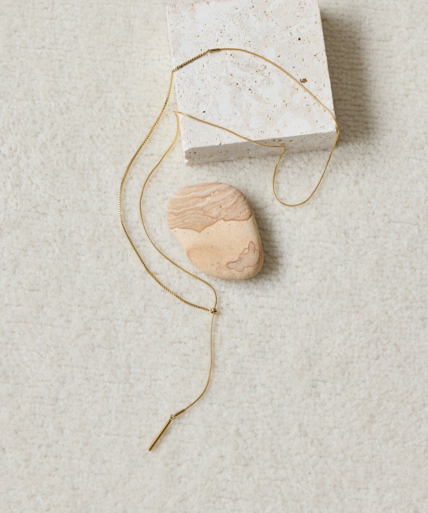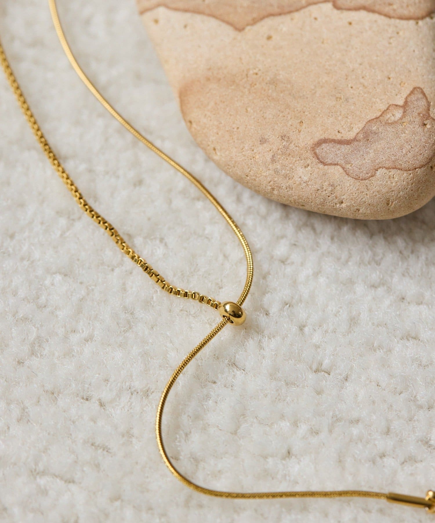 2種類のチェーンが織りなす繊細な輝きが、デコルテを美しく彩るY字ネックレス。