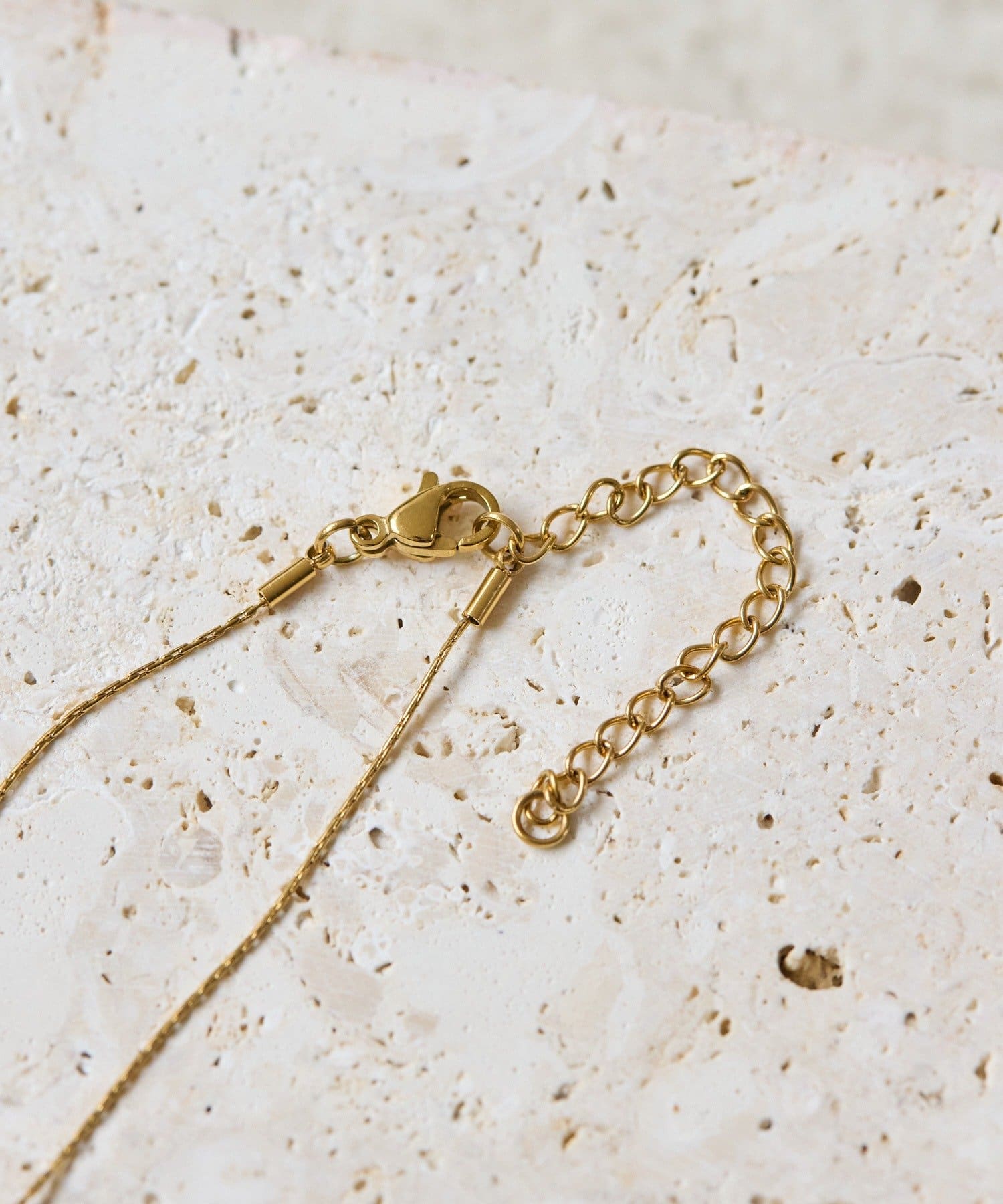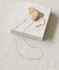 華奢なチェーンは首元をすっきりと見せ、さりげない女性らしさを演出。