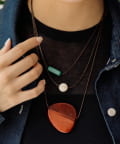 ・3つの異なるパーツが、段違いでバランスよく配置されたモダンなネックレス