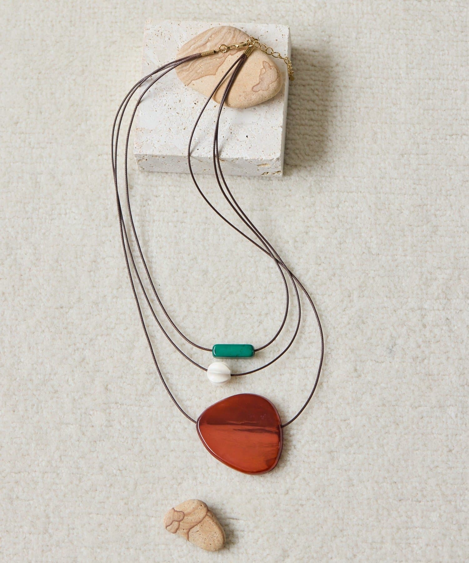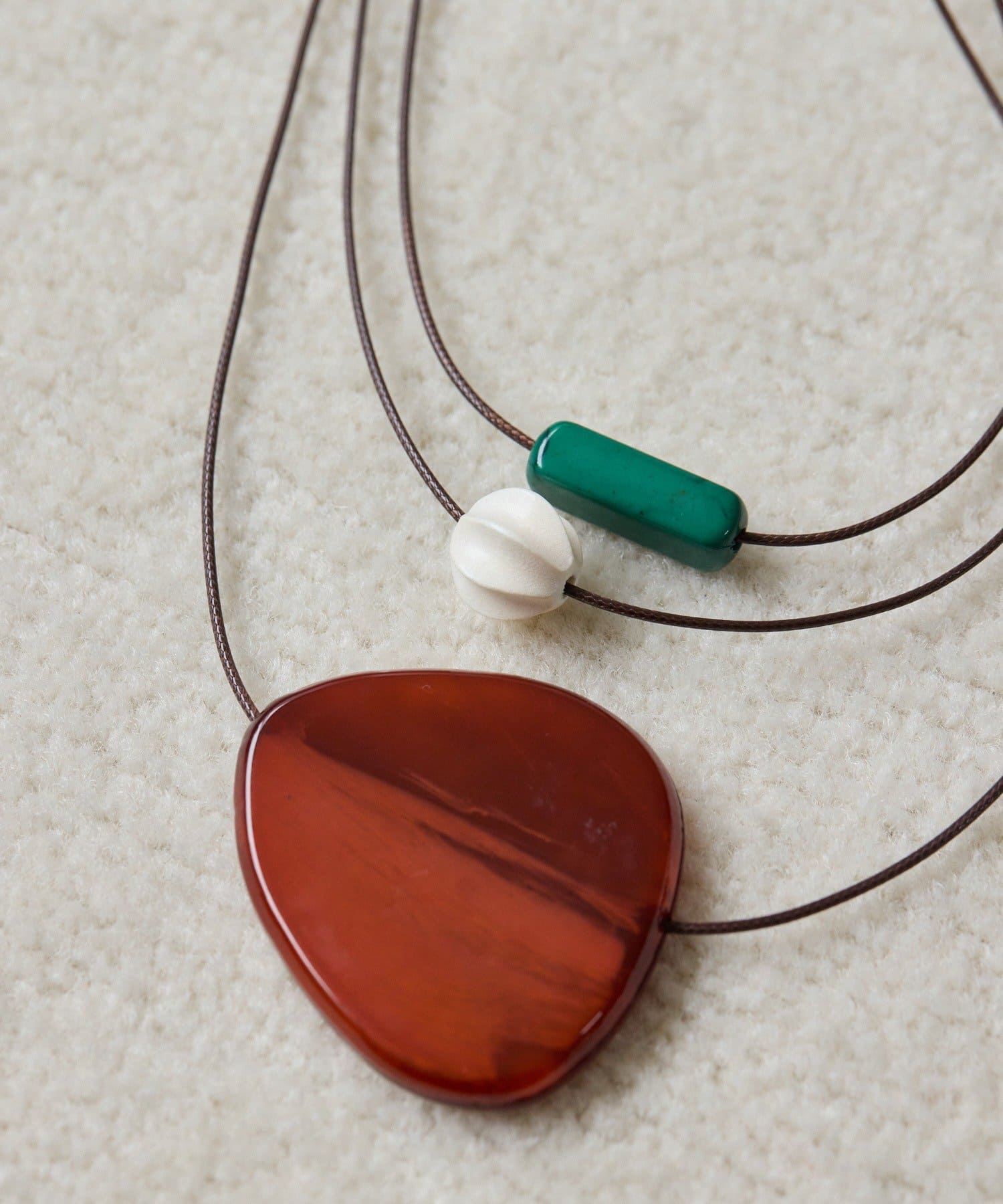 まるでアートを身に着けるような、ペインタリー3連ネックレス。