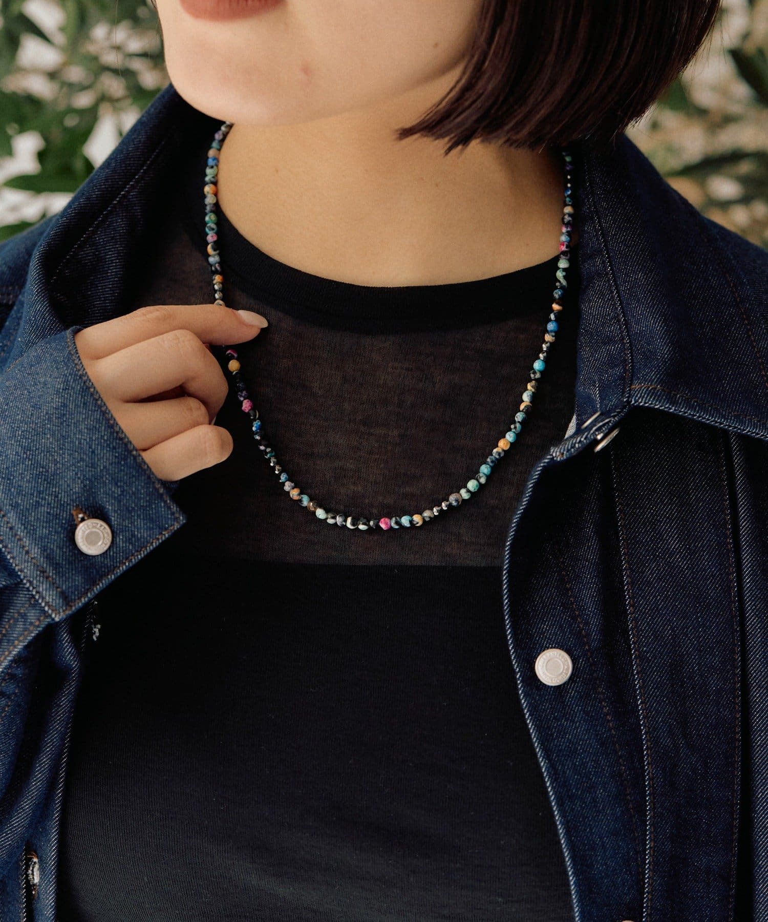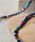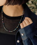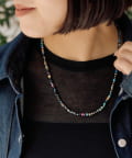 ブラックベースに多彩な色が散りばめられた、MIXカラーストーンネックレス。