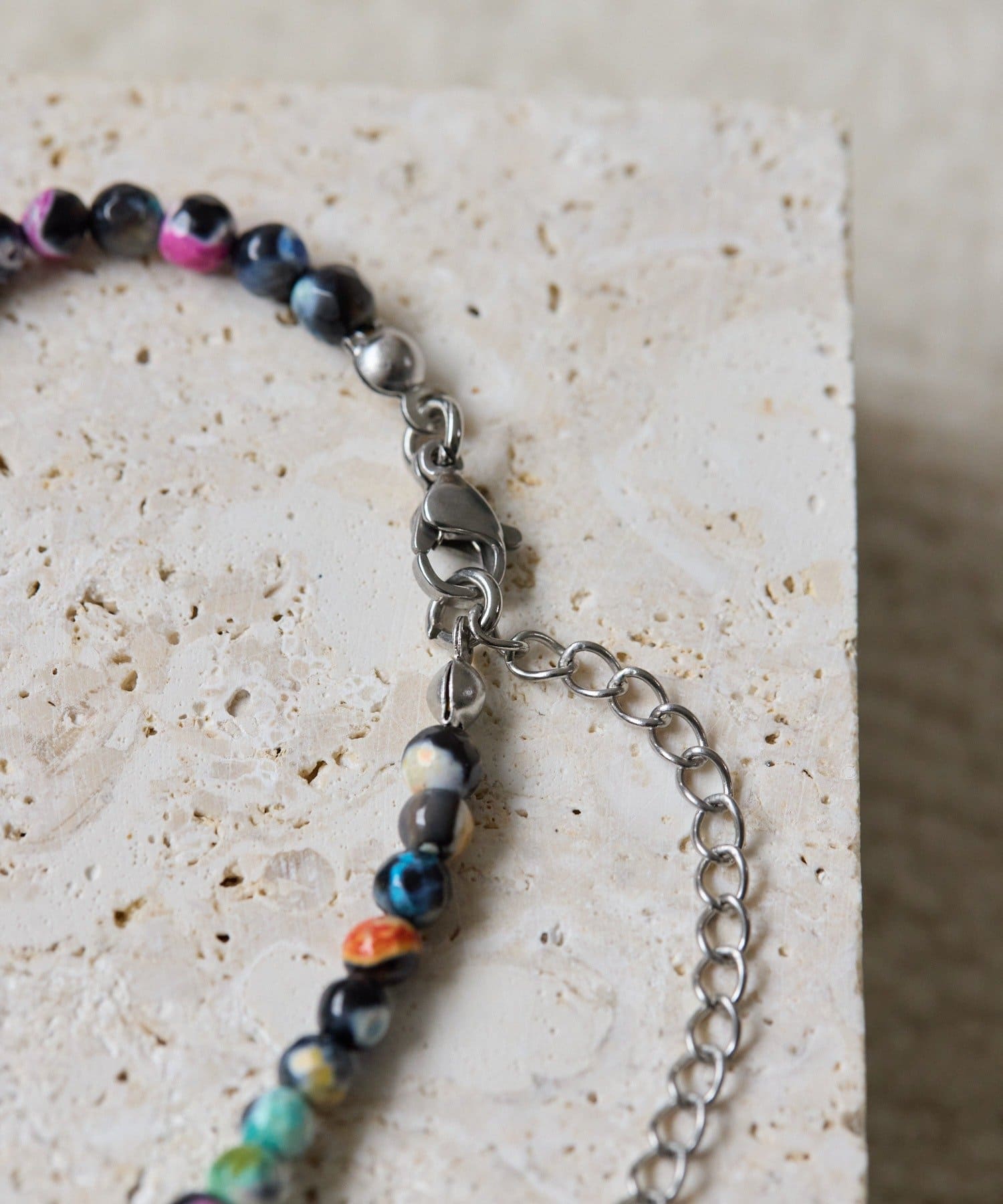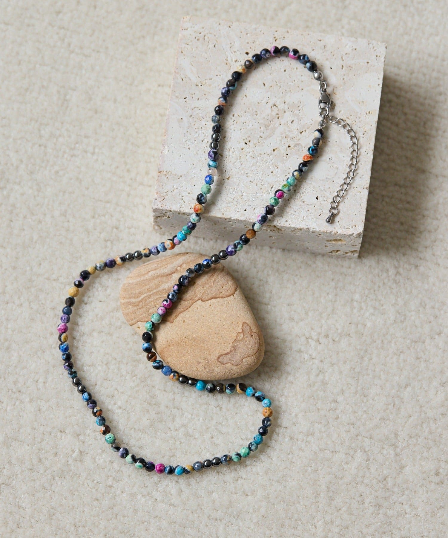 ・ブラックをベースにいろいろな色が混ざったカラフルな天然石のネックレス