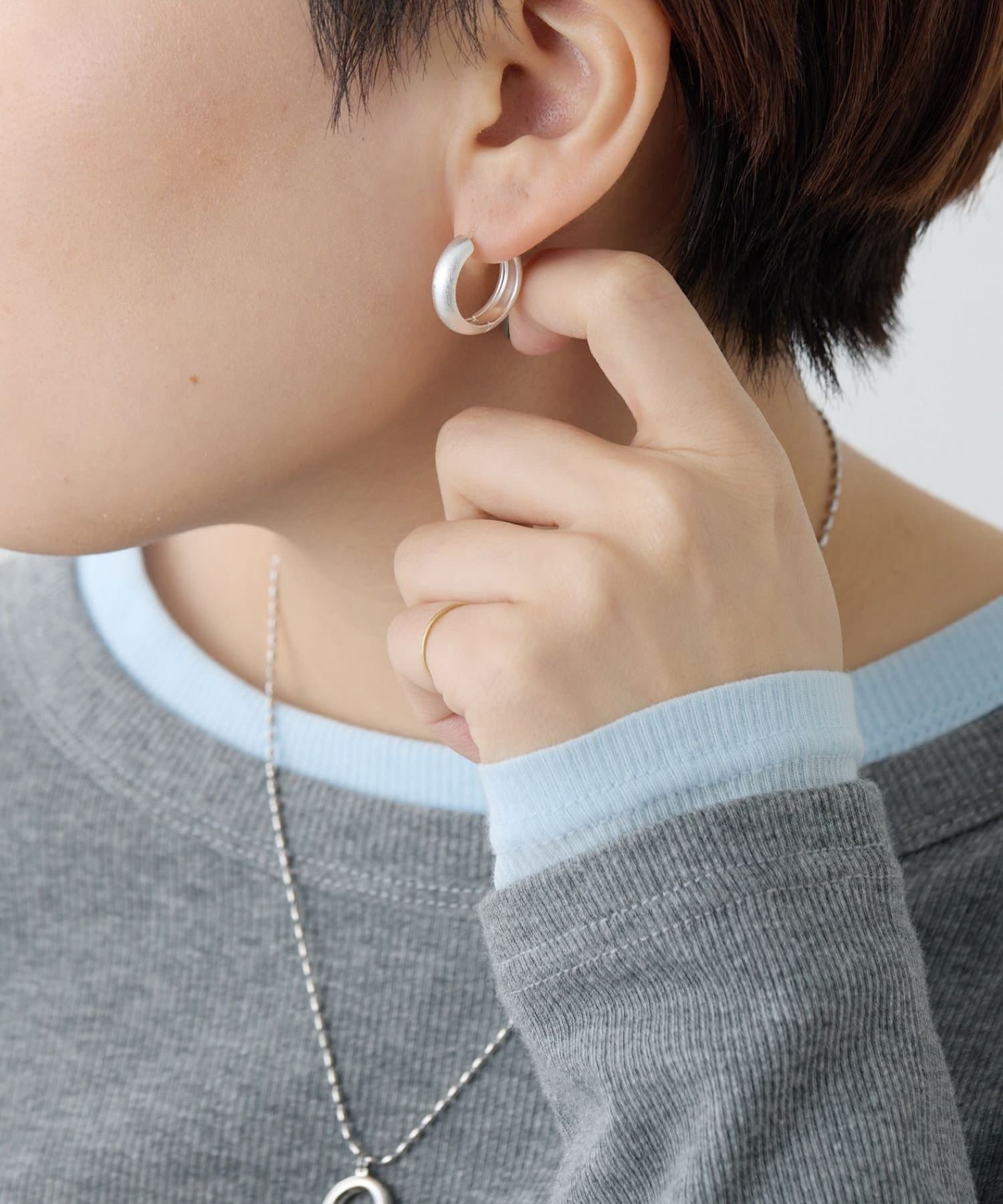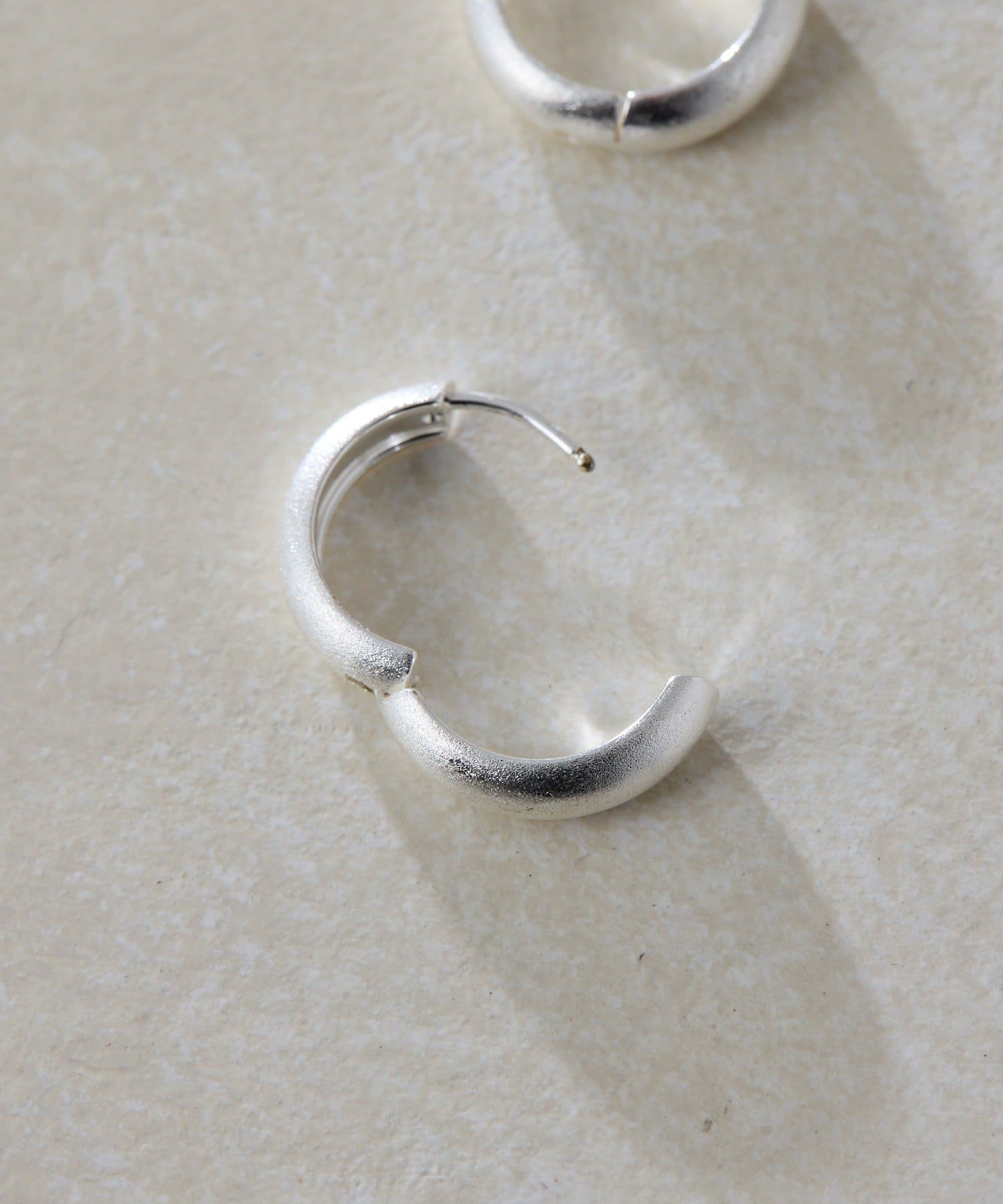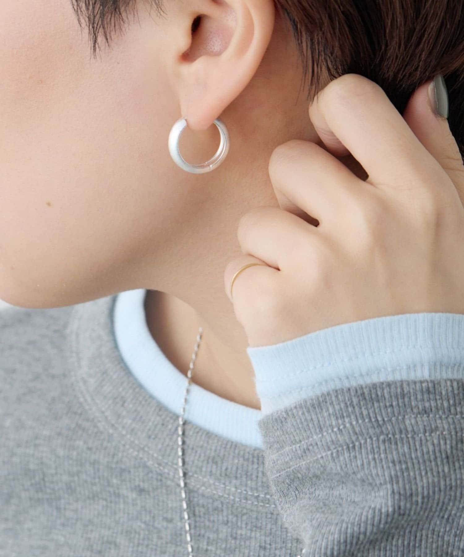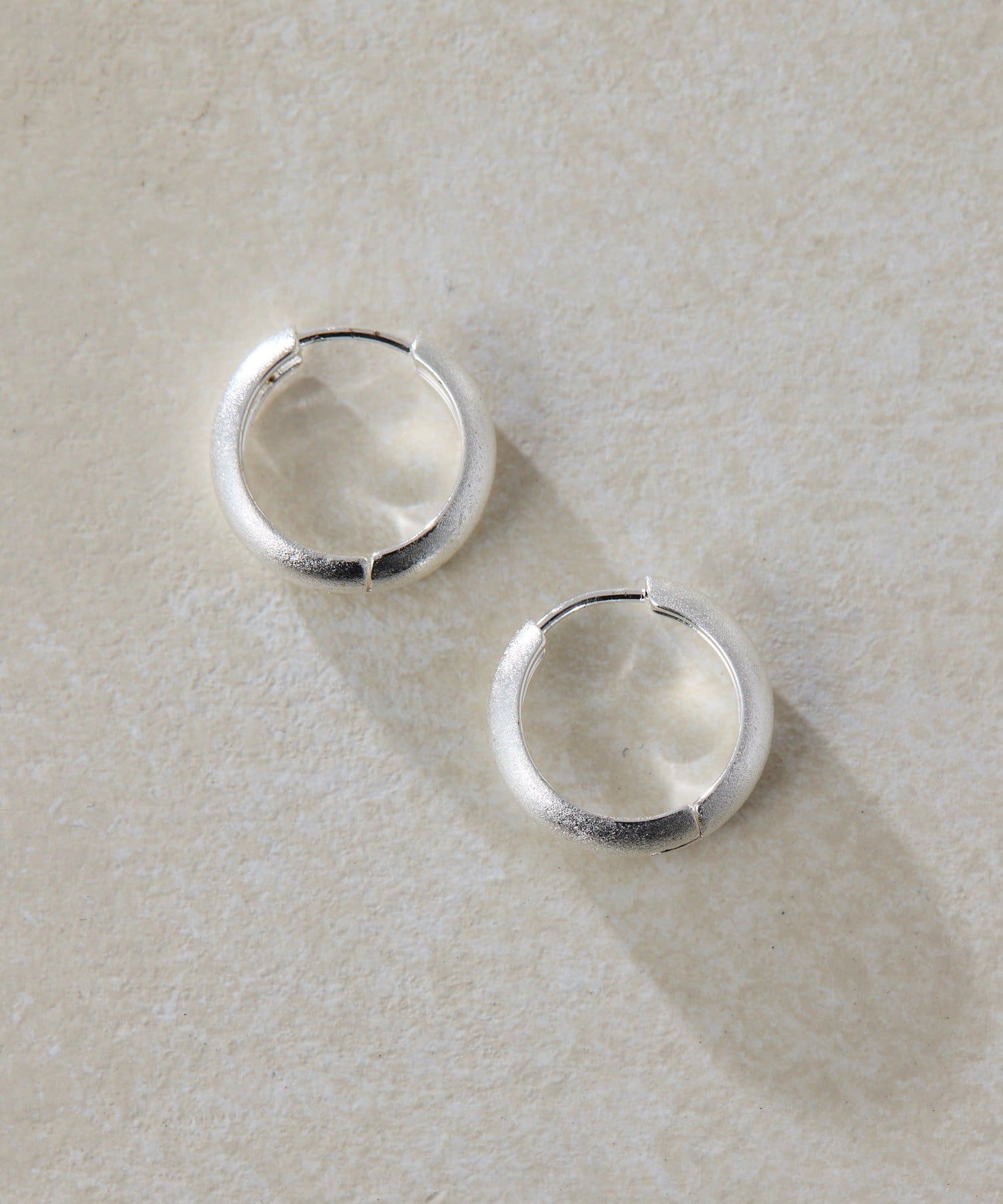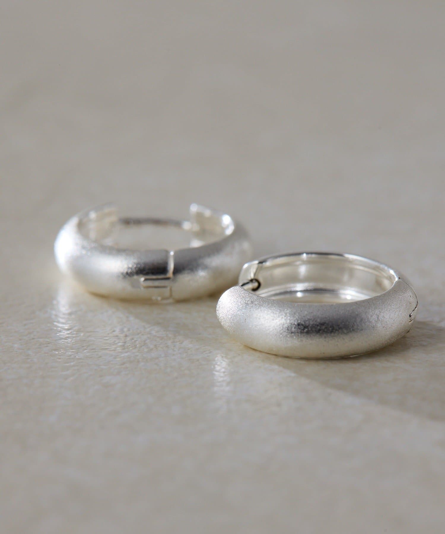 ・表面にサティーナ加工を加えたマットな質感のフープピアス