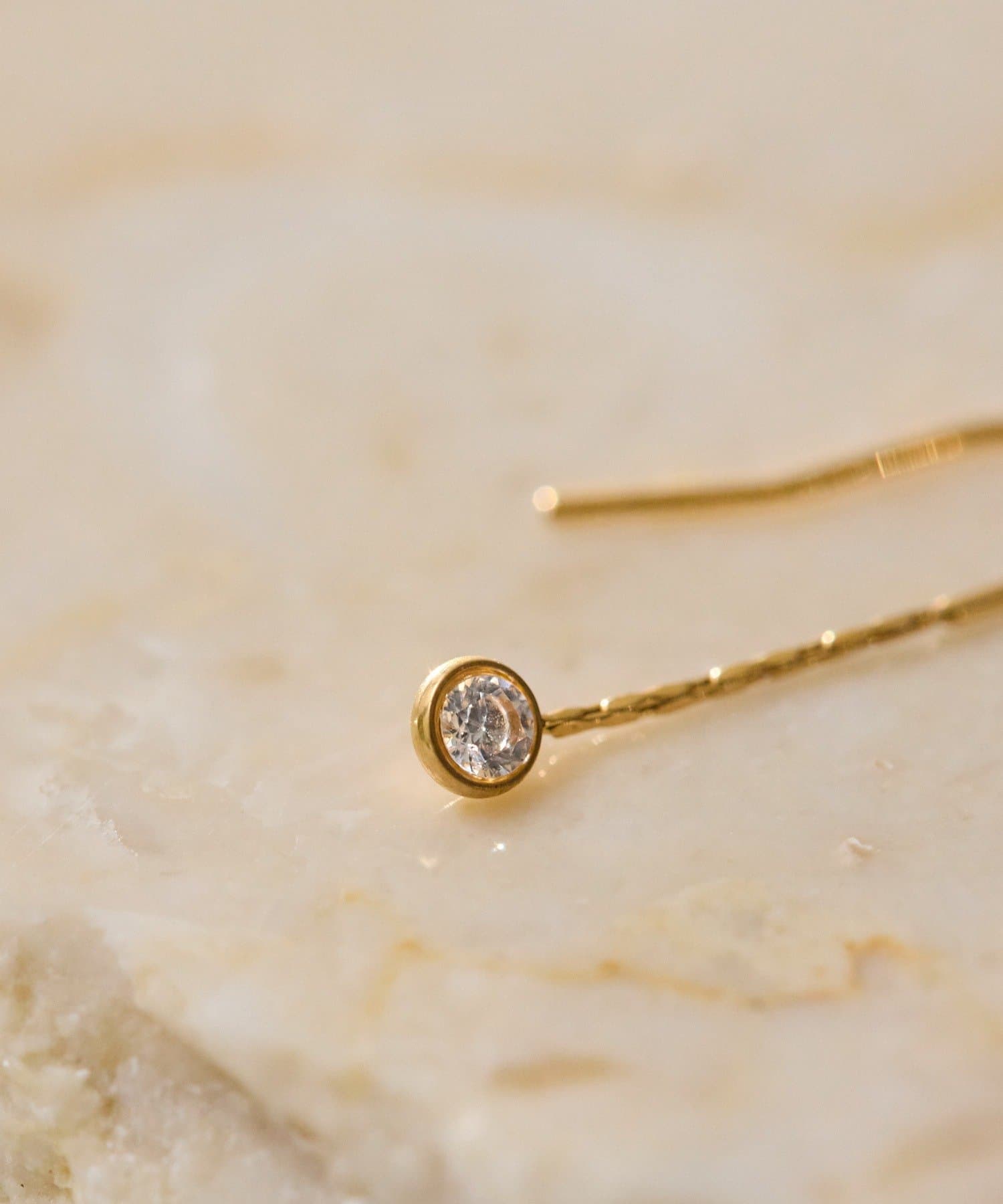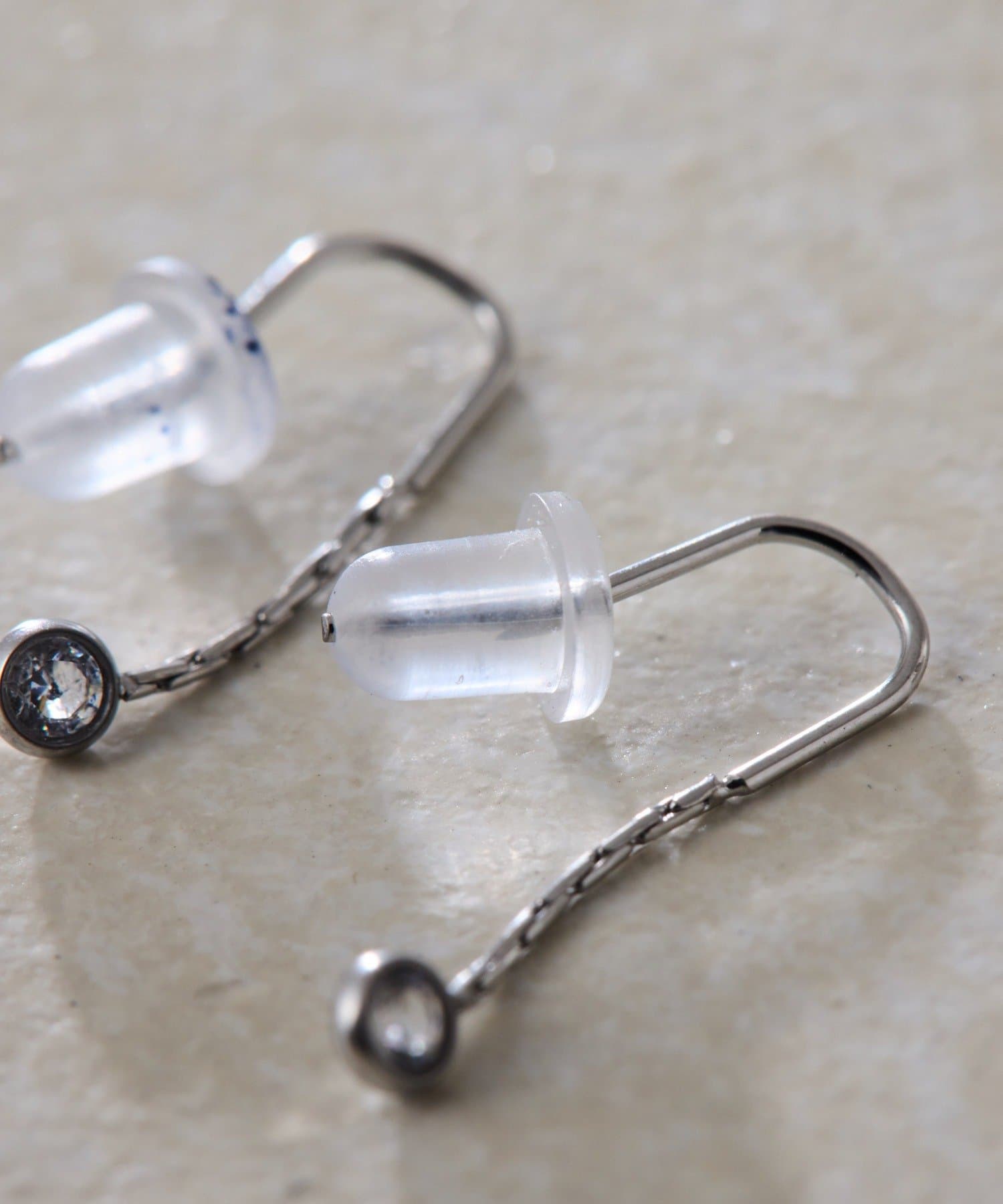 繊細なチェーンが、まるで一筆書きのように美しいミニフックピアス。