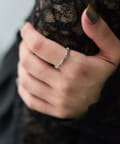 細身のリングなので、重ね付けもしやすく、普段使いにもおすすめです。