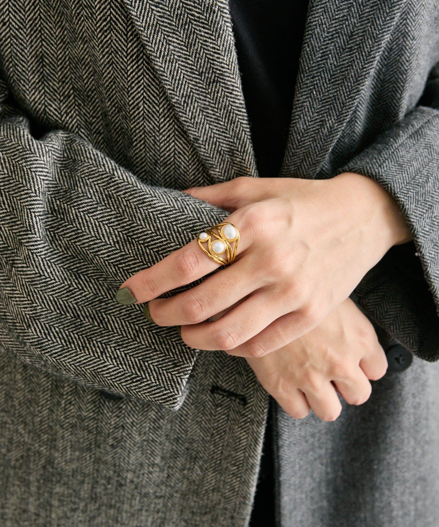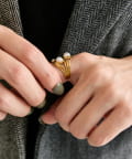 ・カボションパーツの並んだデザイン性の強いボリュームリング