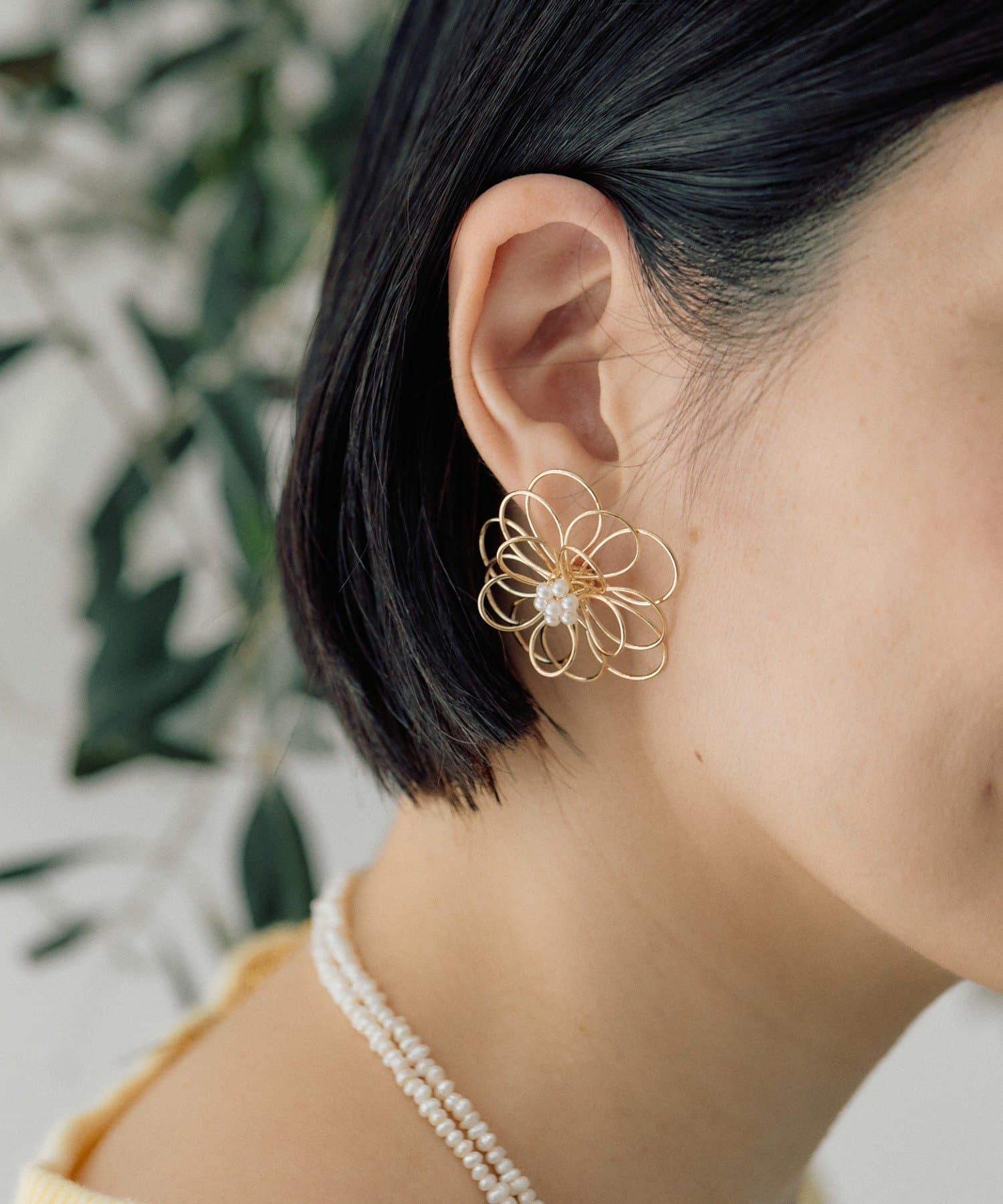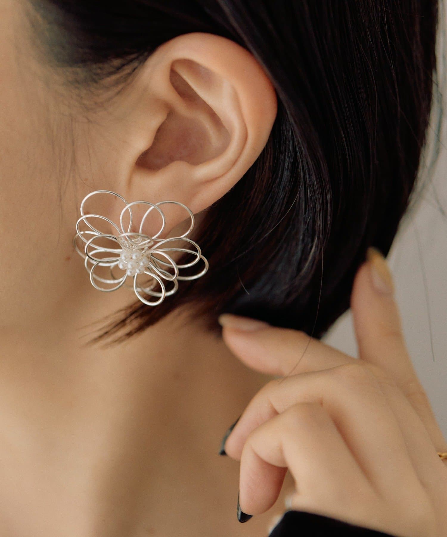 ・ワイヤーで花びらをかたどった、立体感のあるフラワーピアス