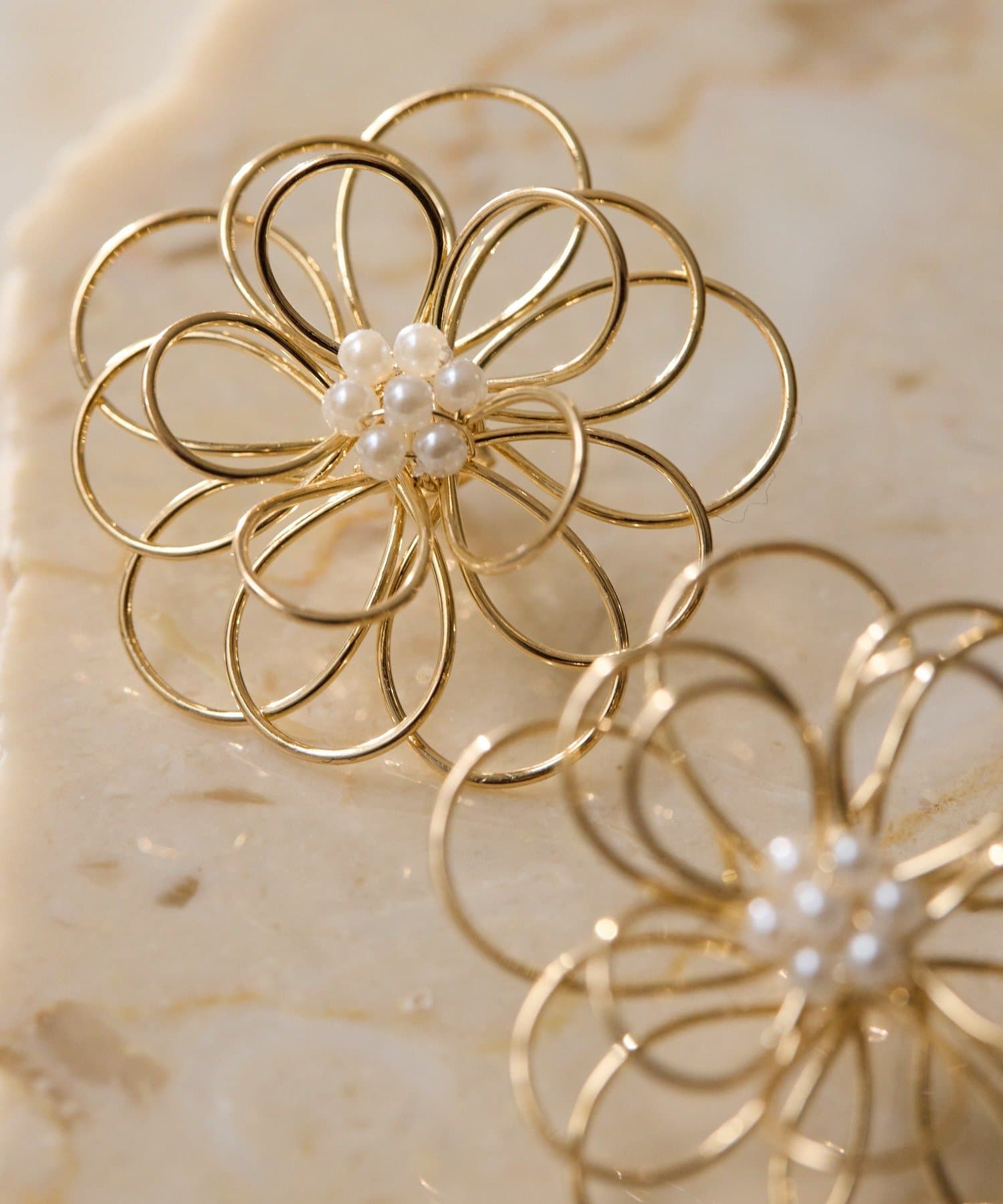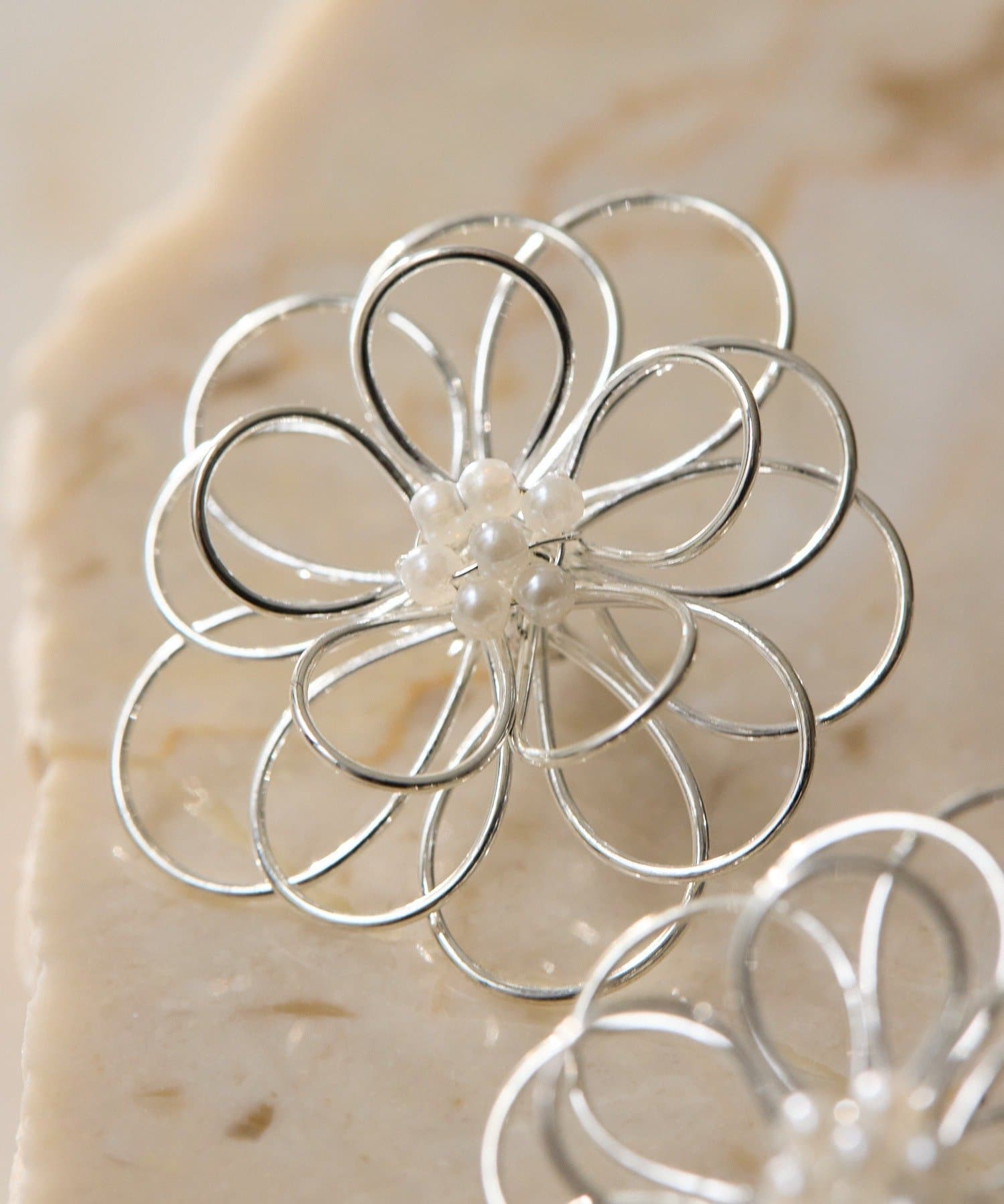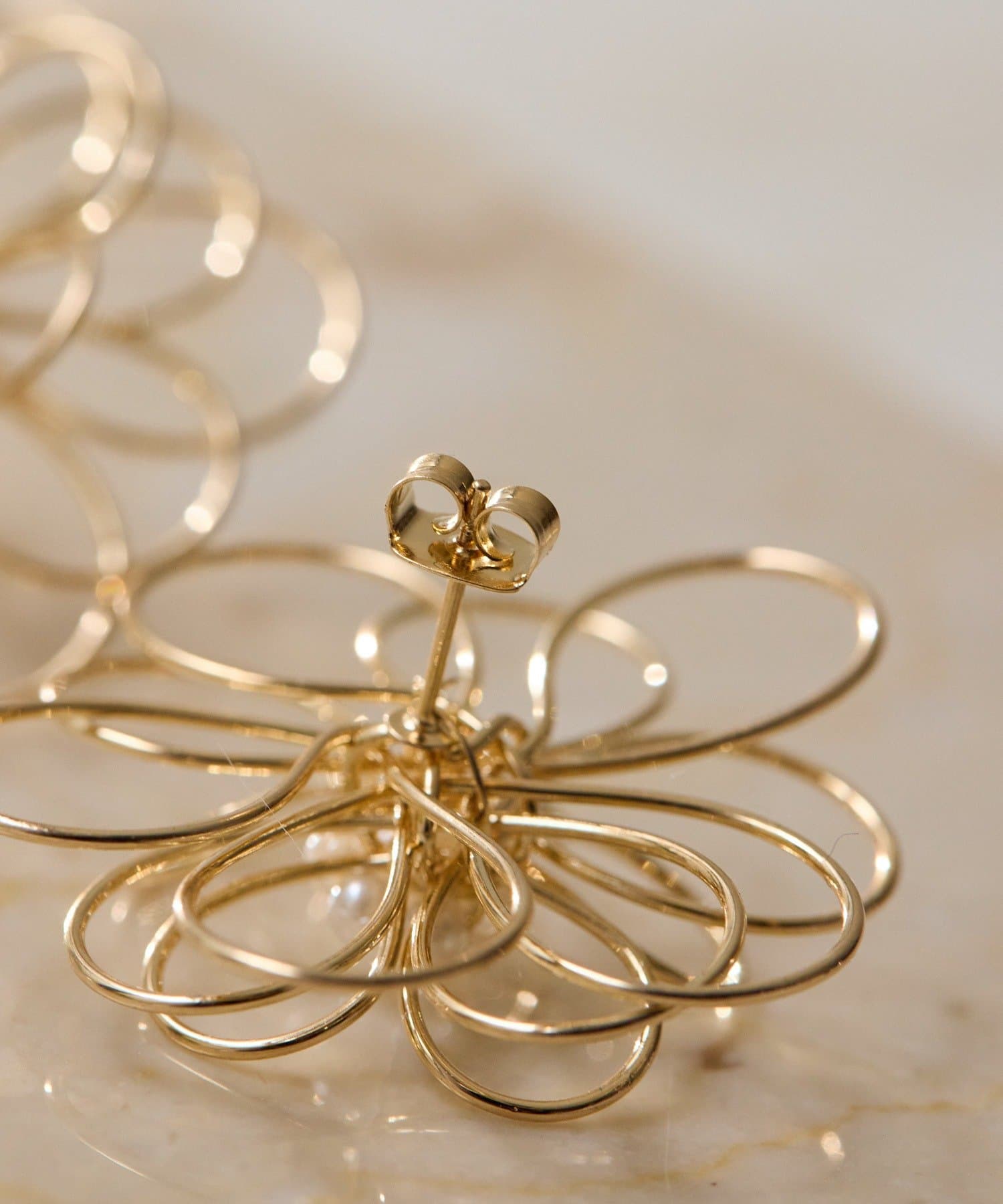 ・ワイヤーで花びらをかたどった、立体感のあるフラワーピアス
