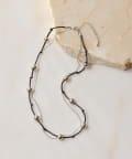 ・メタルビーズの通ったナイロンコードとチェーンの2連ネックレス