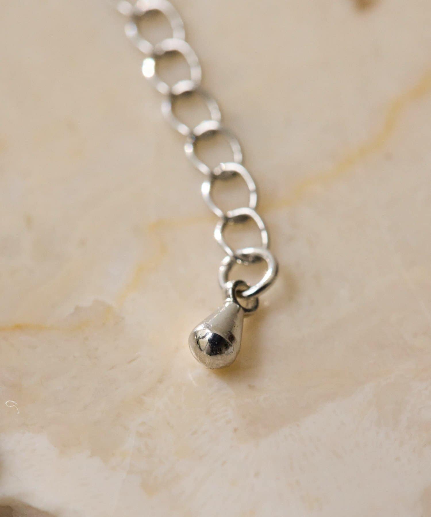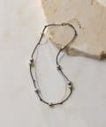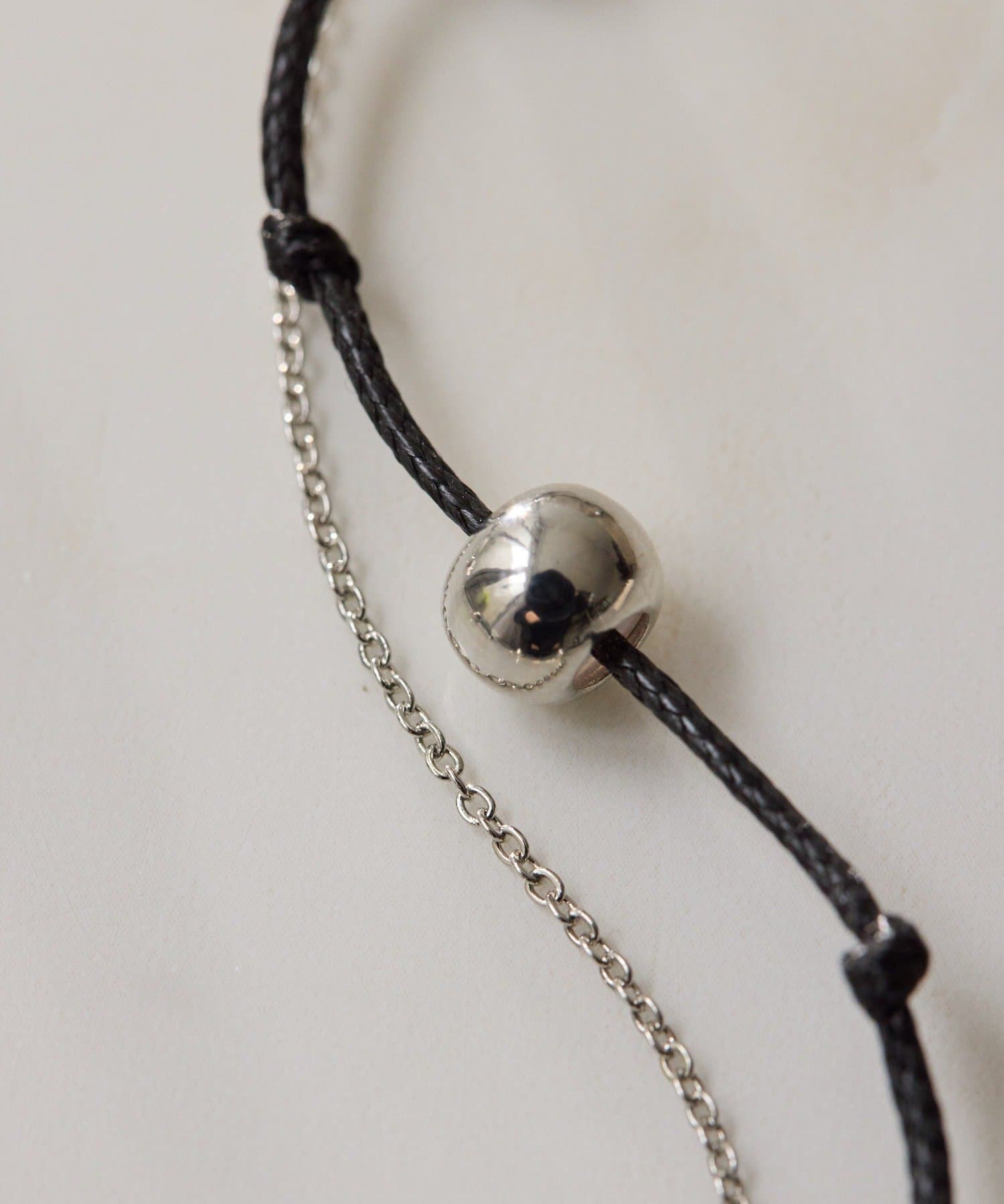 メタルビーズがアクセントのナイロンコードと、繊細なチェーンの組み合わせが、首元をスタイリッシュに彩ります。