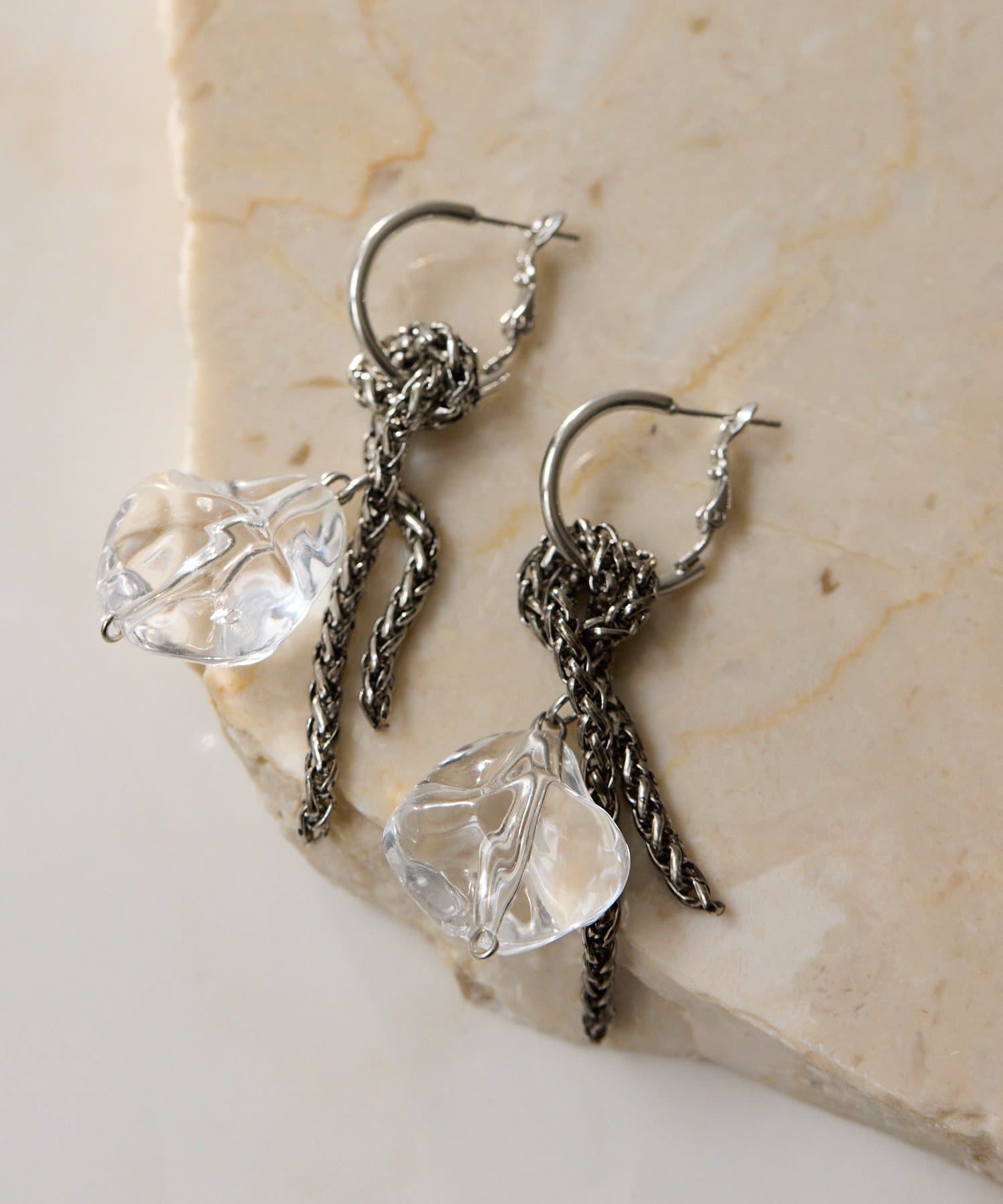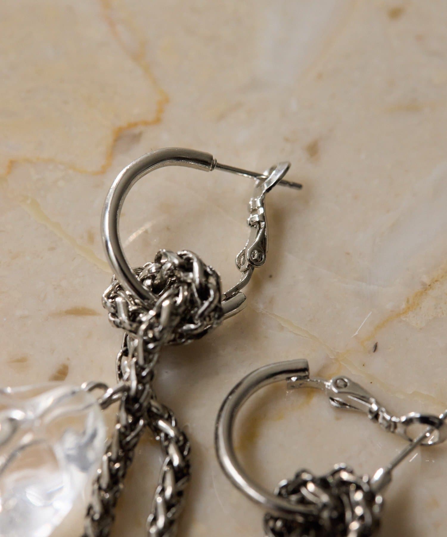 太めのチェーンと大ぶりなクリアパーツが、耳元にエッジの効いたアクセントをプラス。