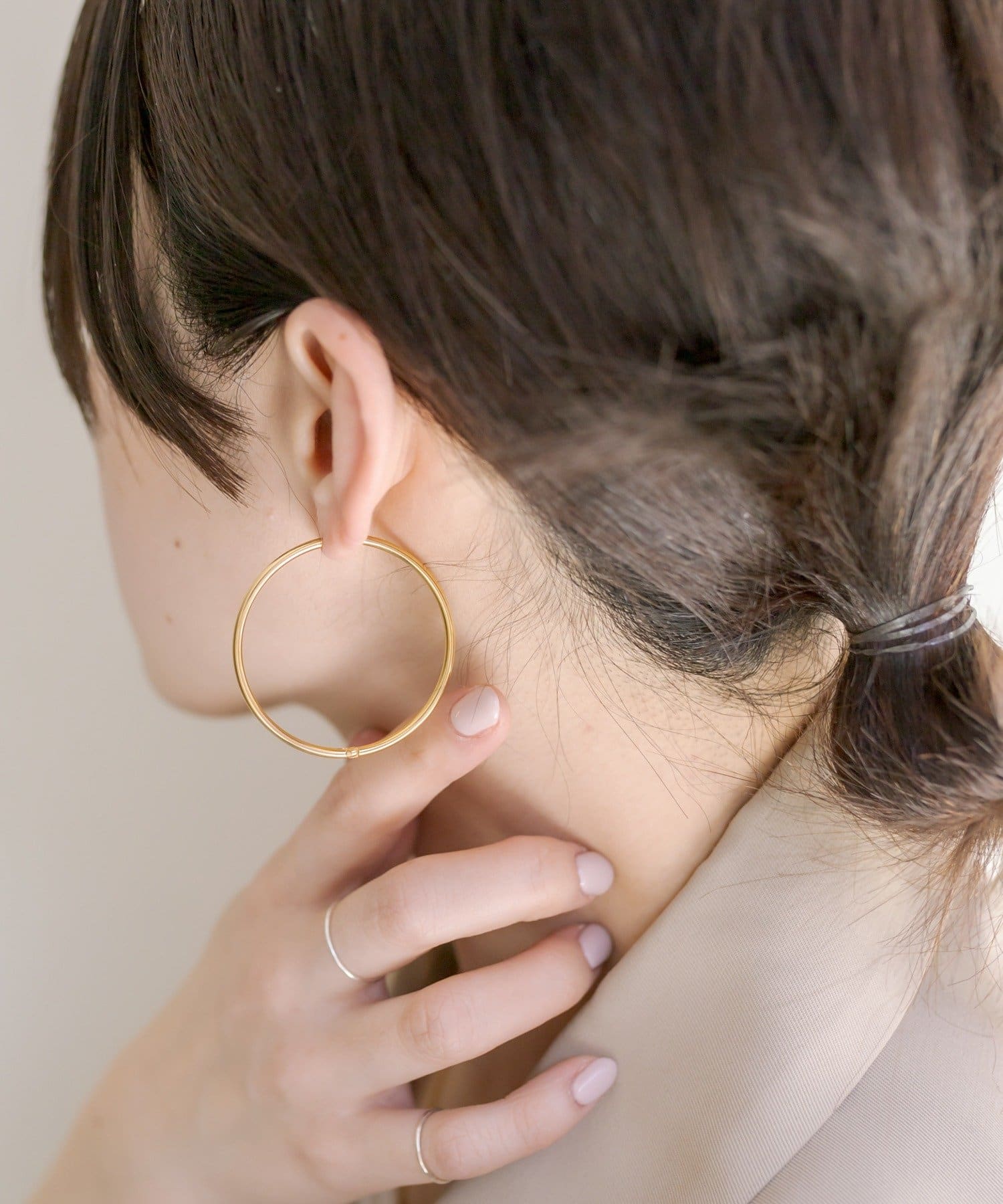 大きすぎず小さすぎない丁度良い大きさが魅力のフープピアス。