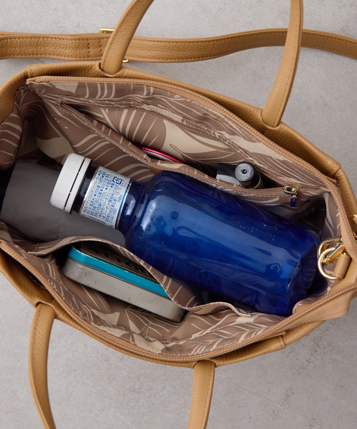 中を開けると裏地はリーフ柄。