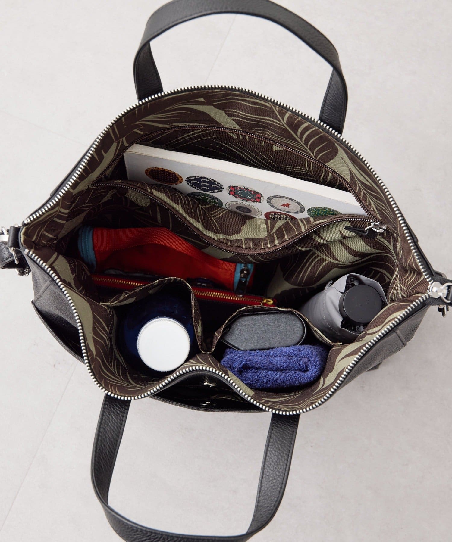 • 裏地はリーフ柄プリント入り