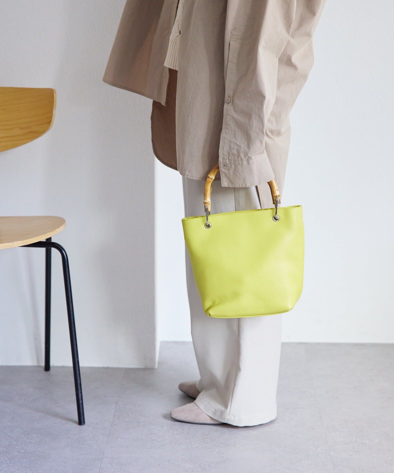 バンブーハンドルが印象的な大人の上質レザーバッグ。