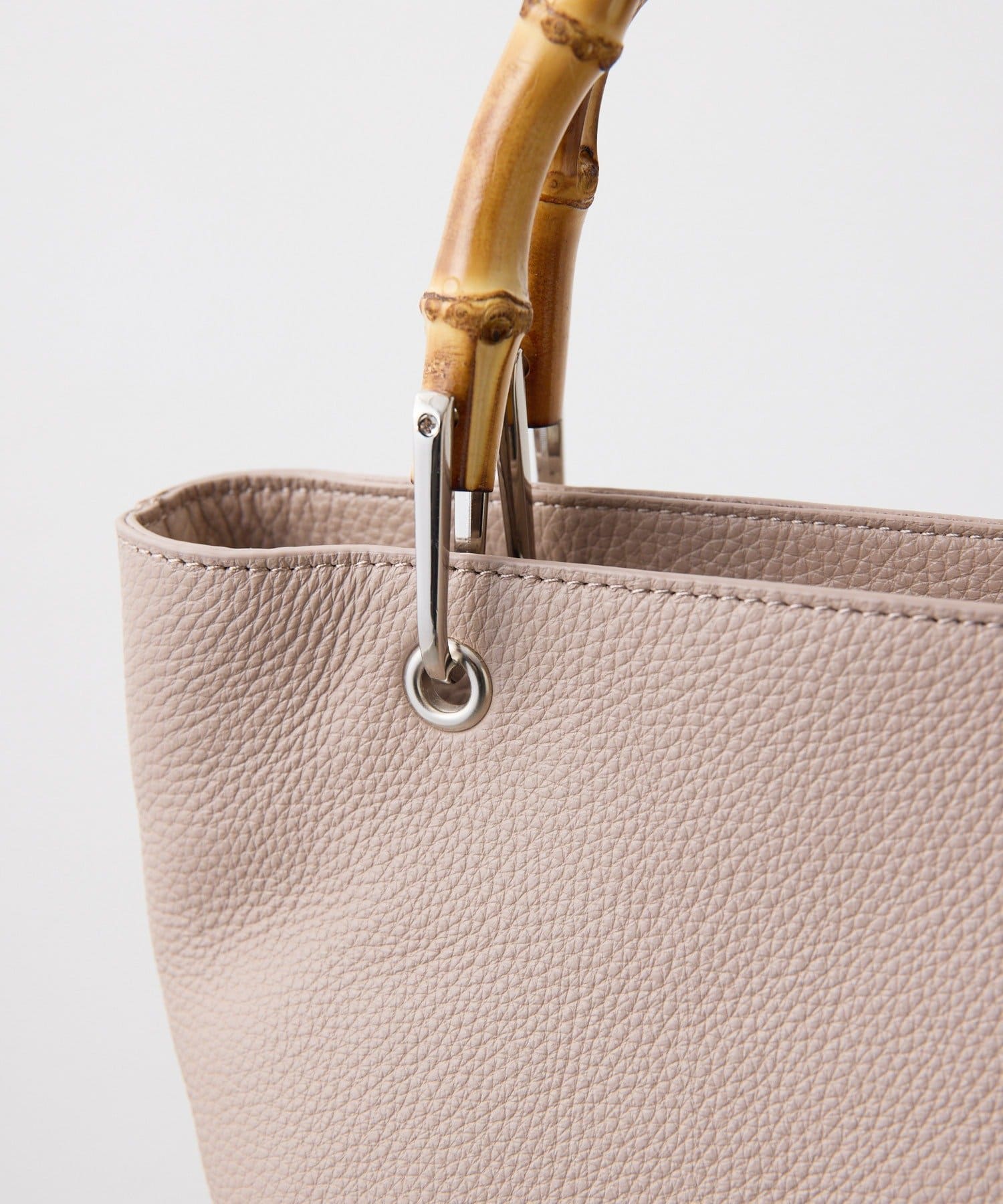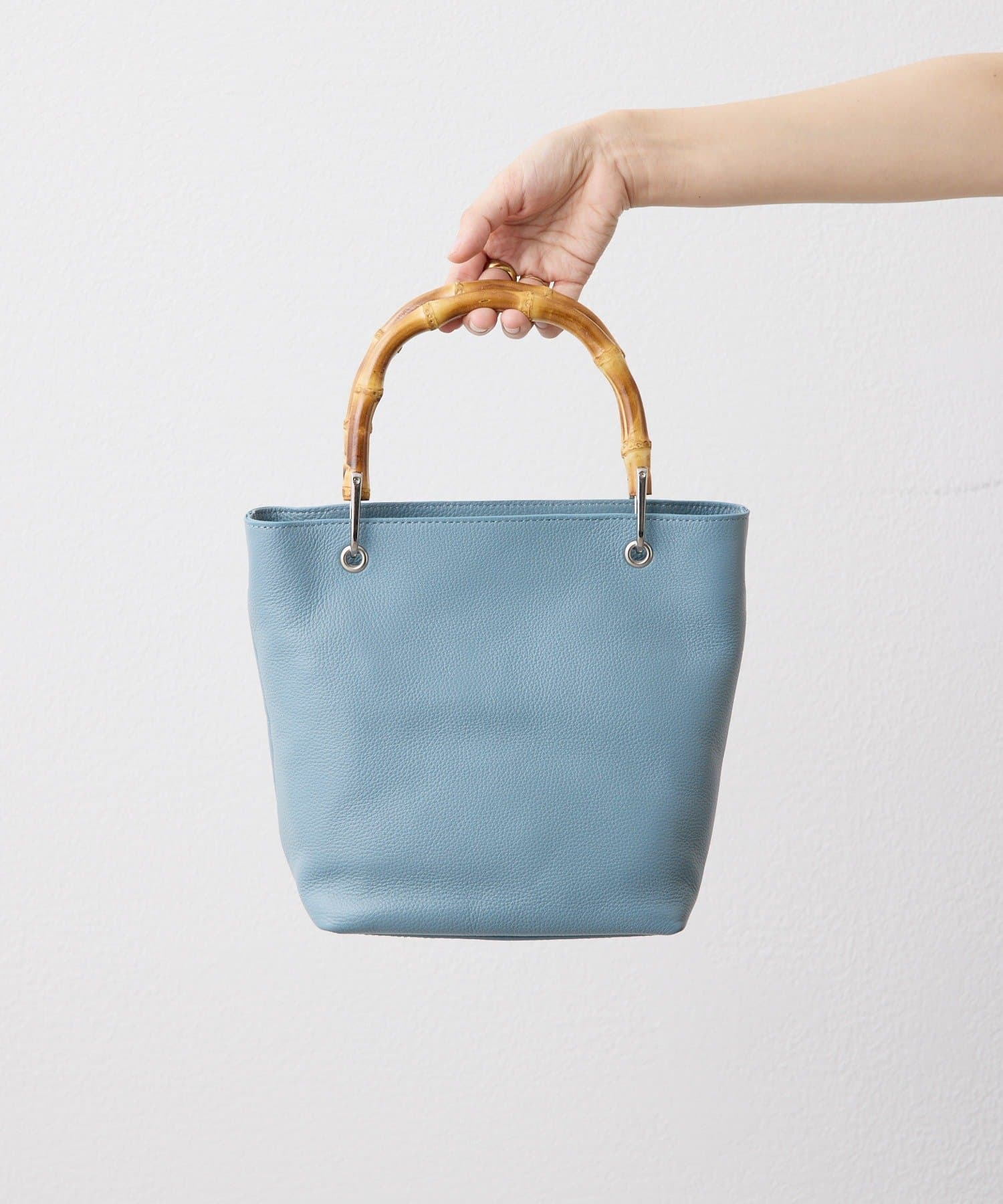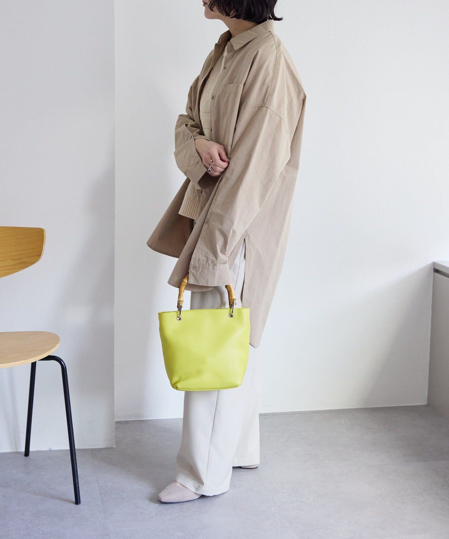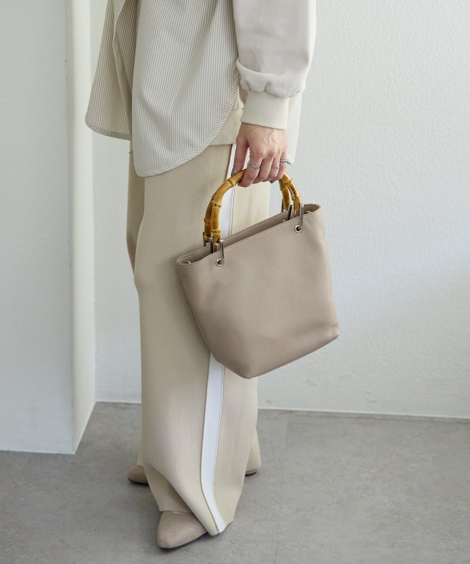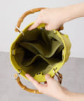 シンプルなトート型だからこそ、素材の良さとバンブーハンドルが映え