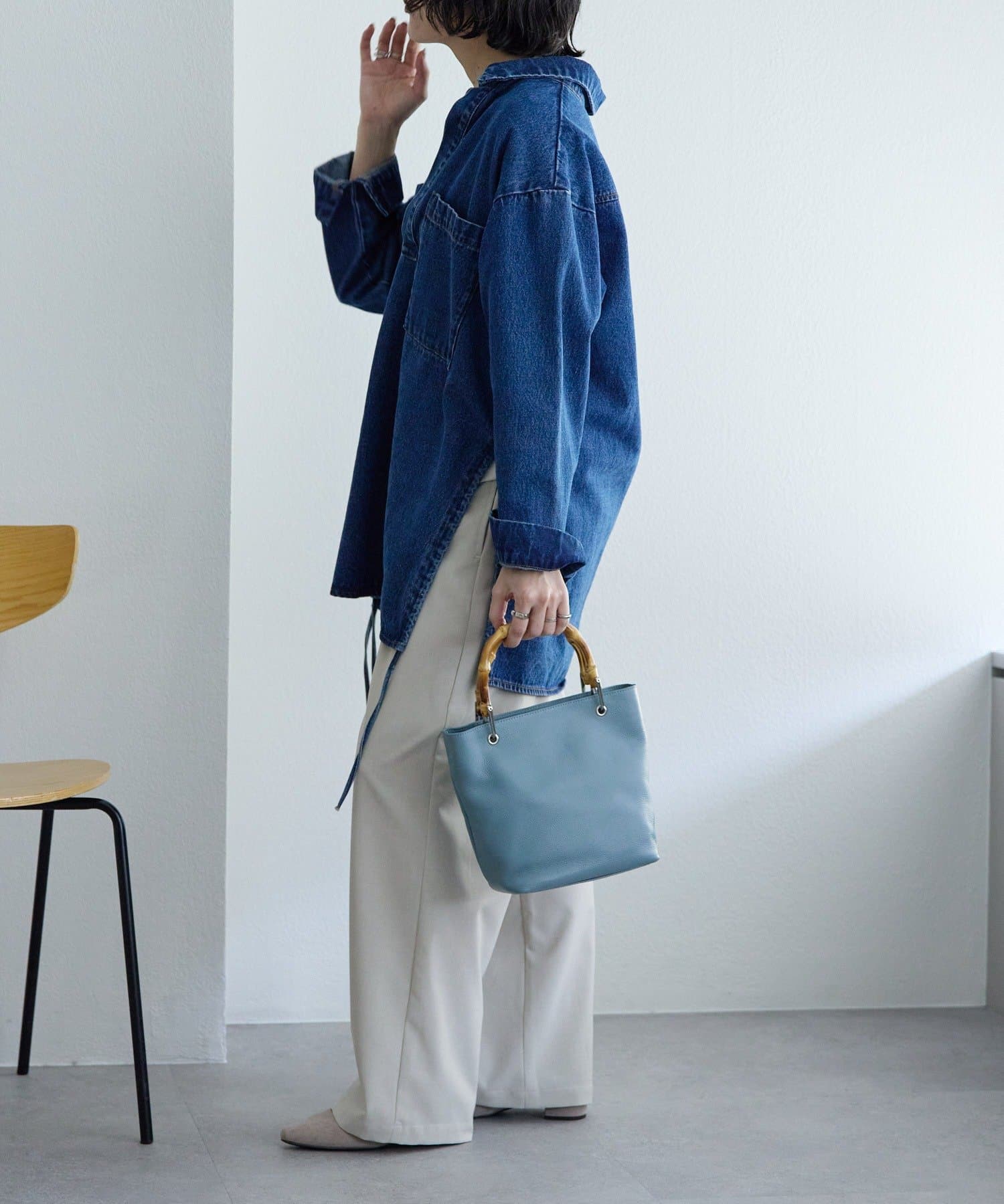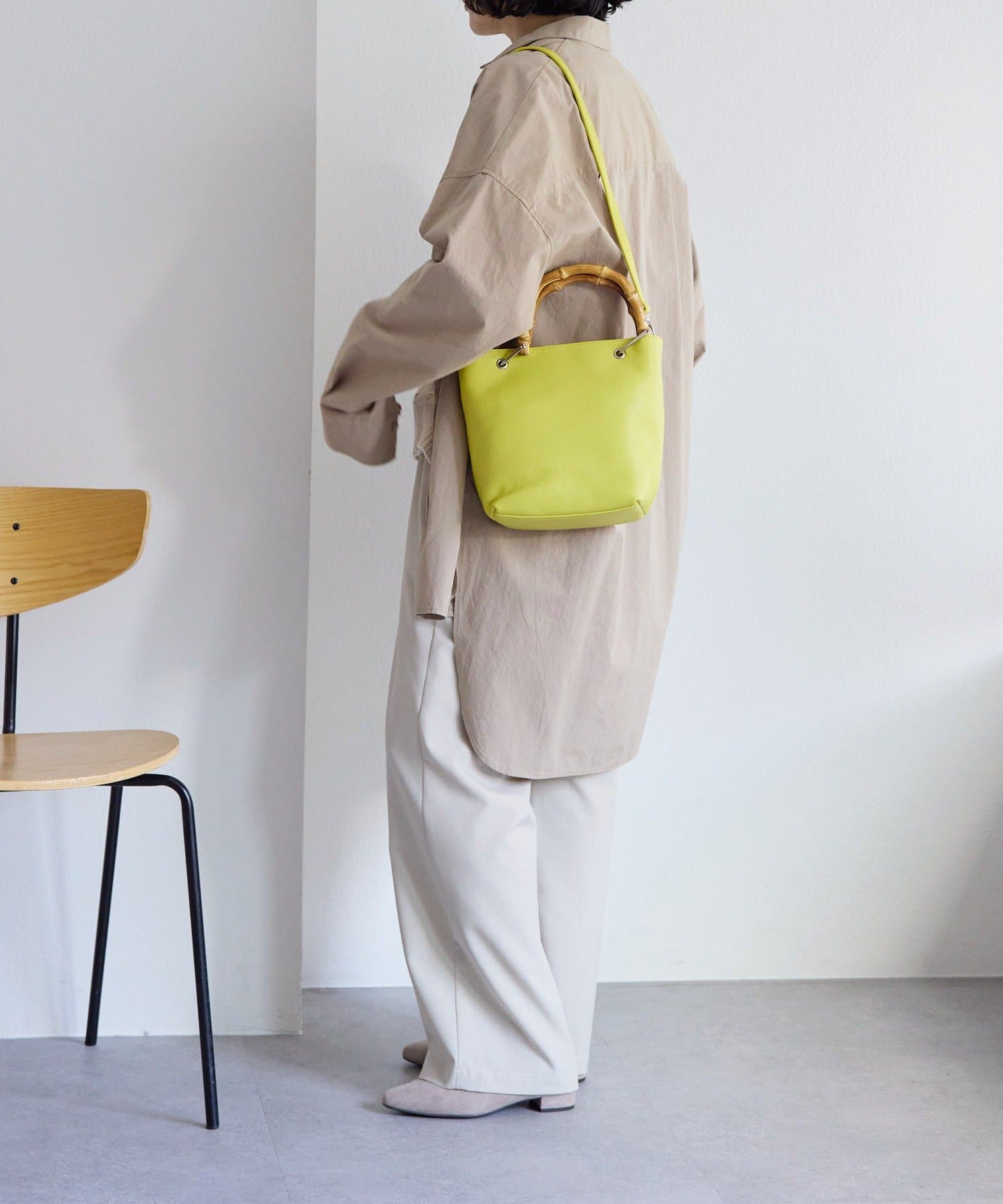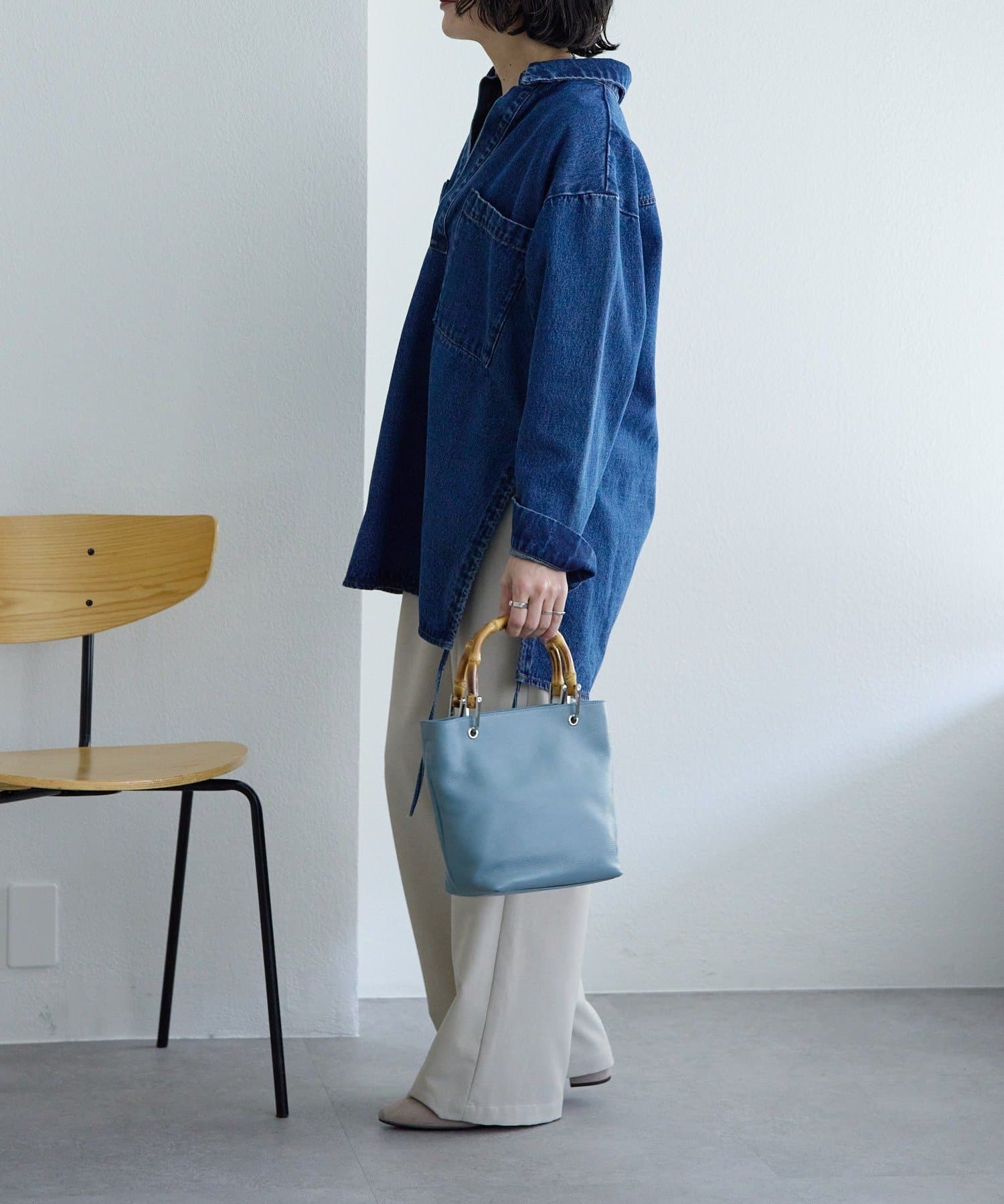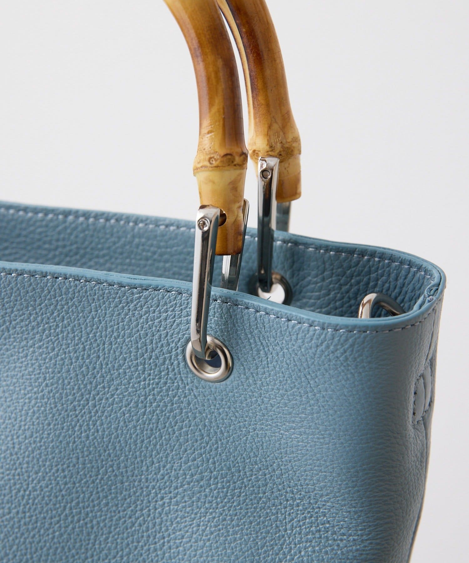 シンプルなトート型だからこそ、素材の良さとバンブーハンドルが映え