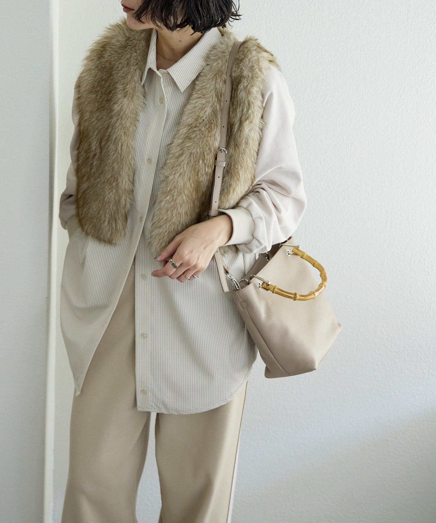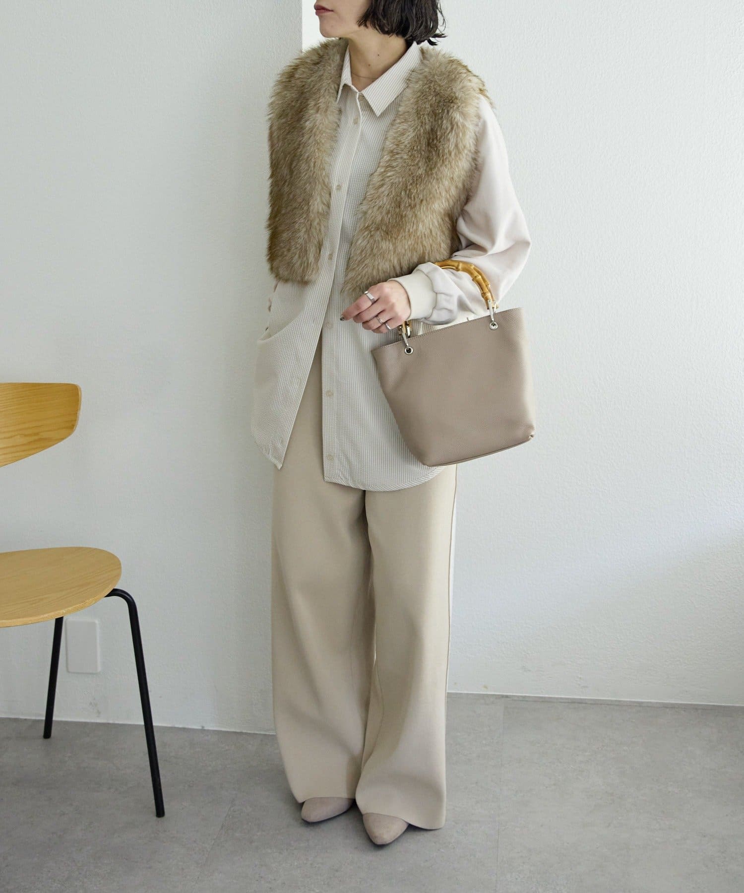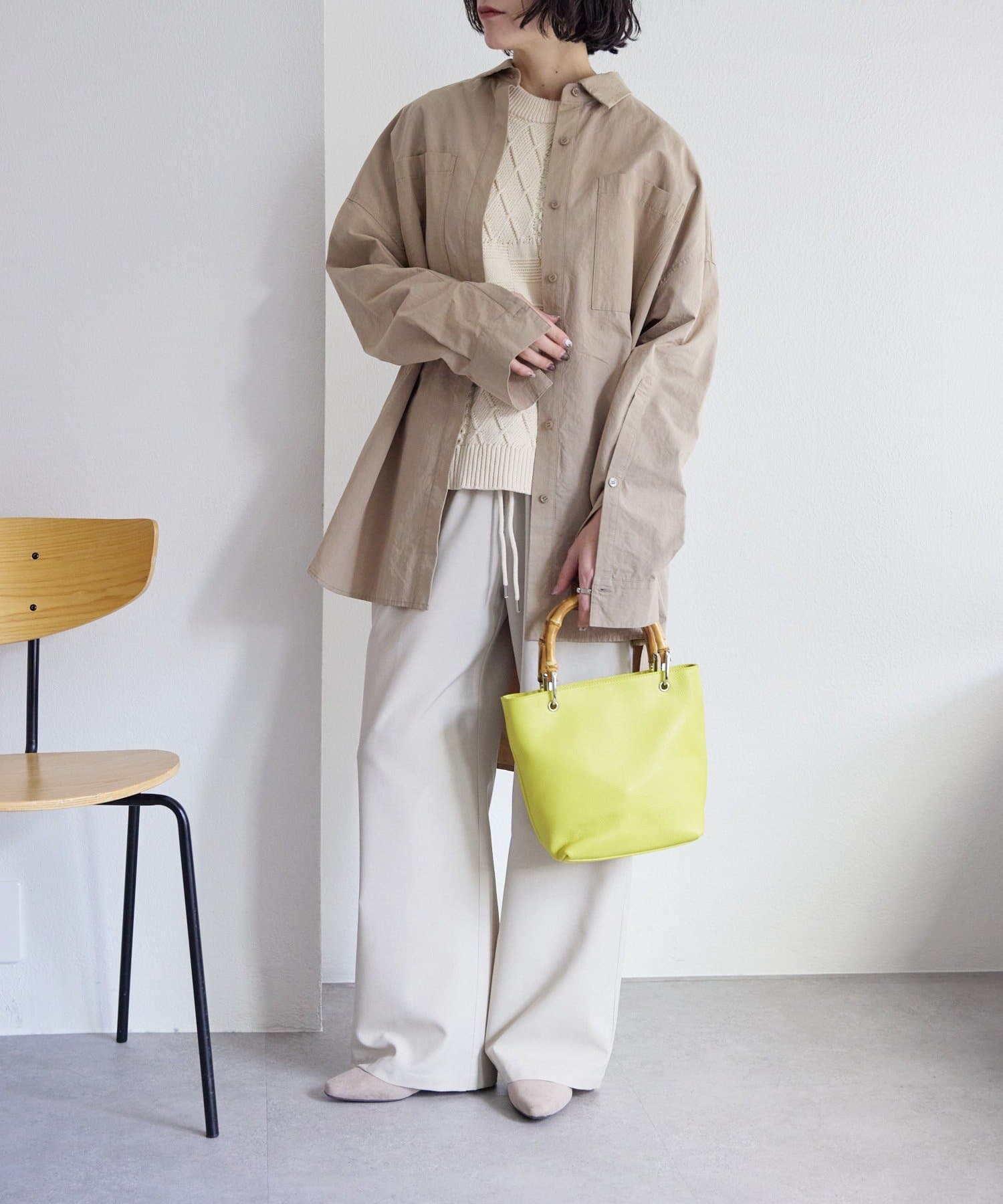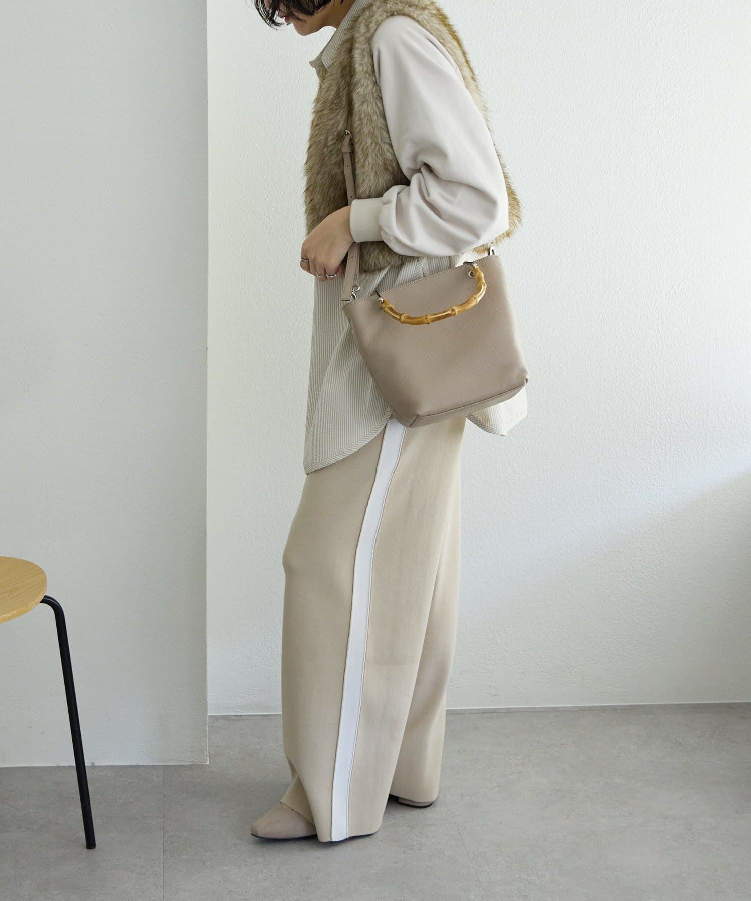 シンプルなトート型だからこそ、素材の良さとバンブーハンドルが映え
