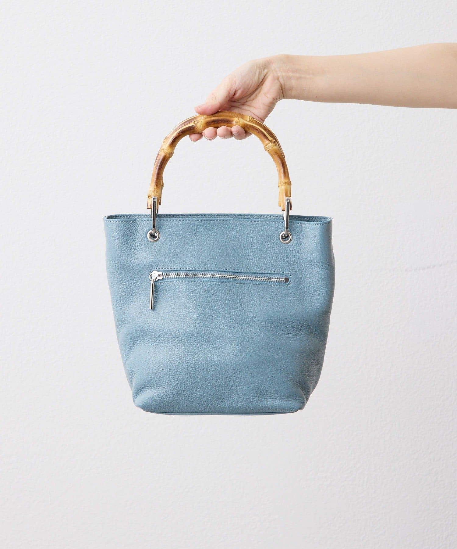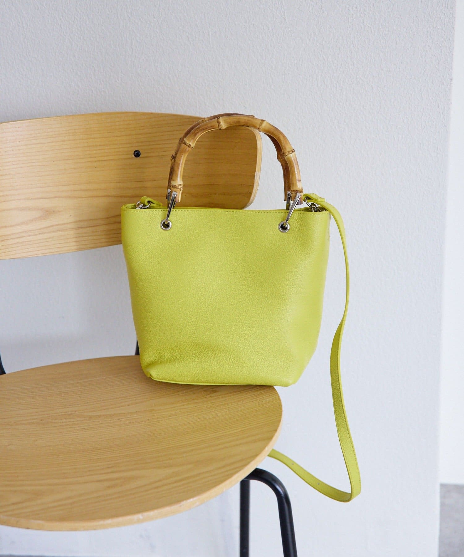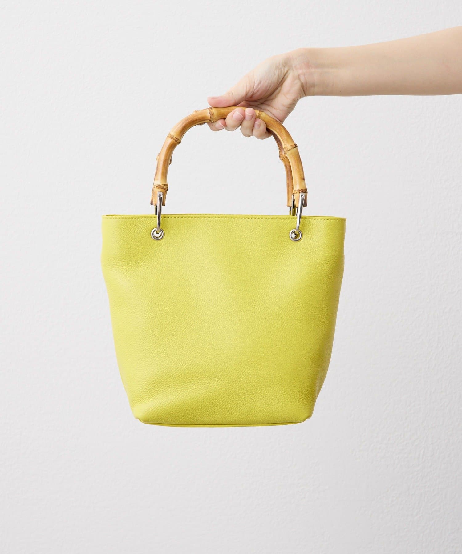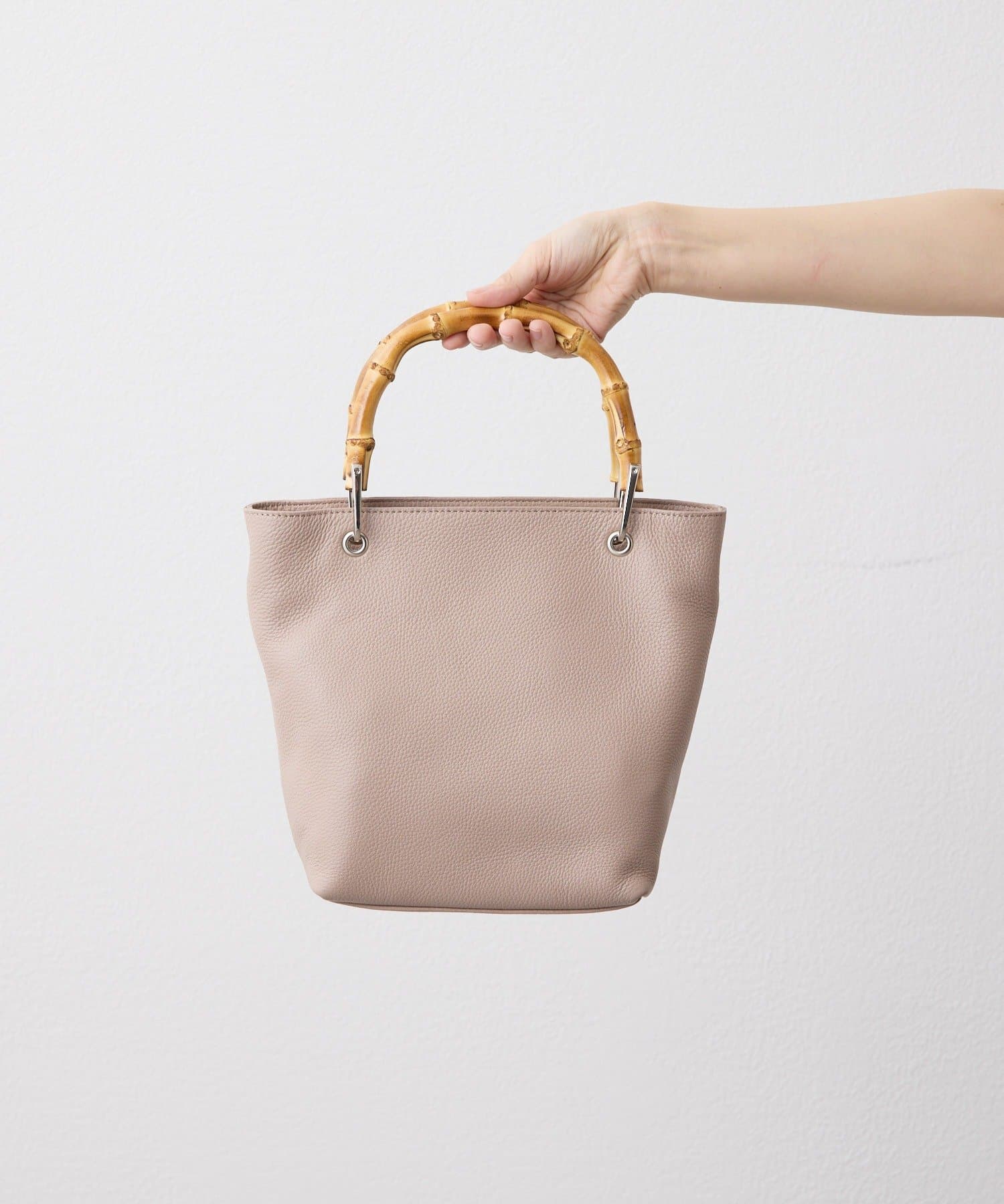 バンブーハンドルが印象的な大人の上質レザーバッグ。