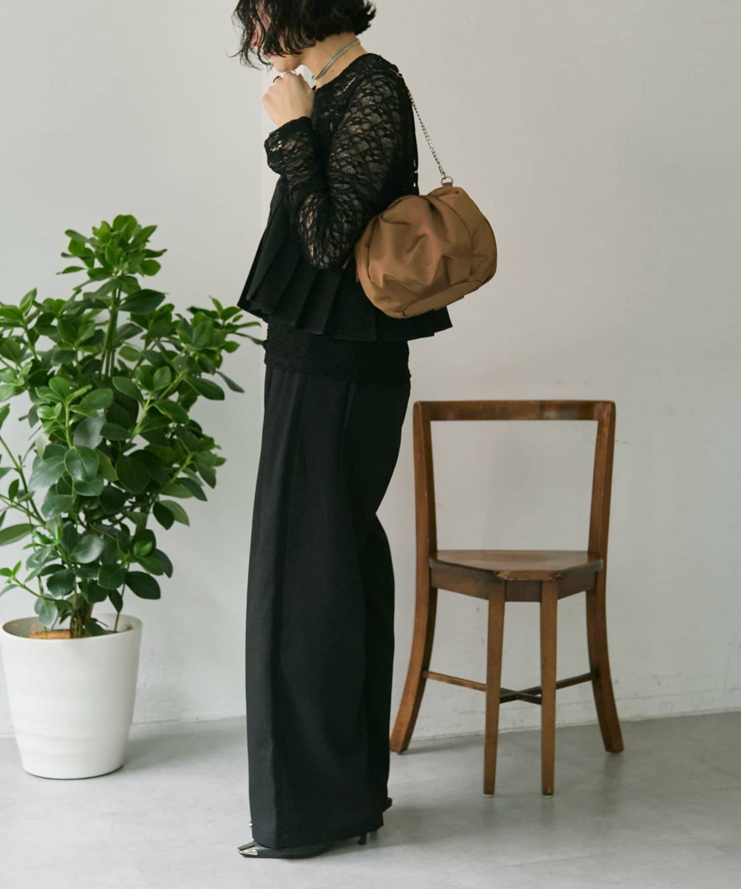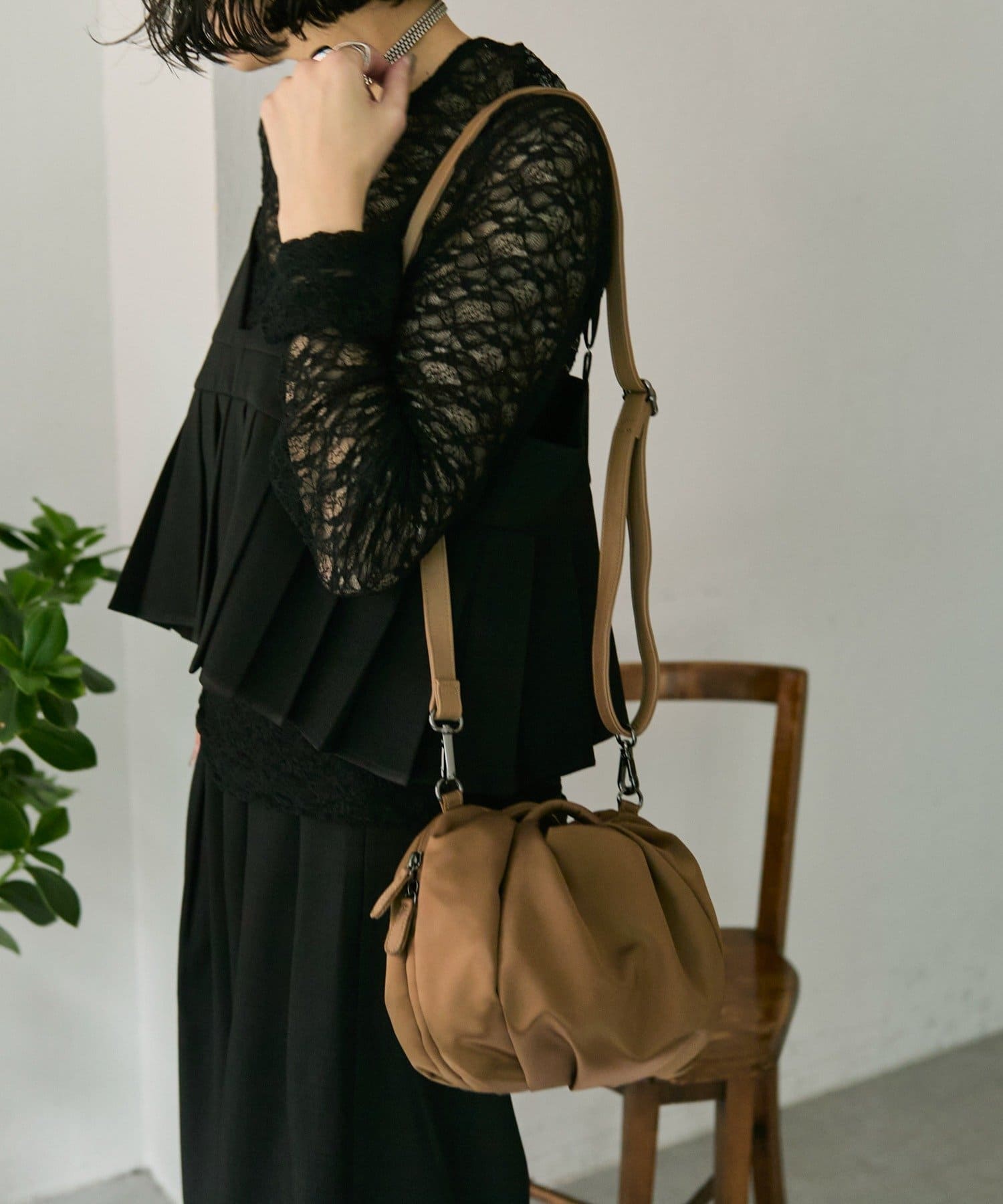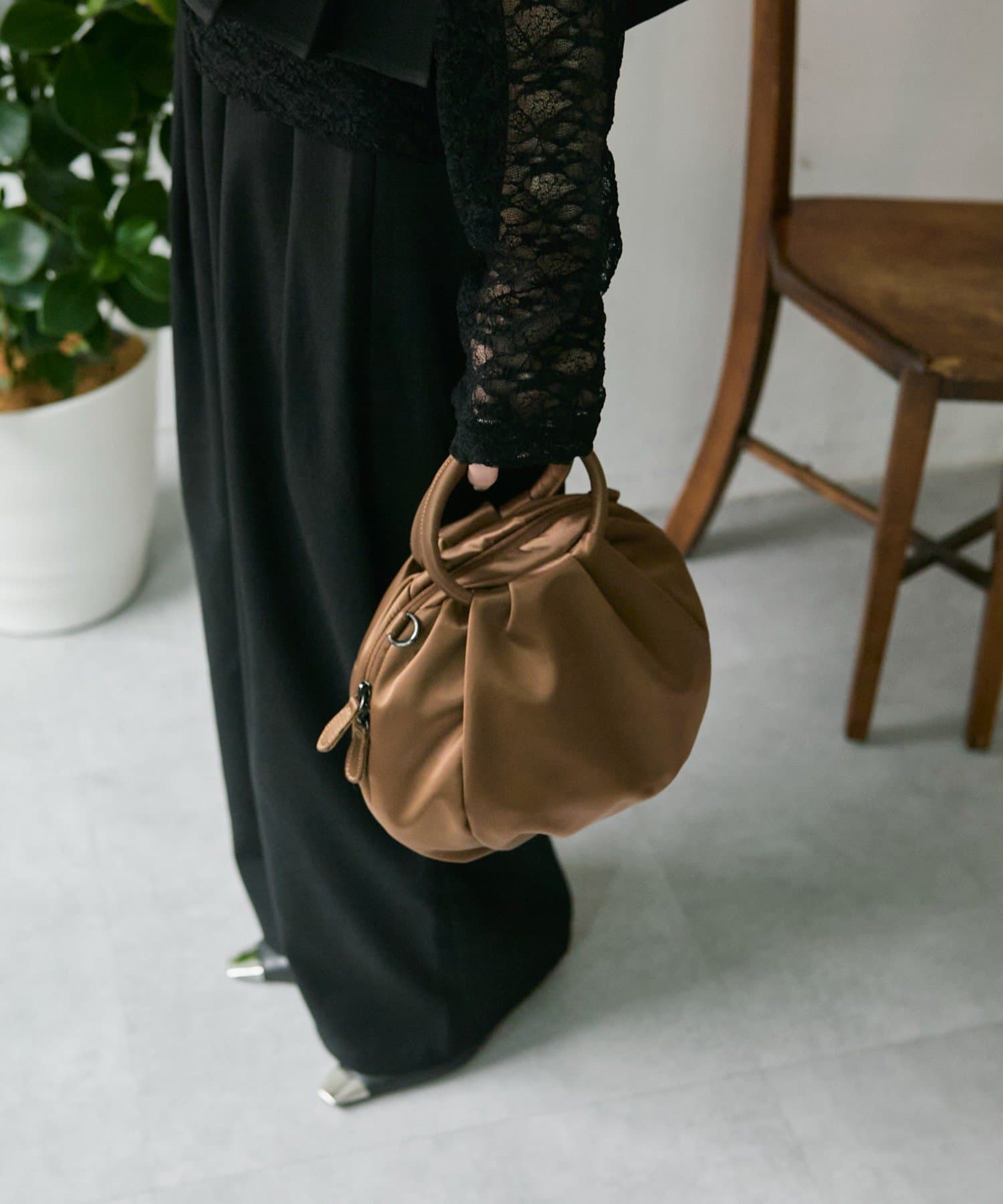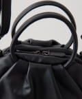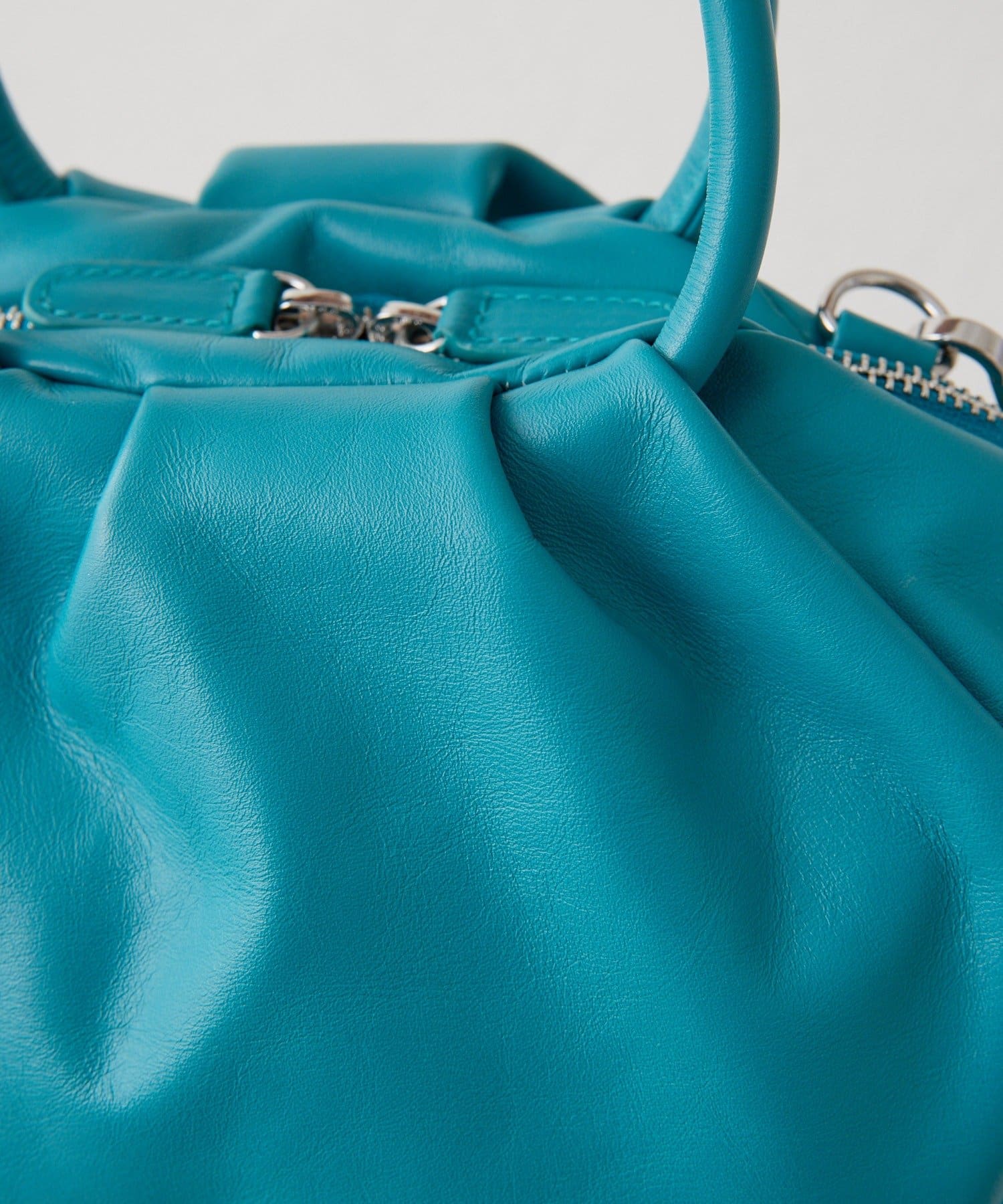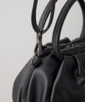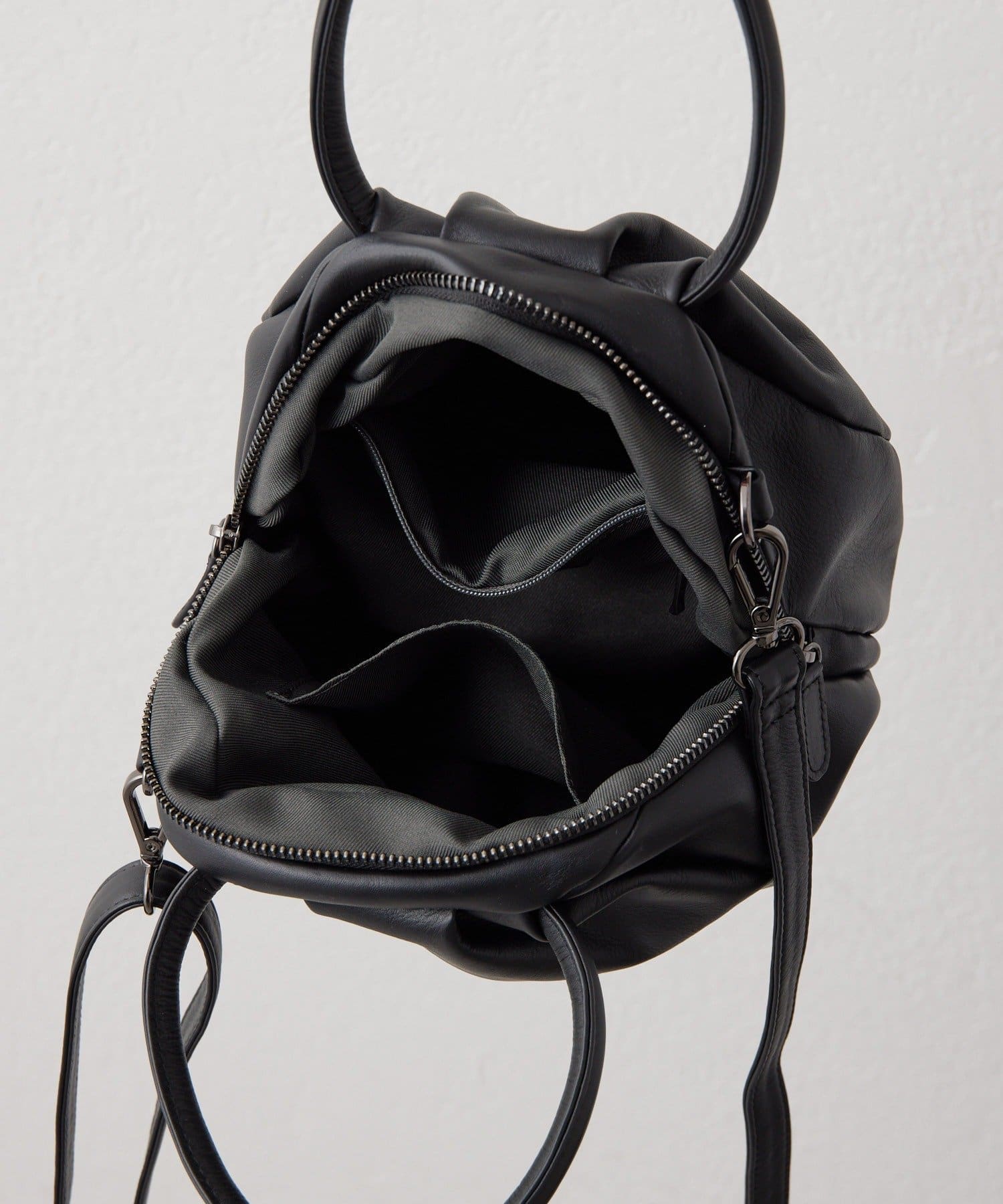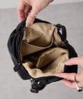 表面にはタックを入れ、あえて外ポケットを無くしたことで