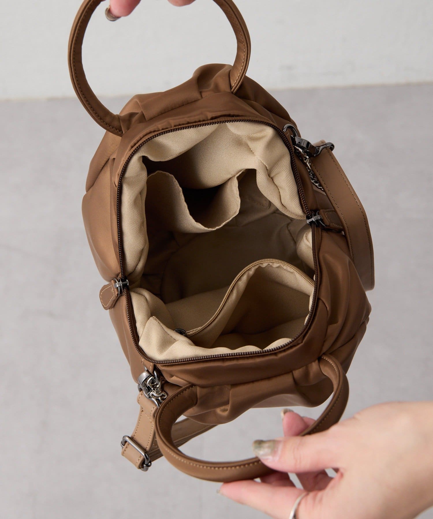 ・本体カラーに合わせたファスナーの色で金具が目立ちにくい