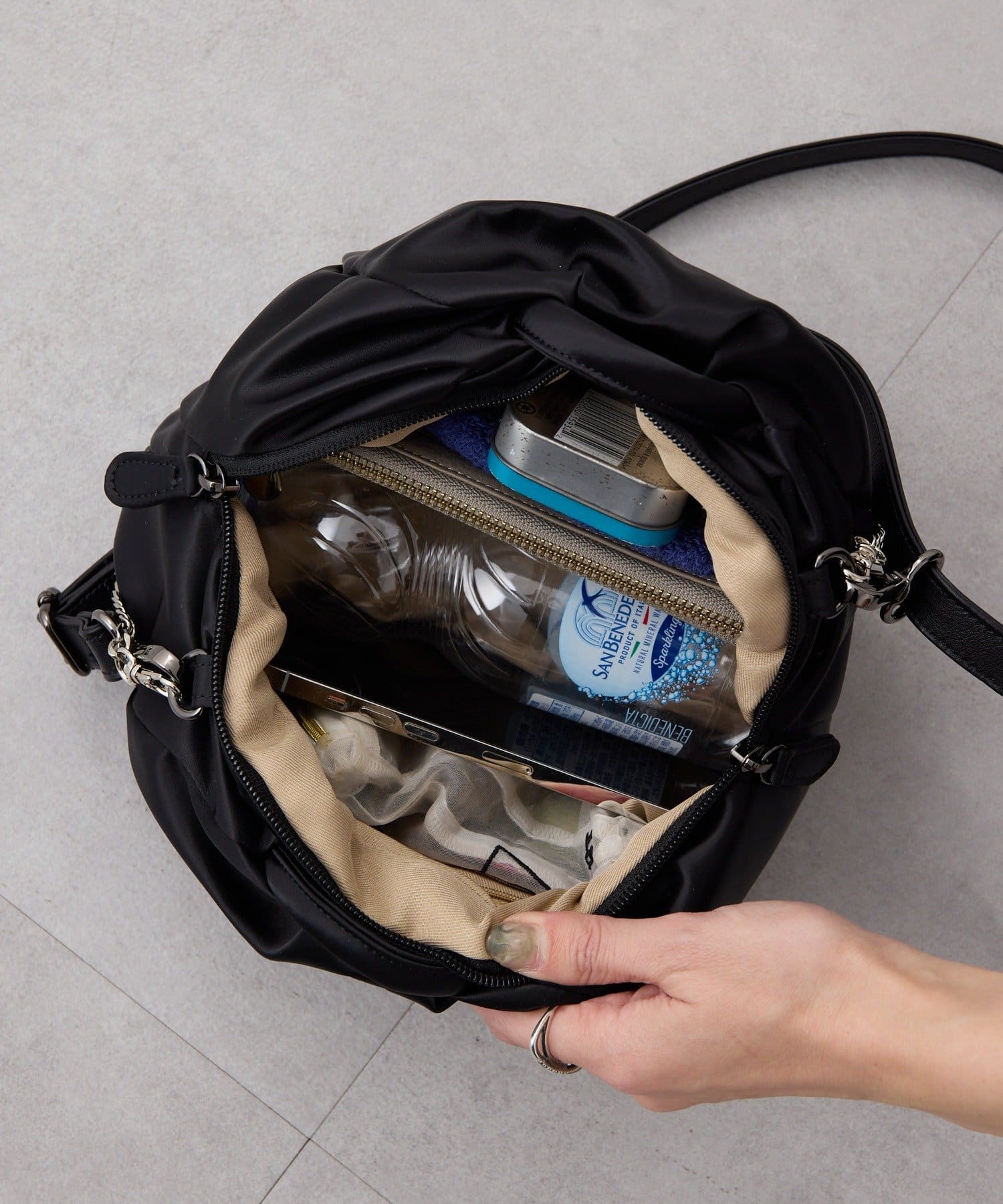 財布やポーチ、500mlのペットボトルまで入る