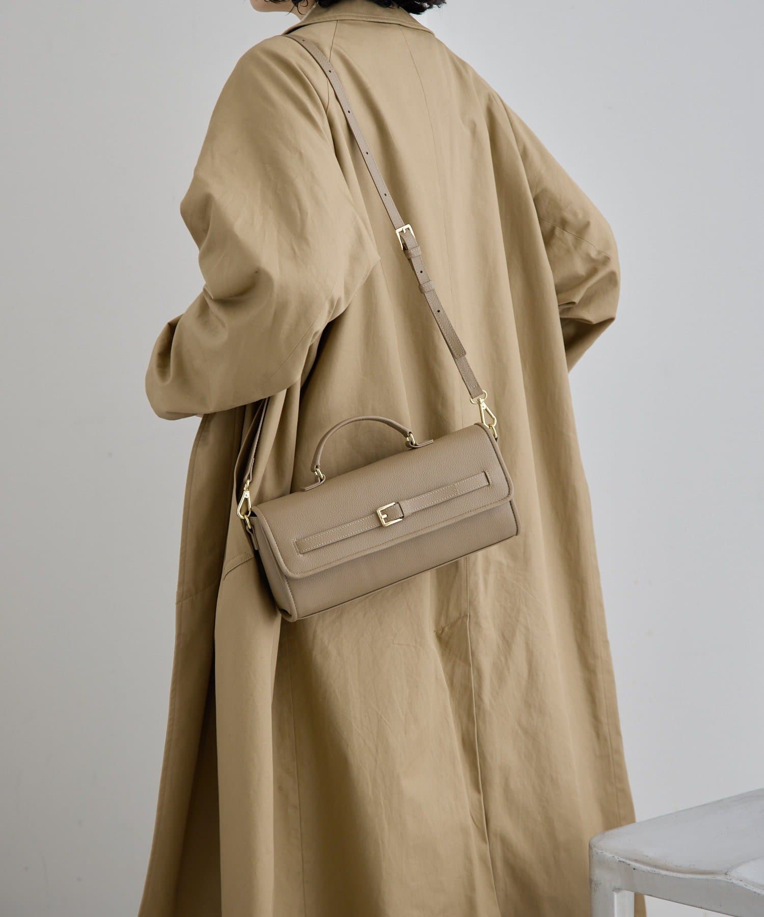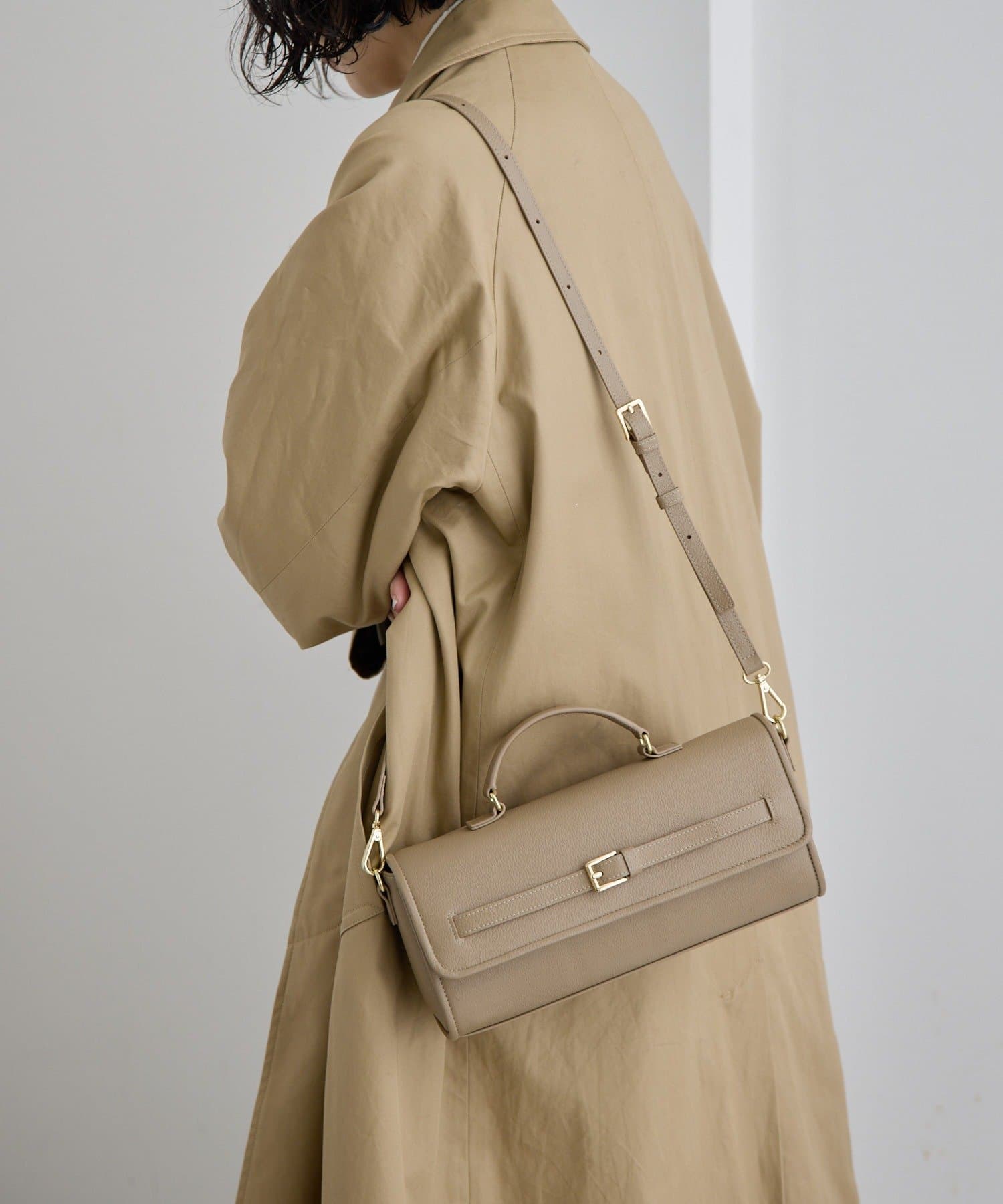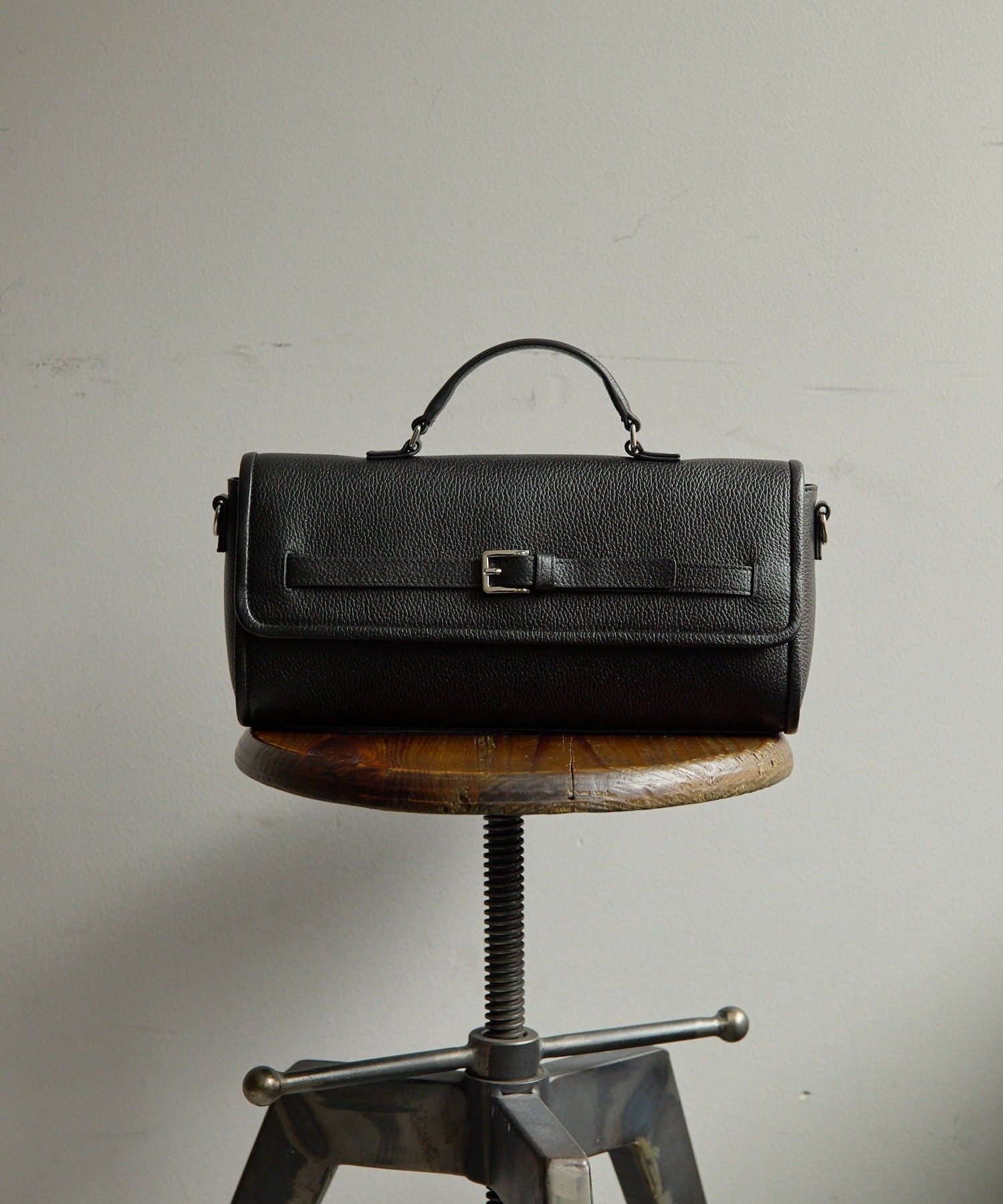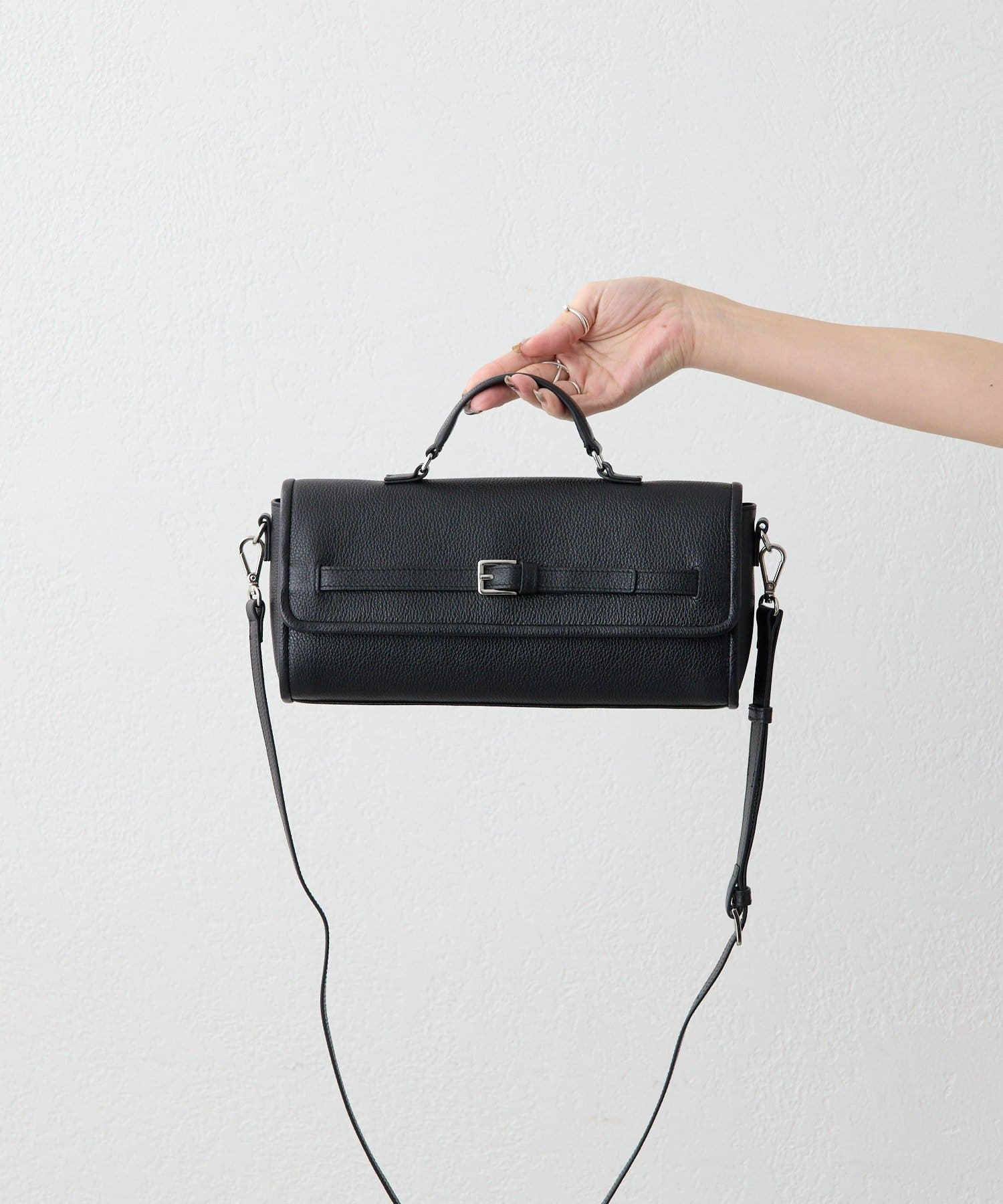 フロントのベルトデザインが品格と遊び心を兼ね備えたレザーバッグ