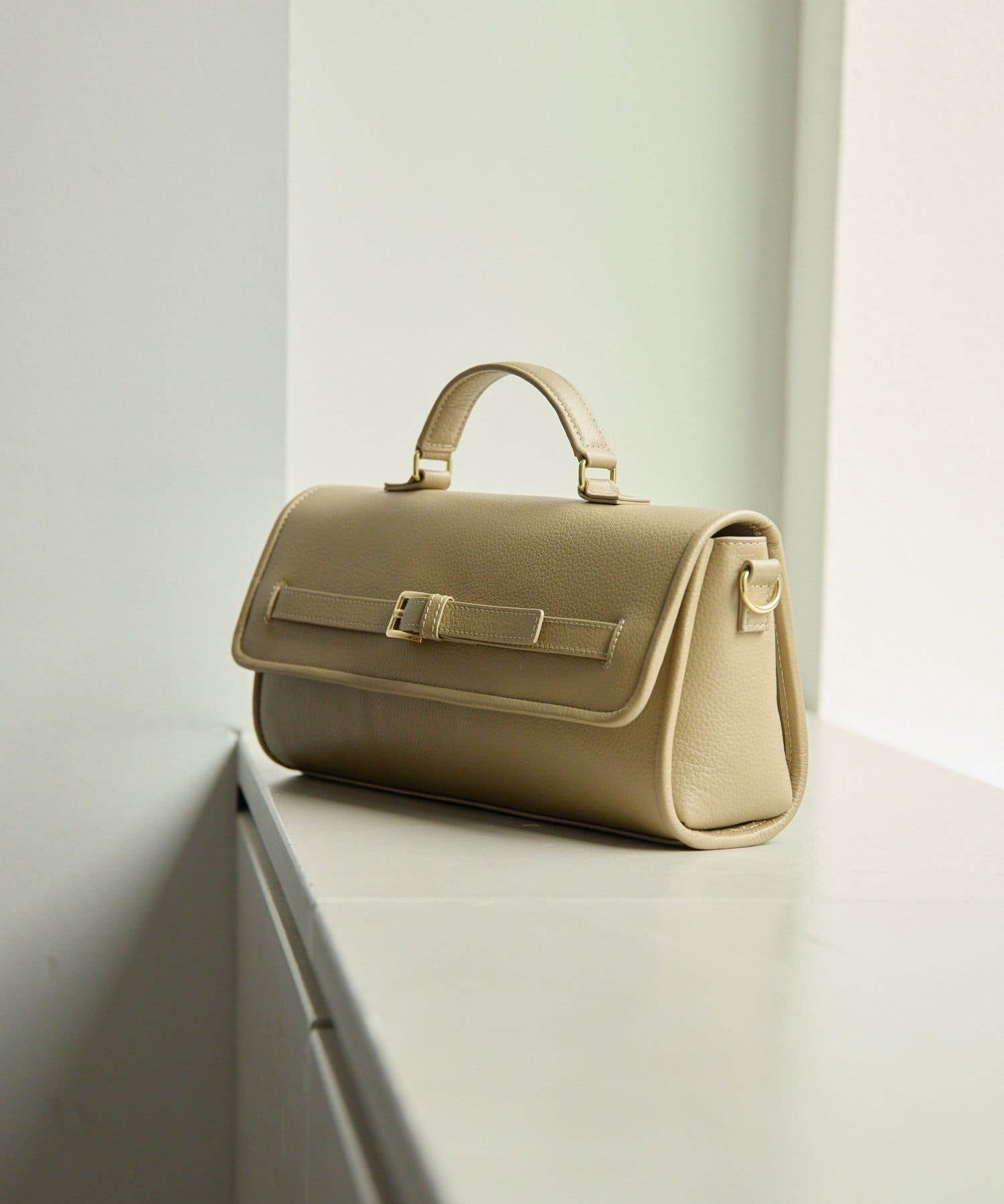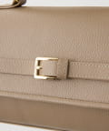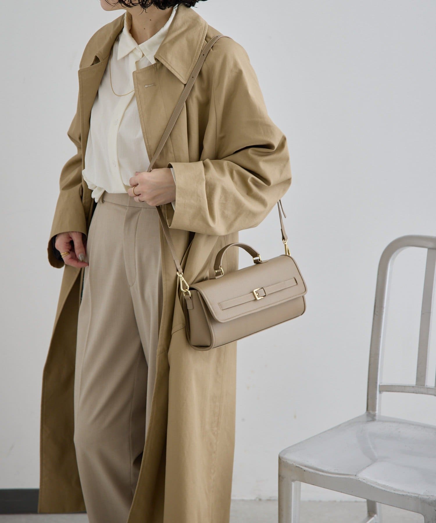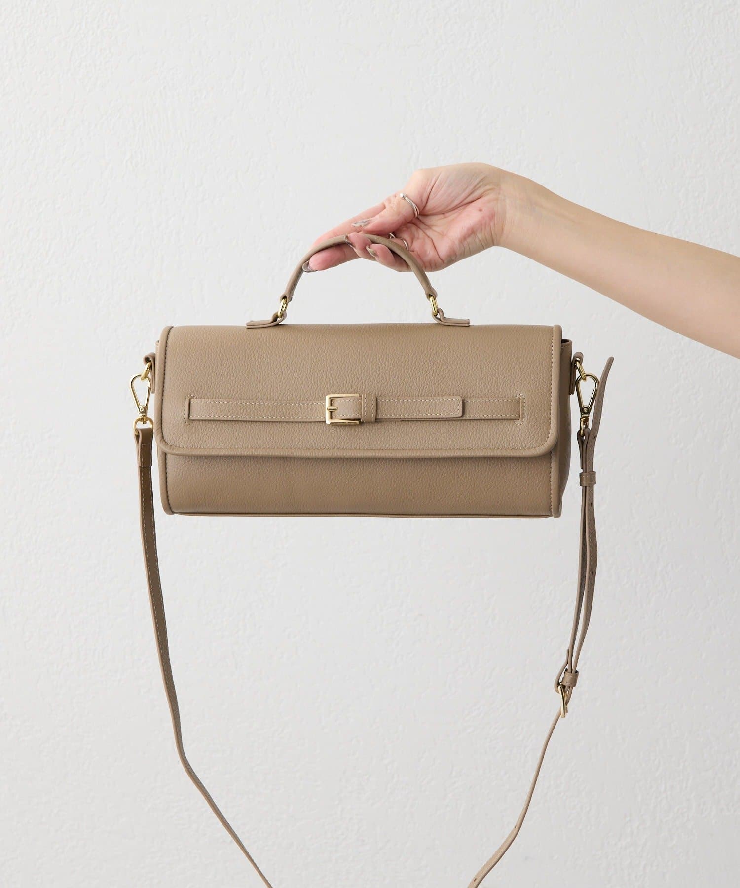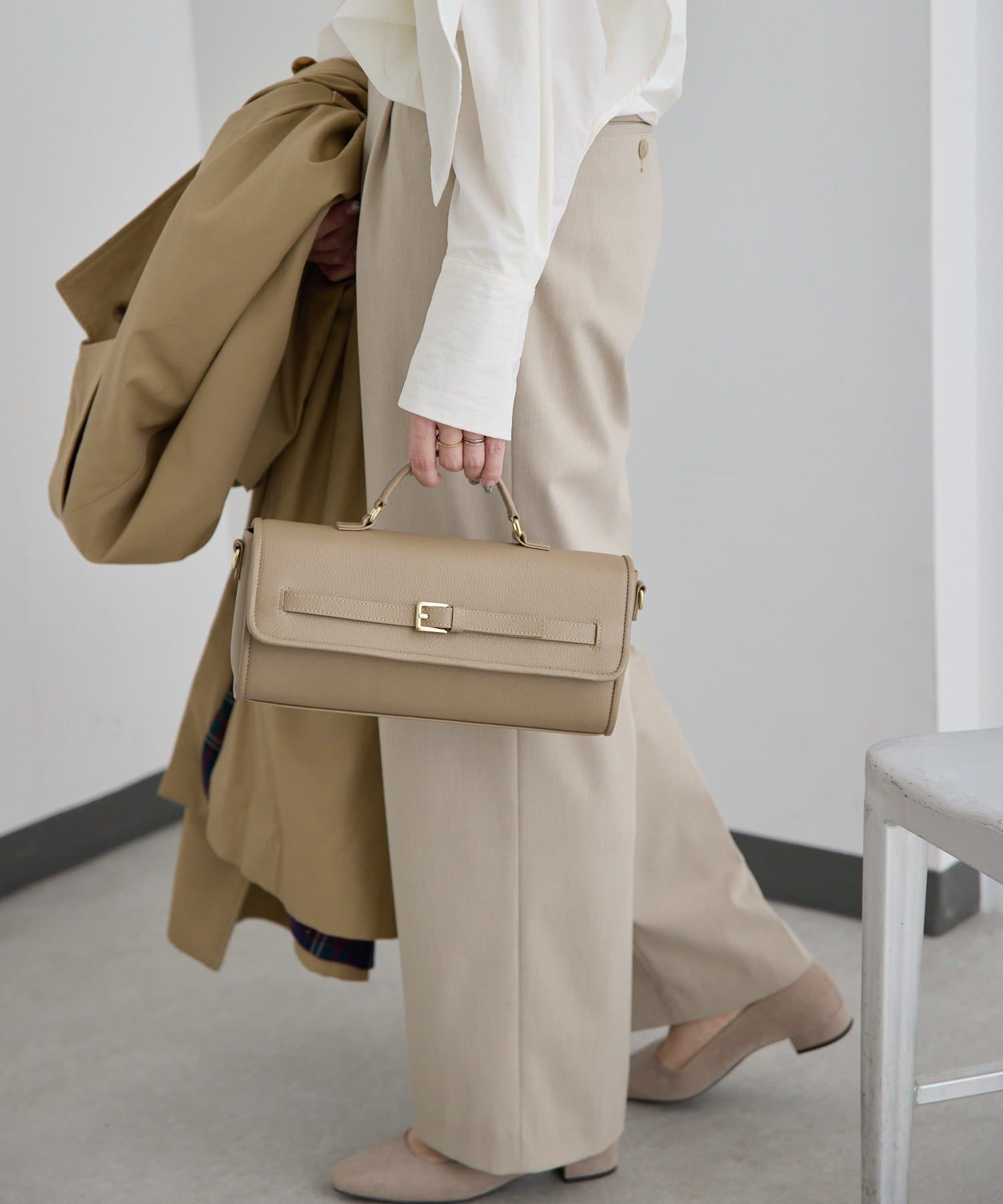 フロントのベルトデザインが品格と遊び心を兼ね備えたレザーバッグ