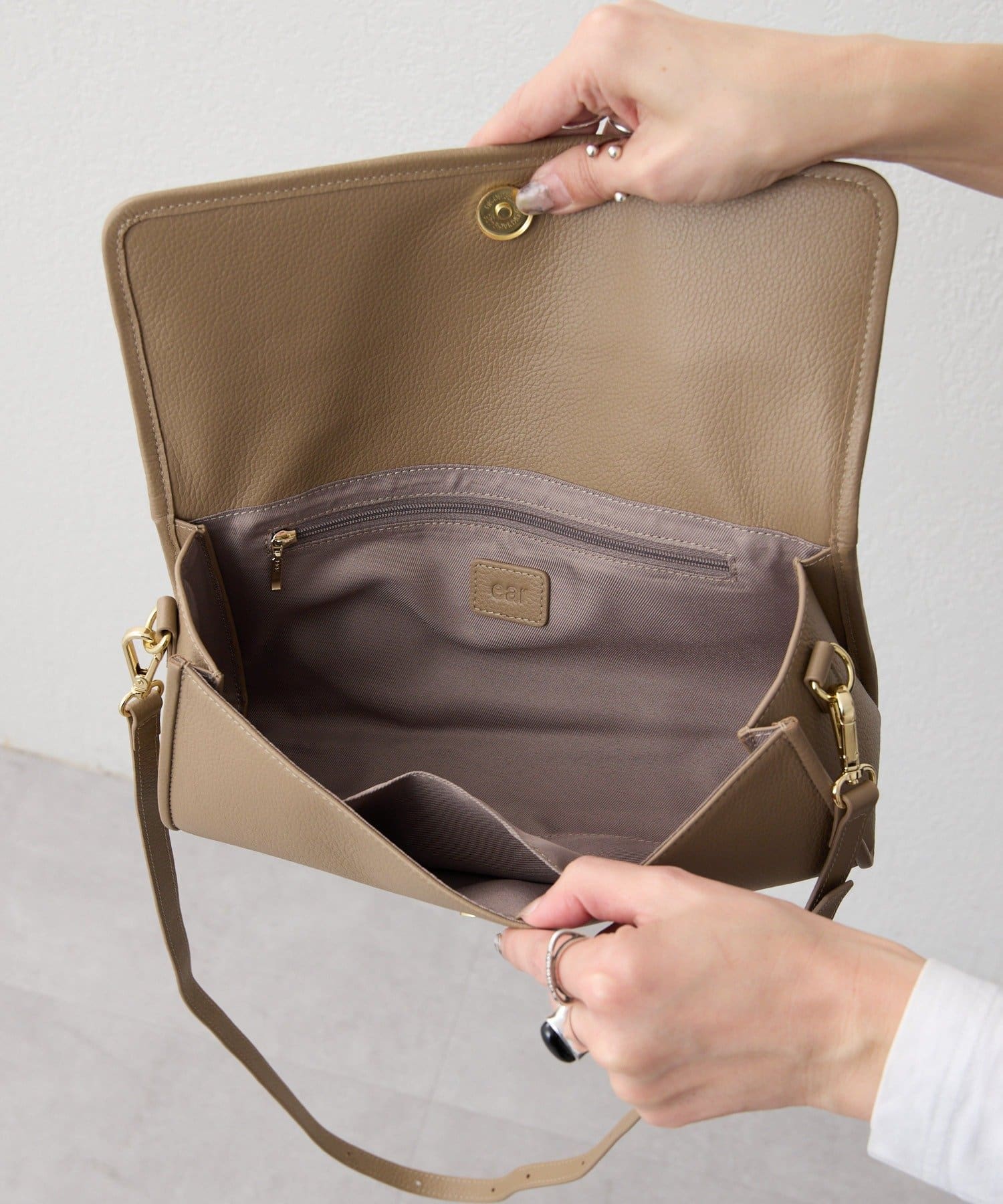 上質な牛革を使用した横長フォルムが特徴の2wayバッグ。