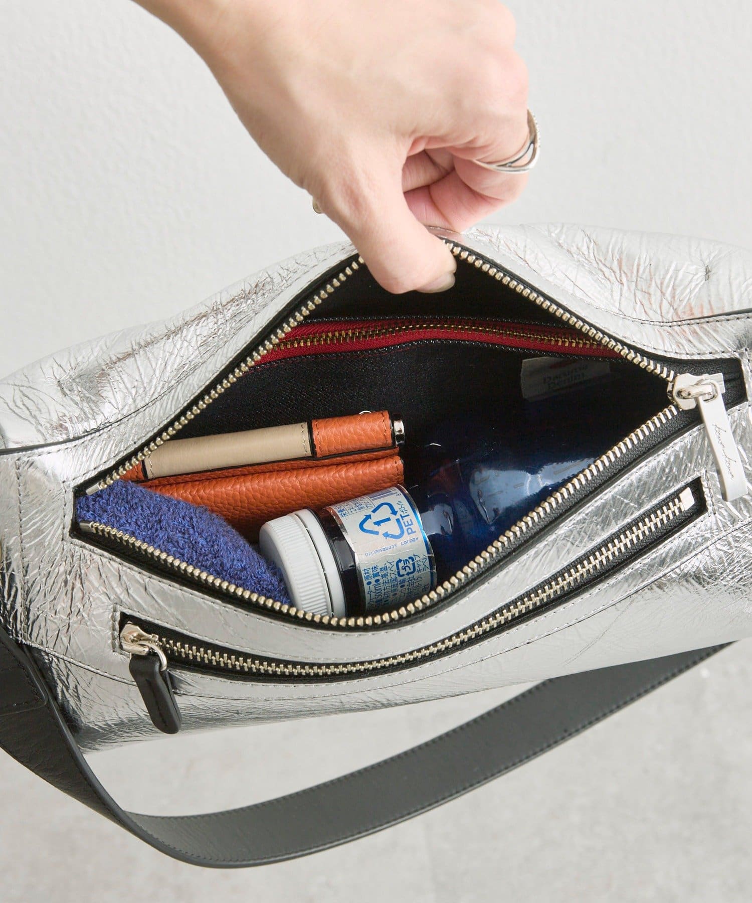 本体に使用しているメタリックレザーは、革メーカーも太鼓判を押すハイクオリティ素材。