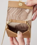 フラップを開けるとリーフ柄のプリント生地が顔を出し