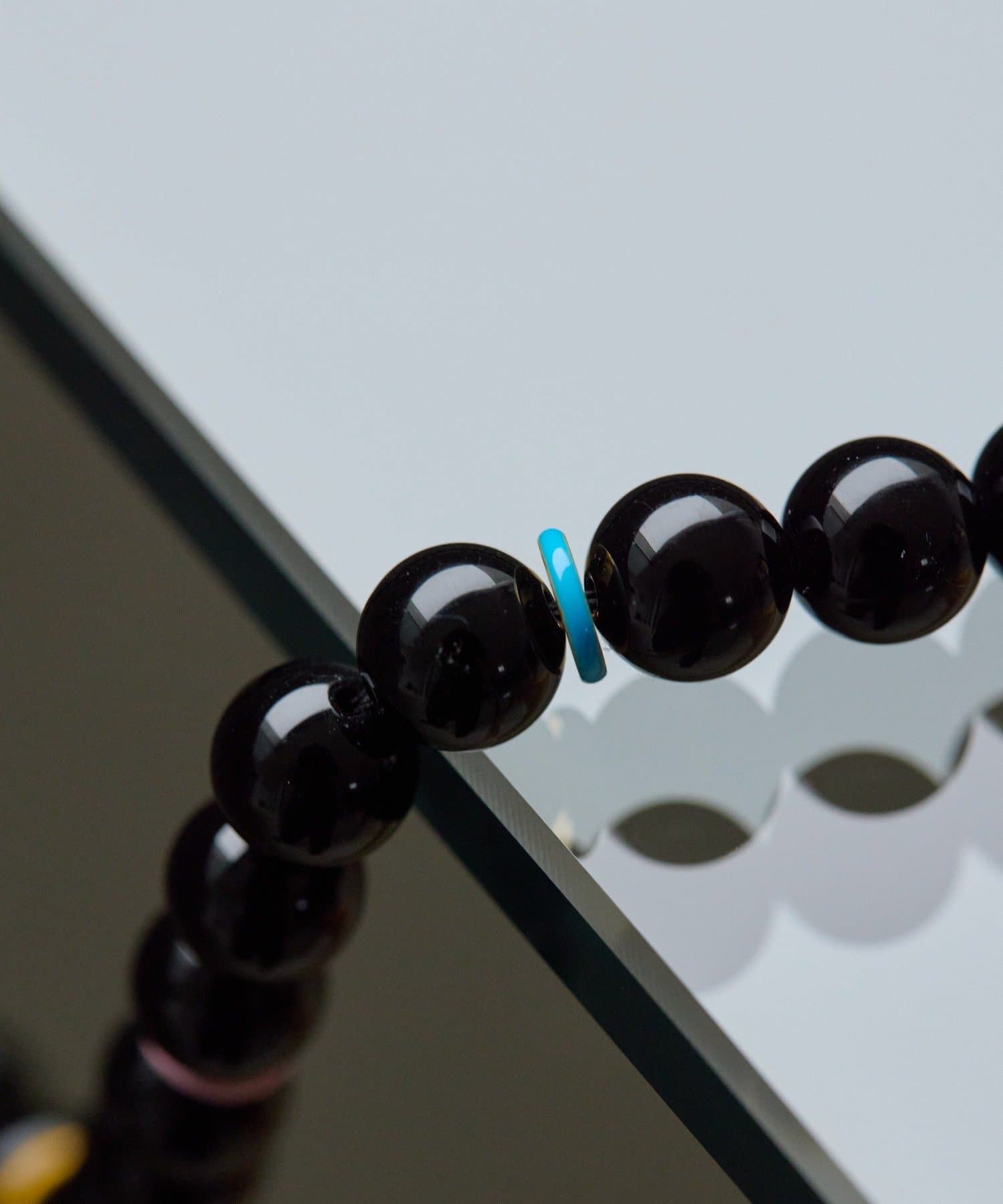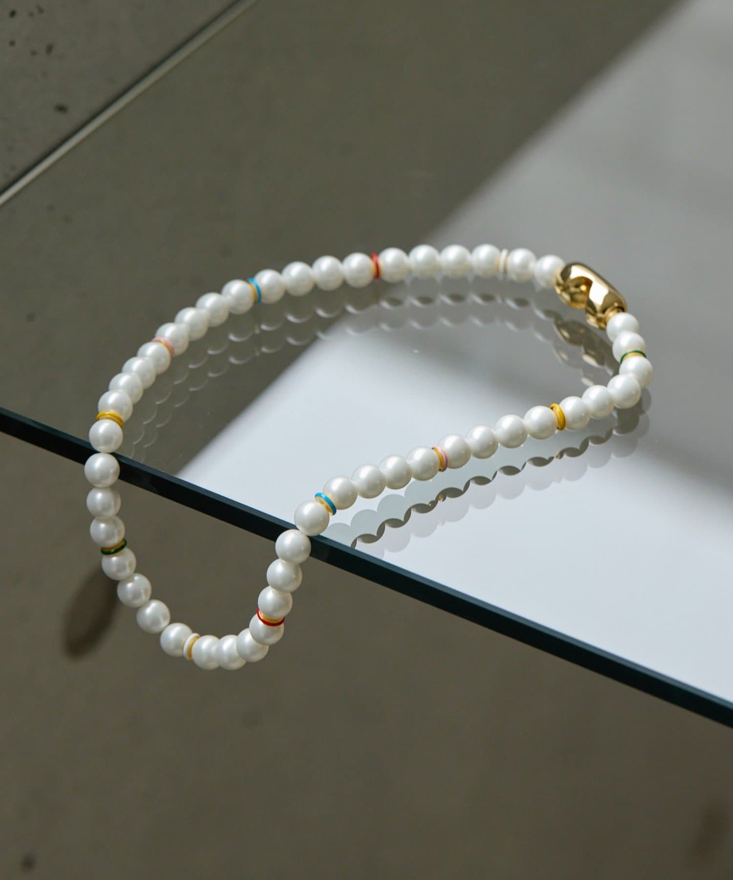 ・シンプルなラウンドパールの間に入った、カラフルなスライスパーツがポイント
