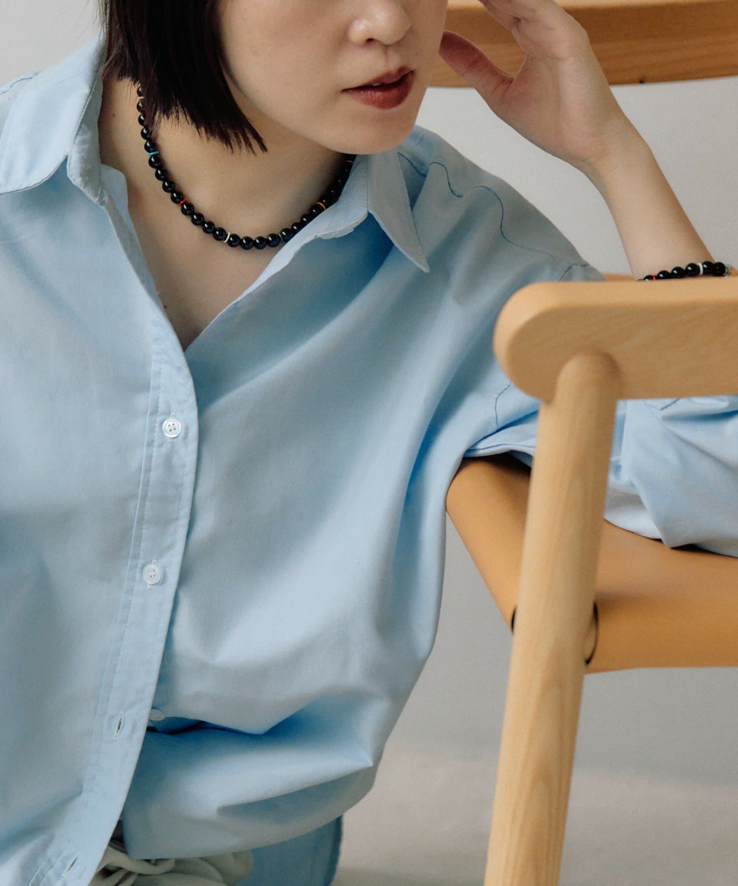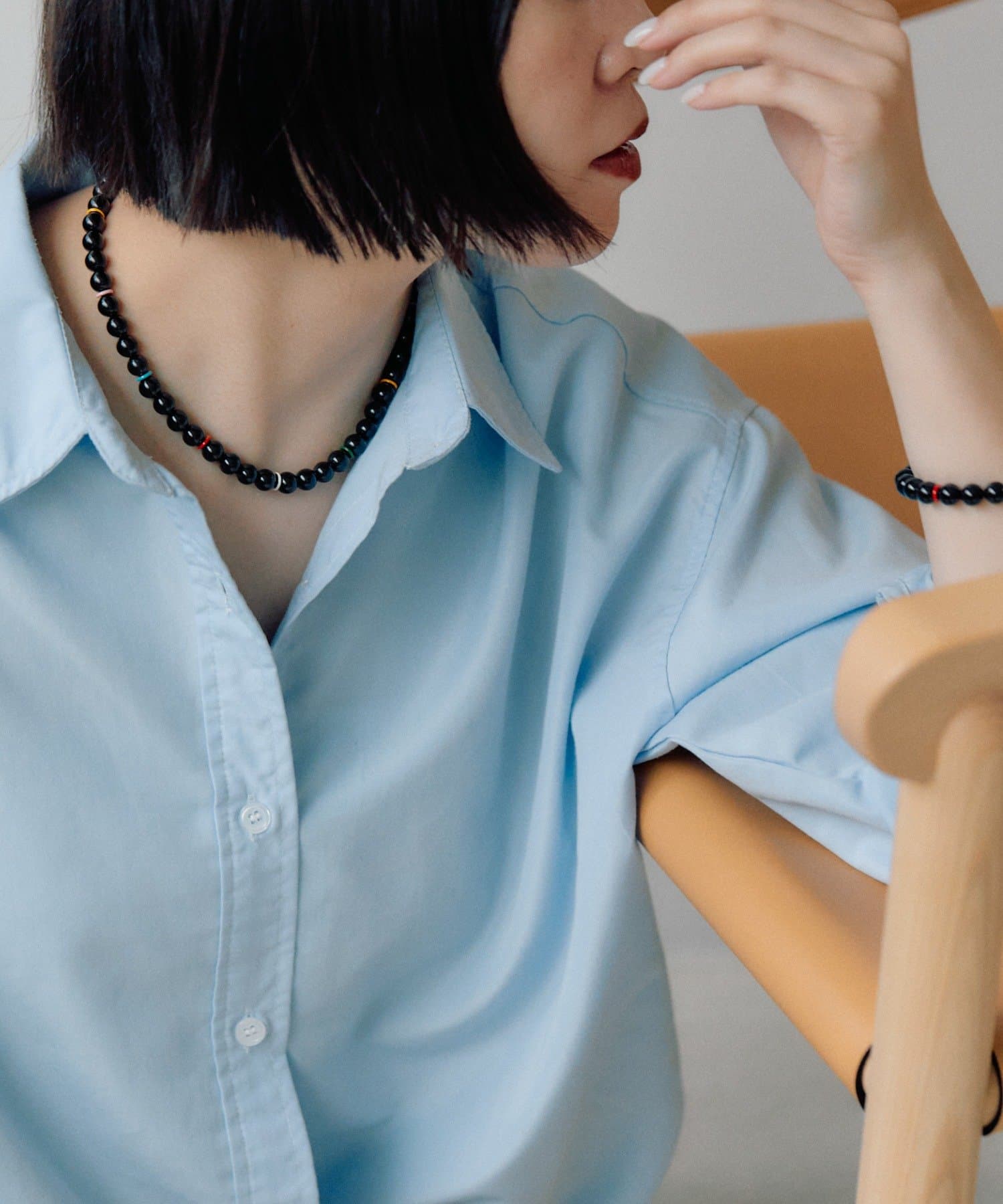 パールネックレスに、カラフルなスライスパーツを散りばめ、大人可愛いアクセントをプラスしました。