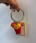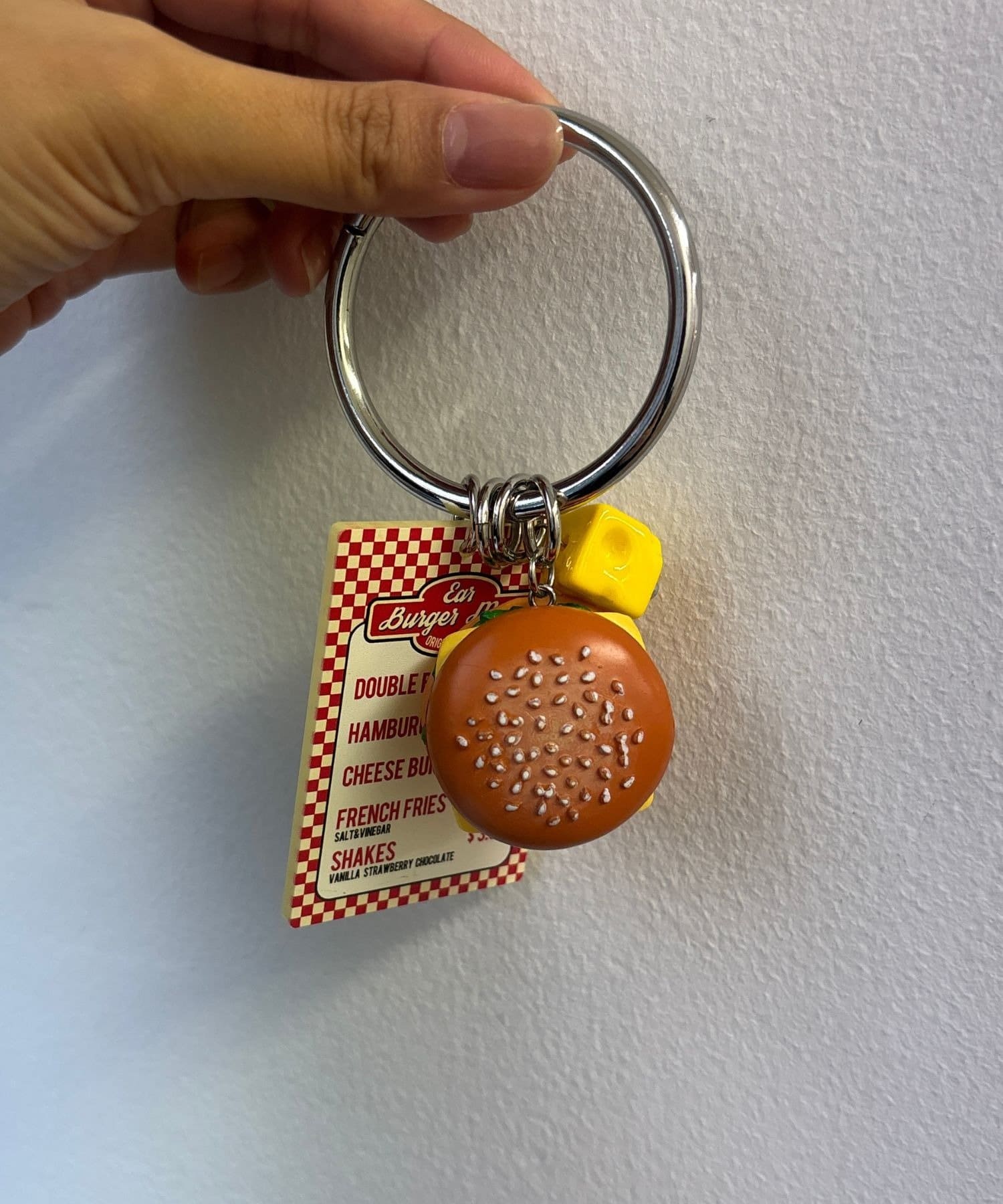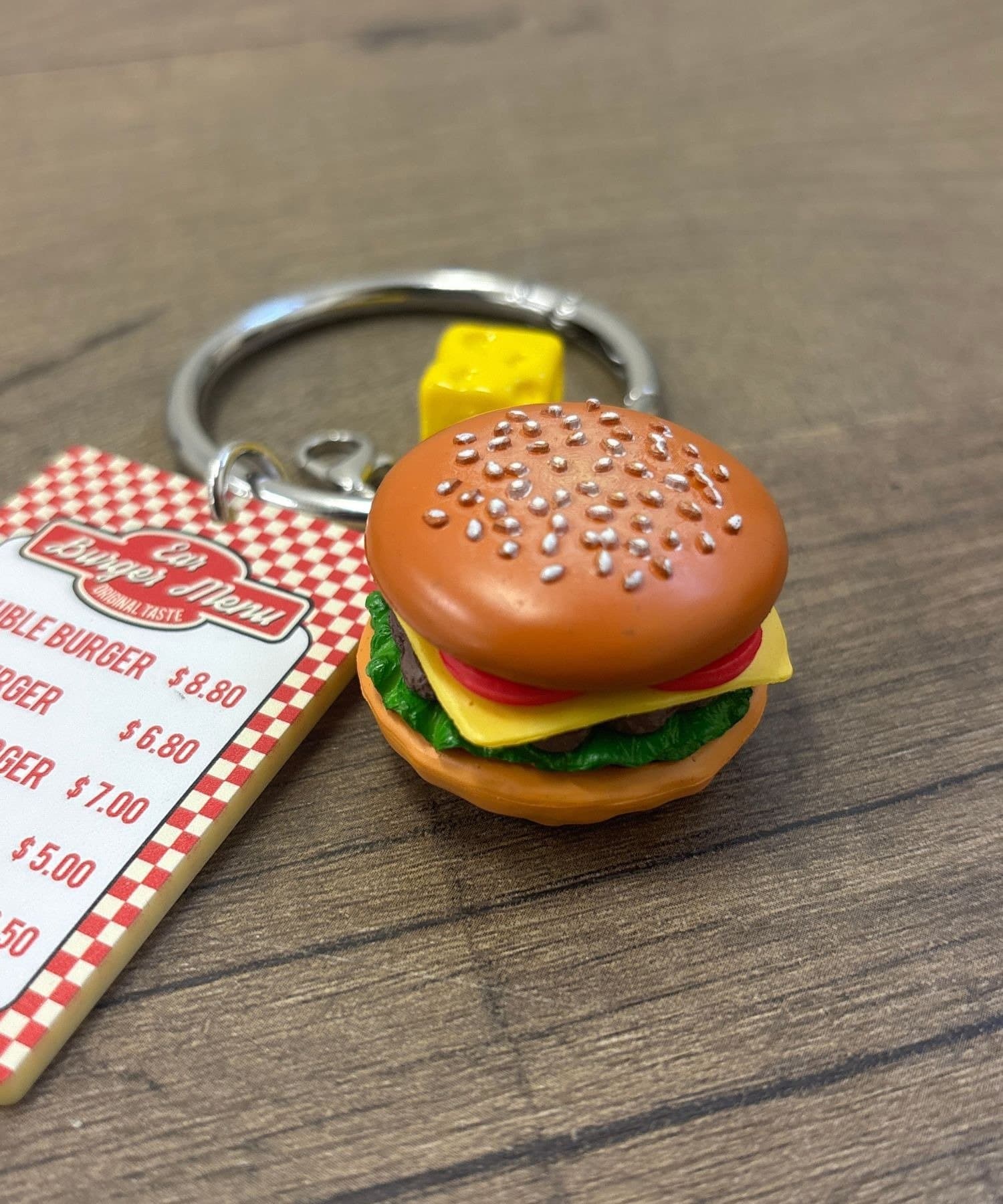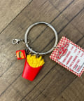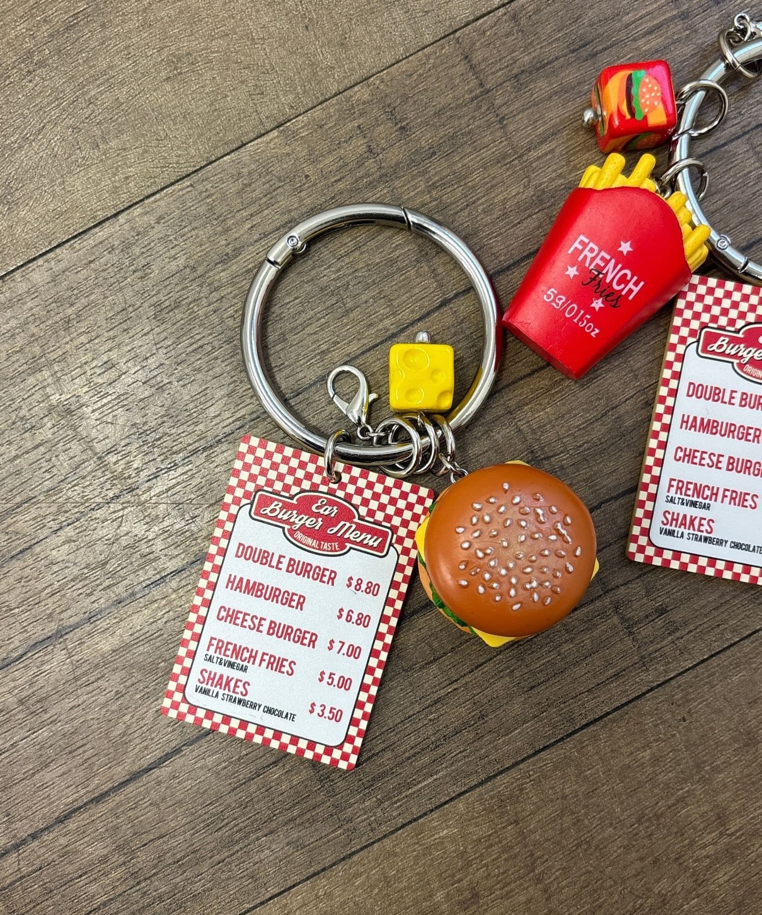 リアルなミニチュアバーガーやポテト、ダイス型パーツが、いつものバッグや小物にユニークなアクセントをプラスします。