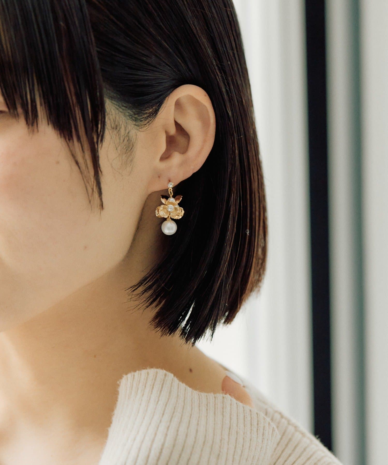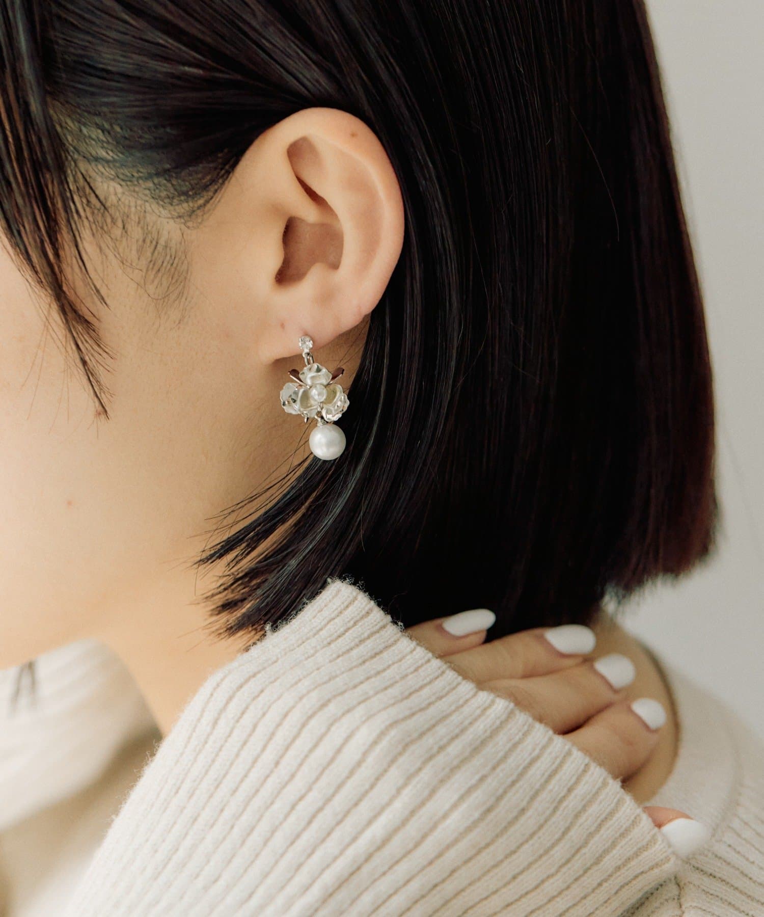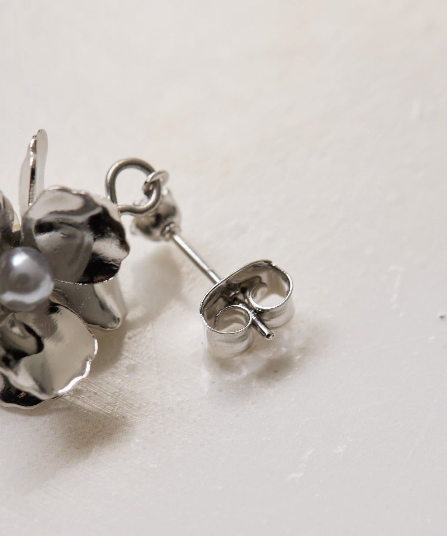 ・控えめな大きさながら、存在感あるフラワーパールピアス
