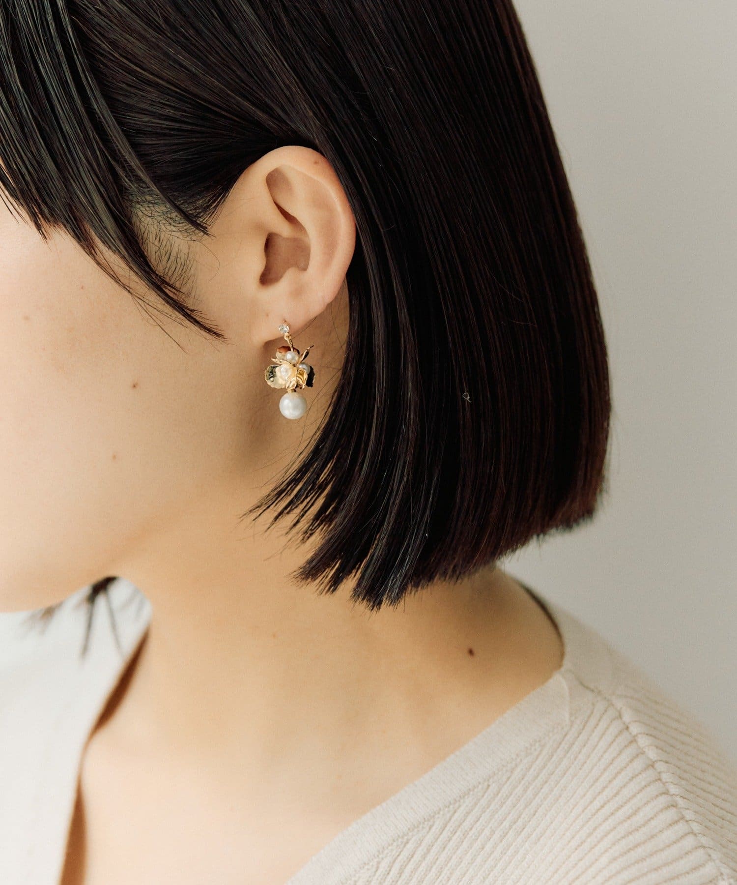 控えめなサイズ感ながらも、存在感のあるデザインで、耳元に咲く一輪の花が、あなたの魅力を引き立てます。