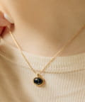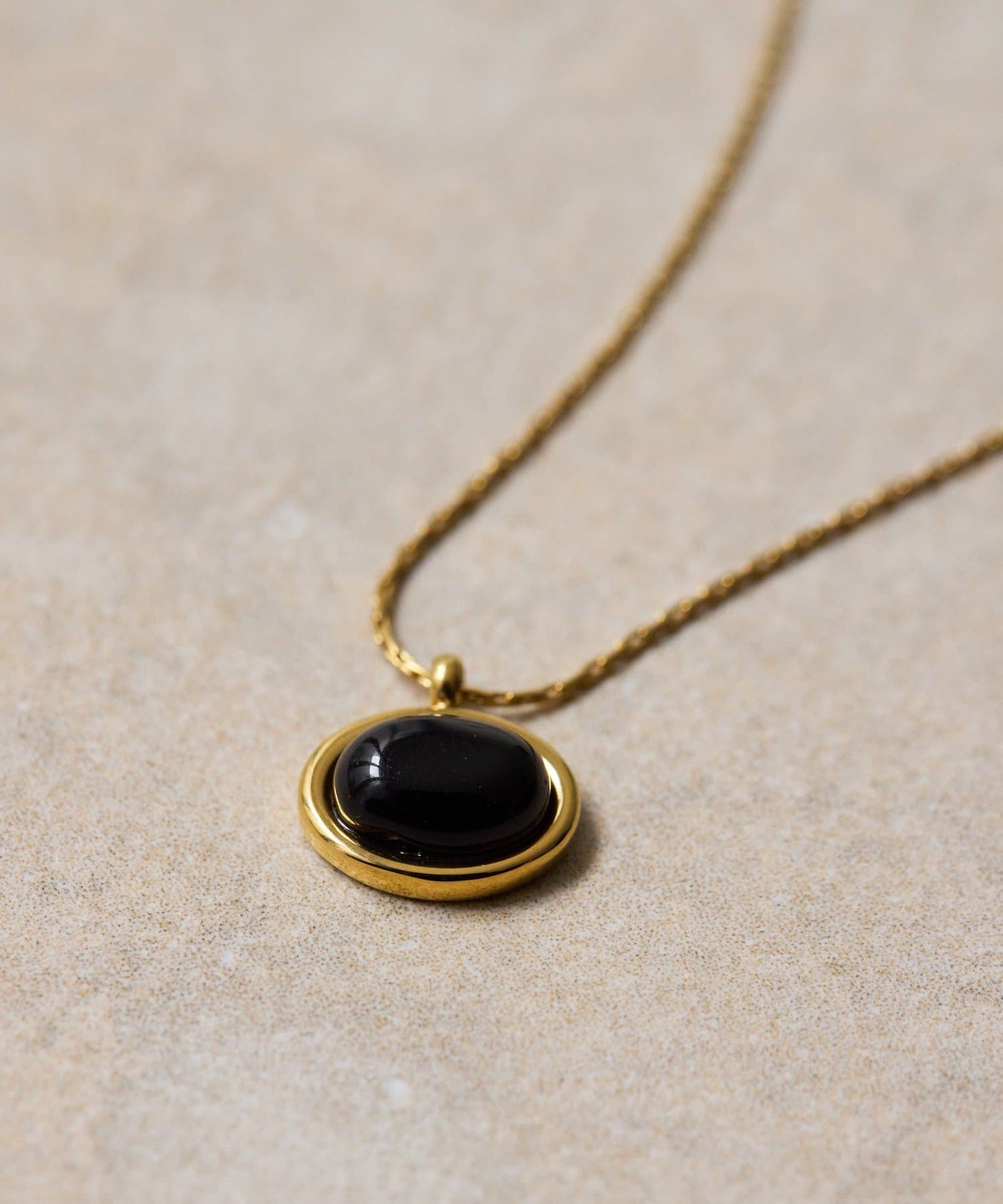 ・艶やかなブラックのカボションがワンポイントのステンレスペンダント