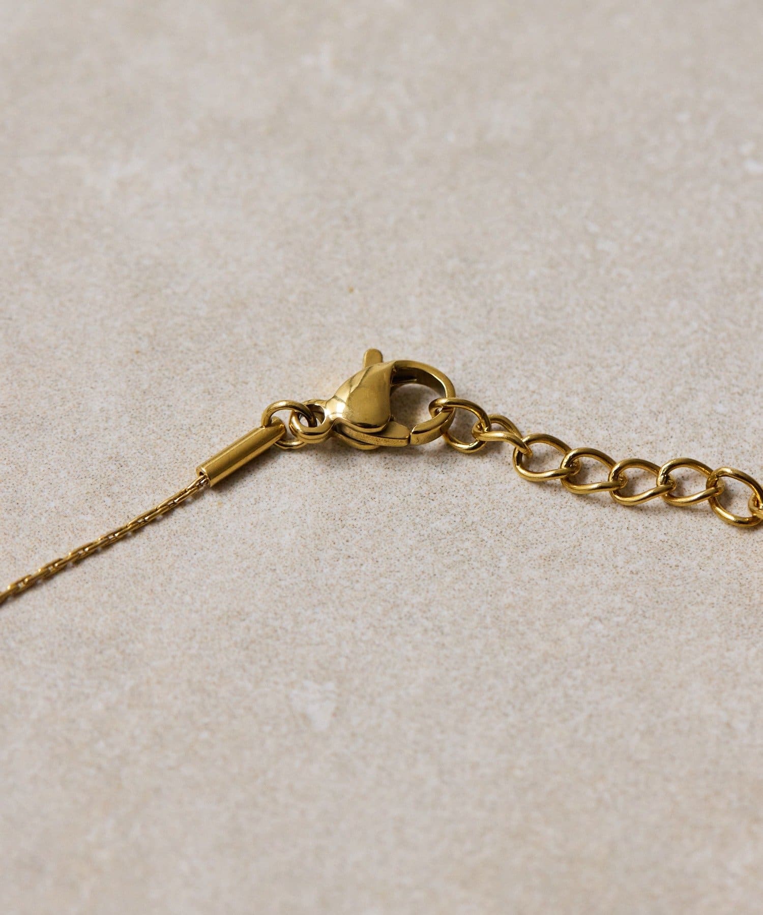 細く繊細なチェーンは、お手持ちのネックレスとの重ね付けにも相性抜群。