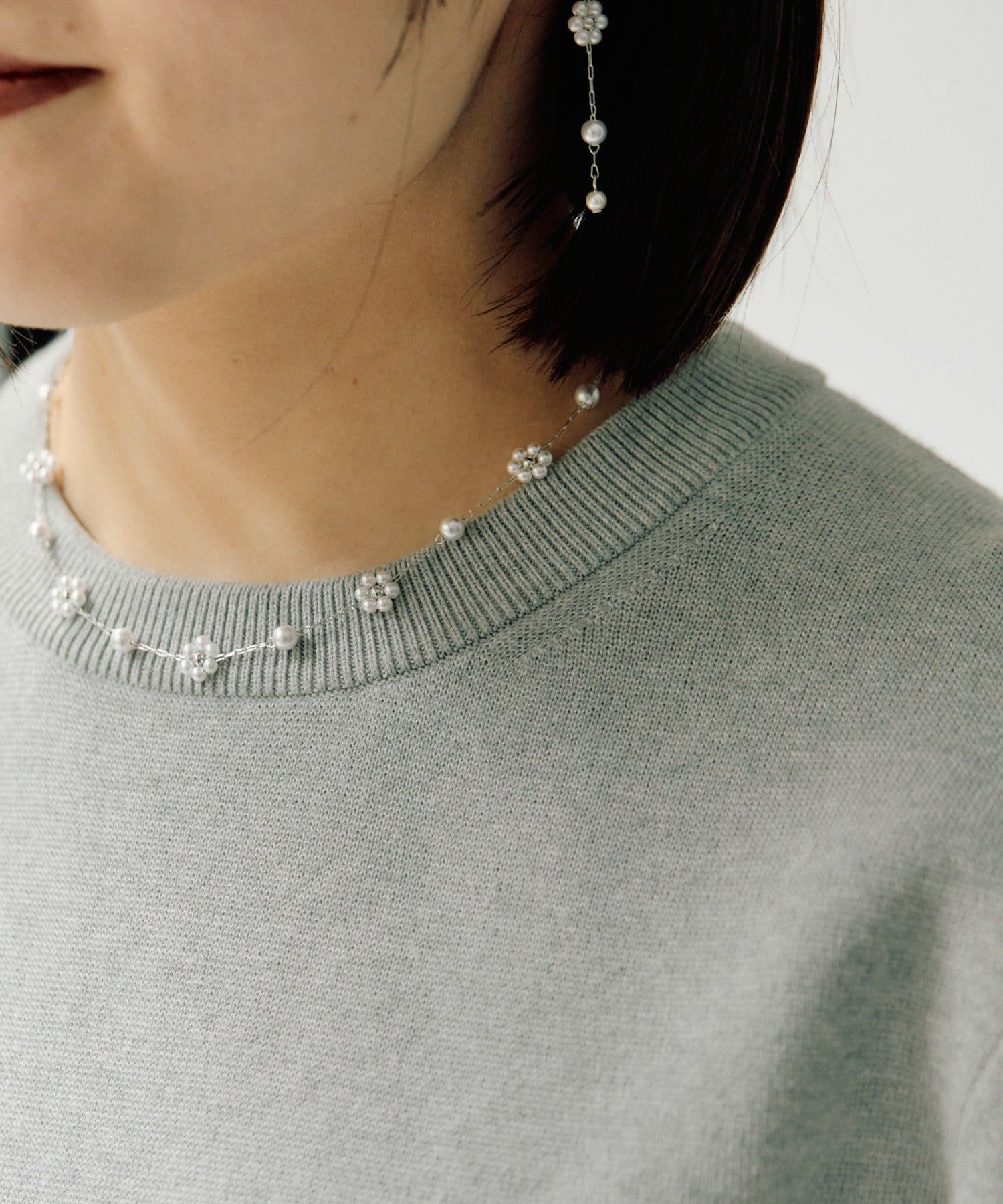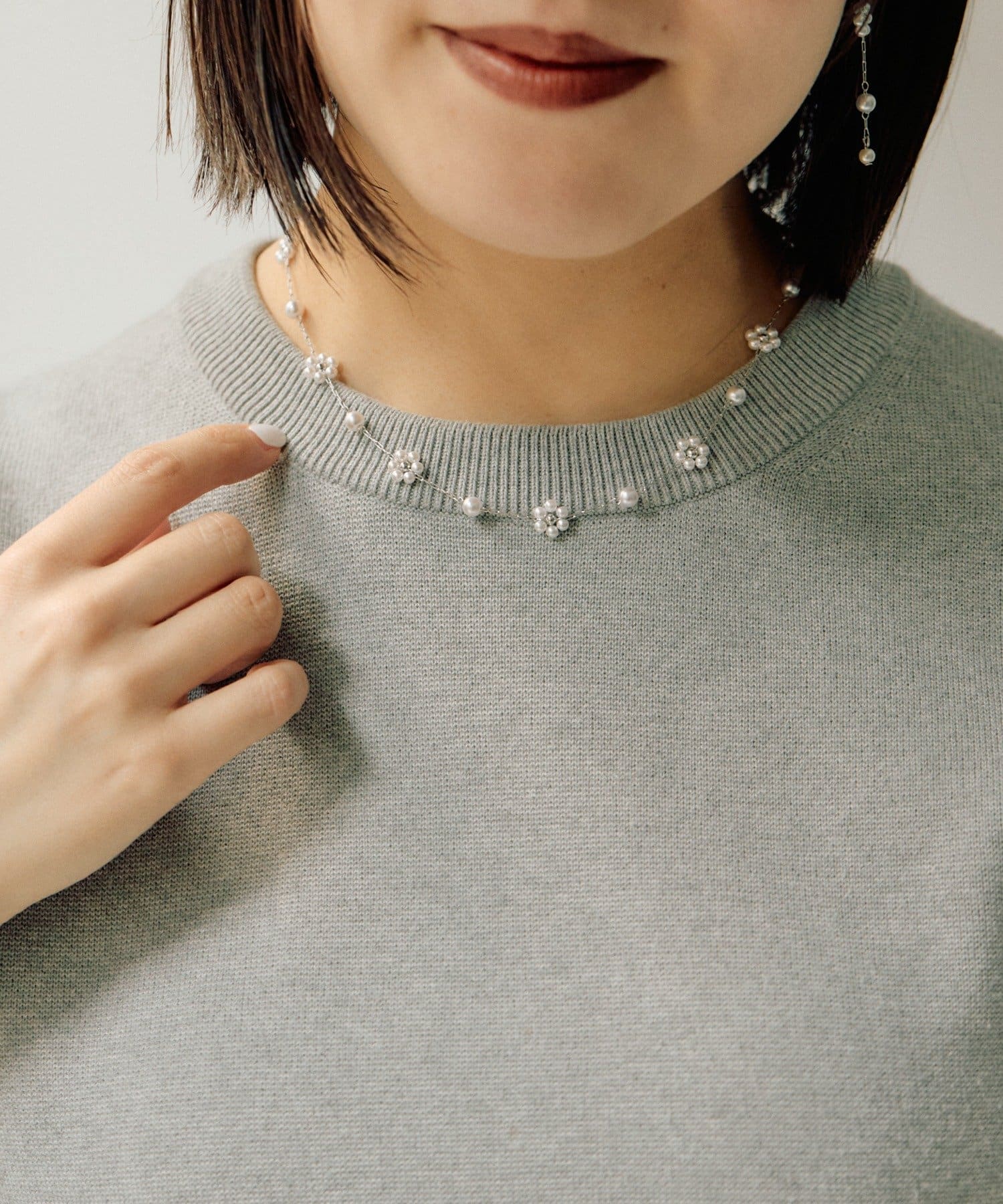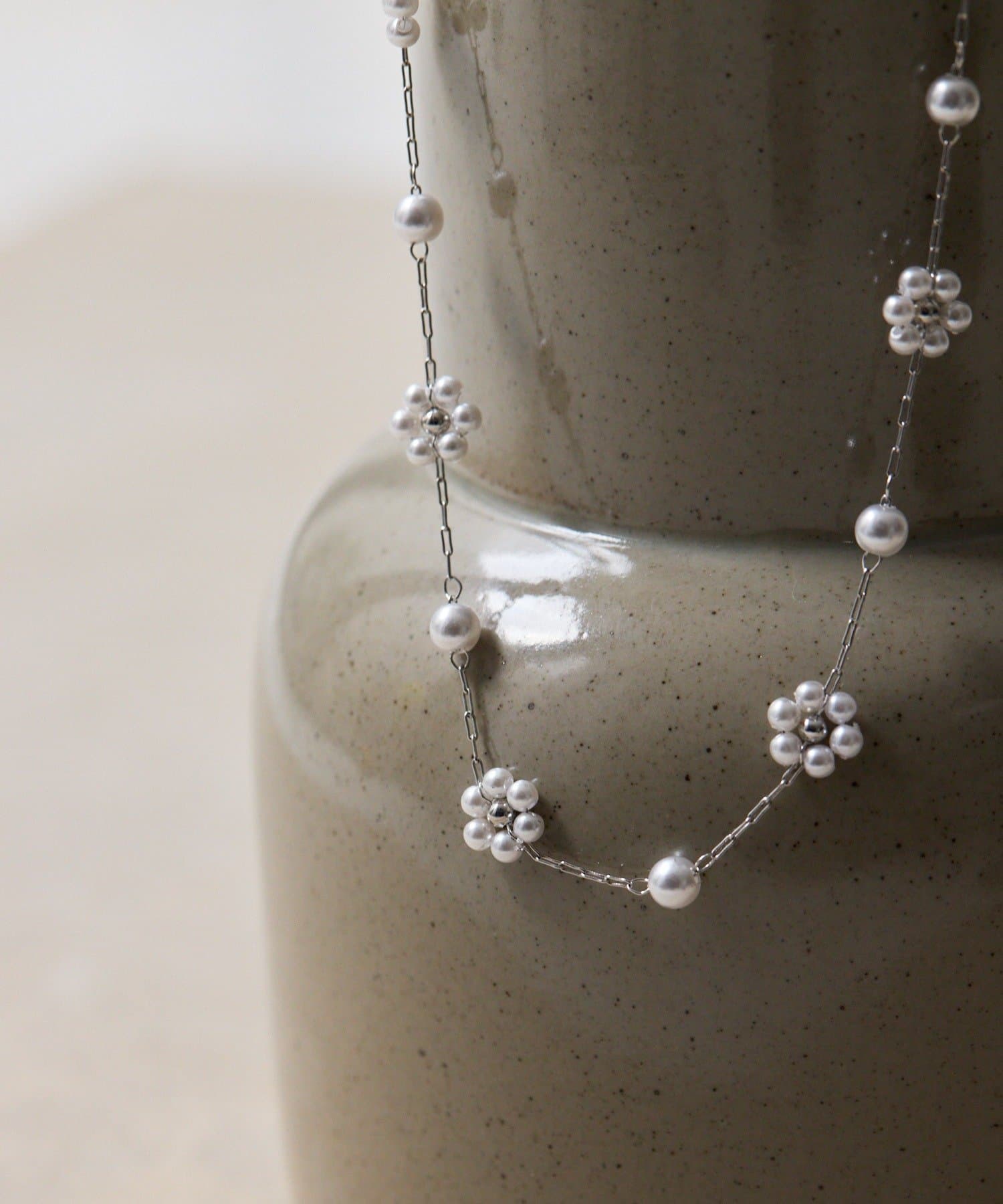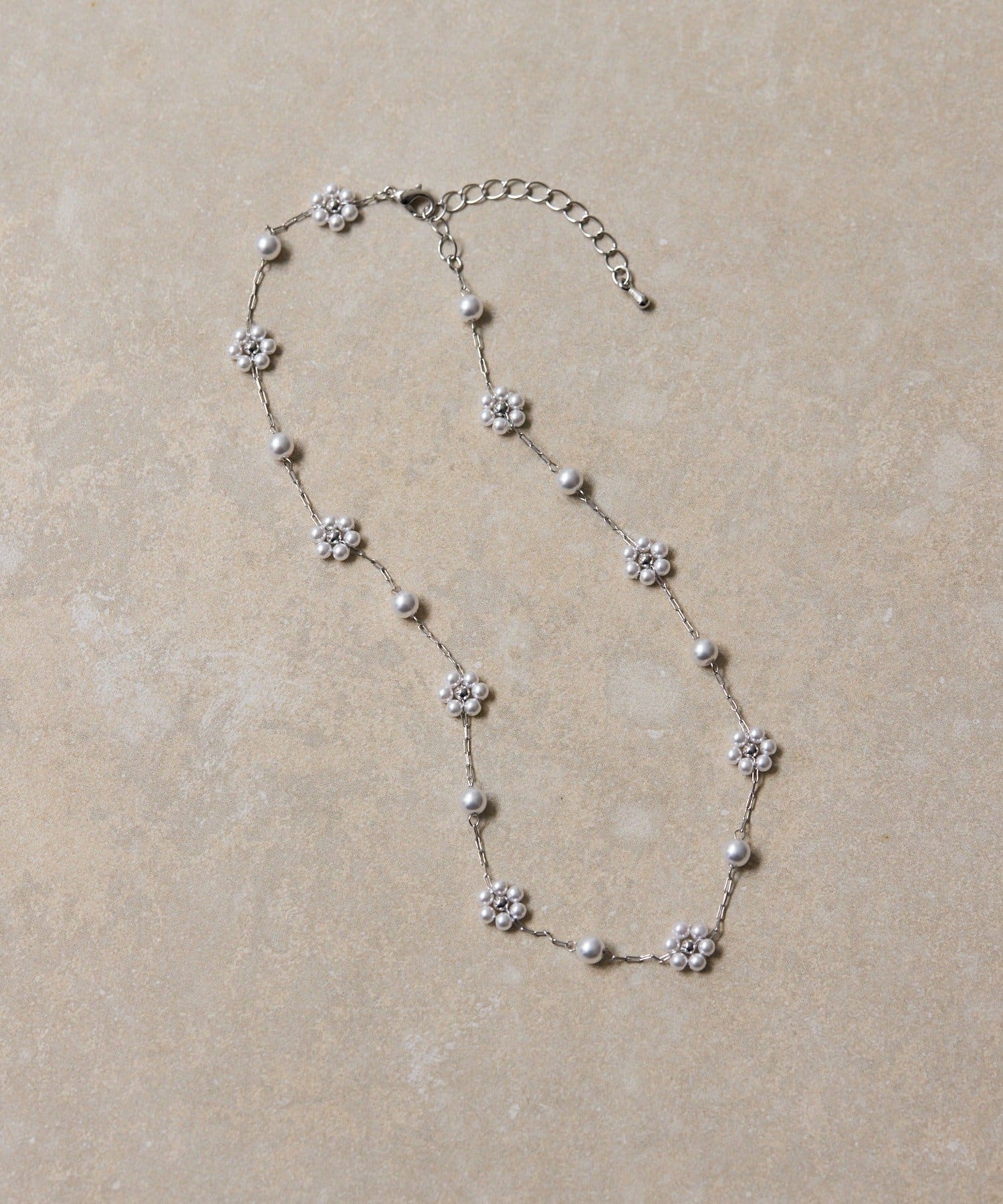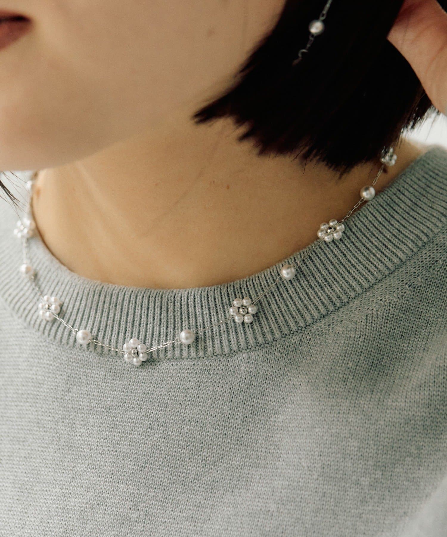 お花とパールの甘さを、シルバーがピリッと引き締める「フラワーパールネックレス」