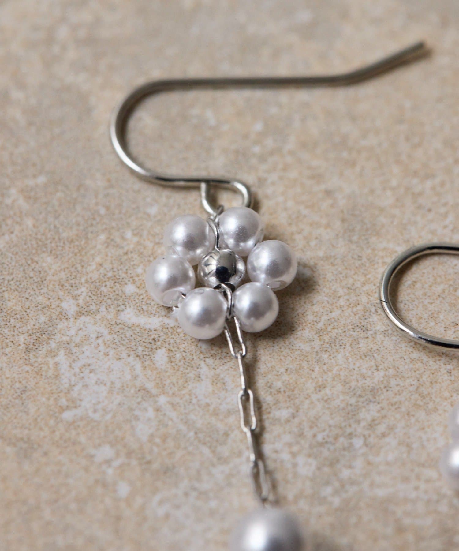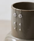 ・お花形に編んだパールとラウンドパールを並べた繊細なピアス