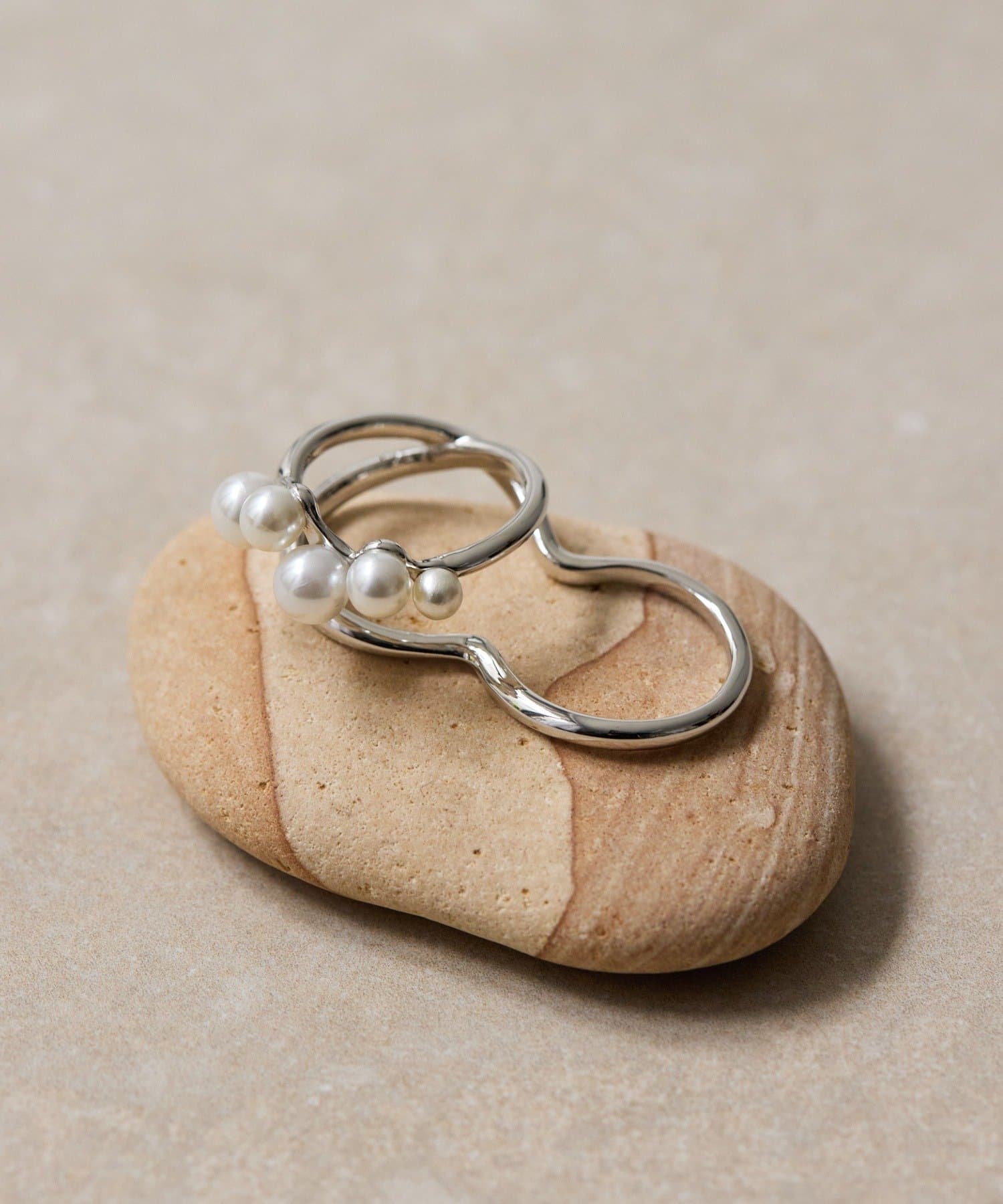 ・じわじわと人気が出てきているダブルフィンガーリングに、女性らしいパールが付いたものが登場