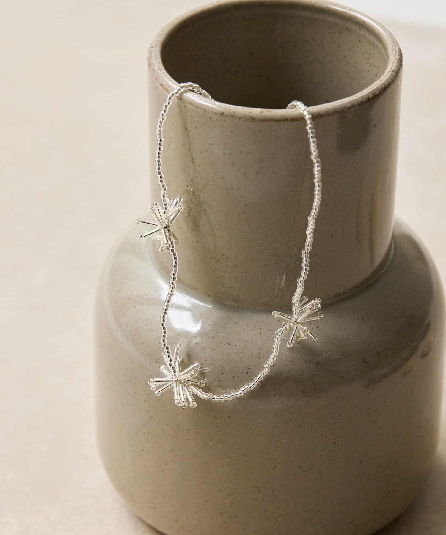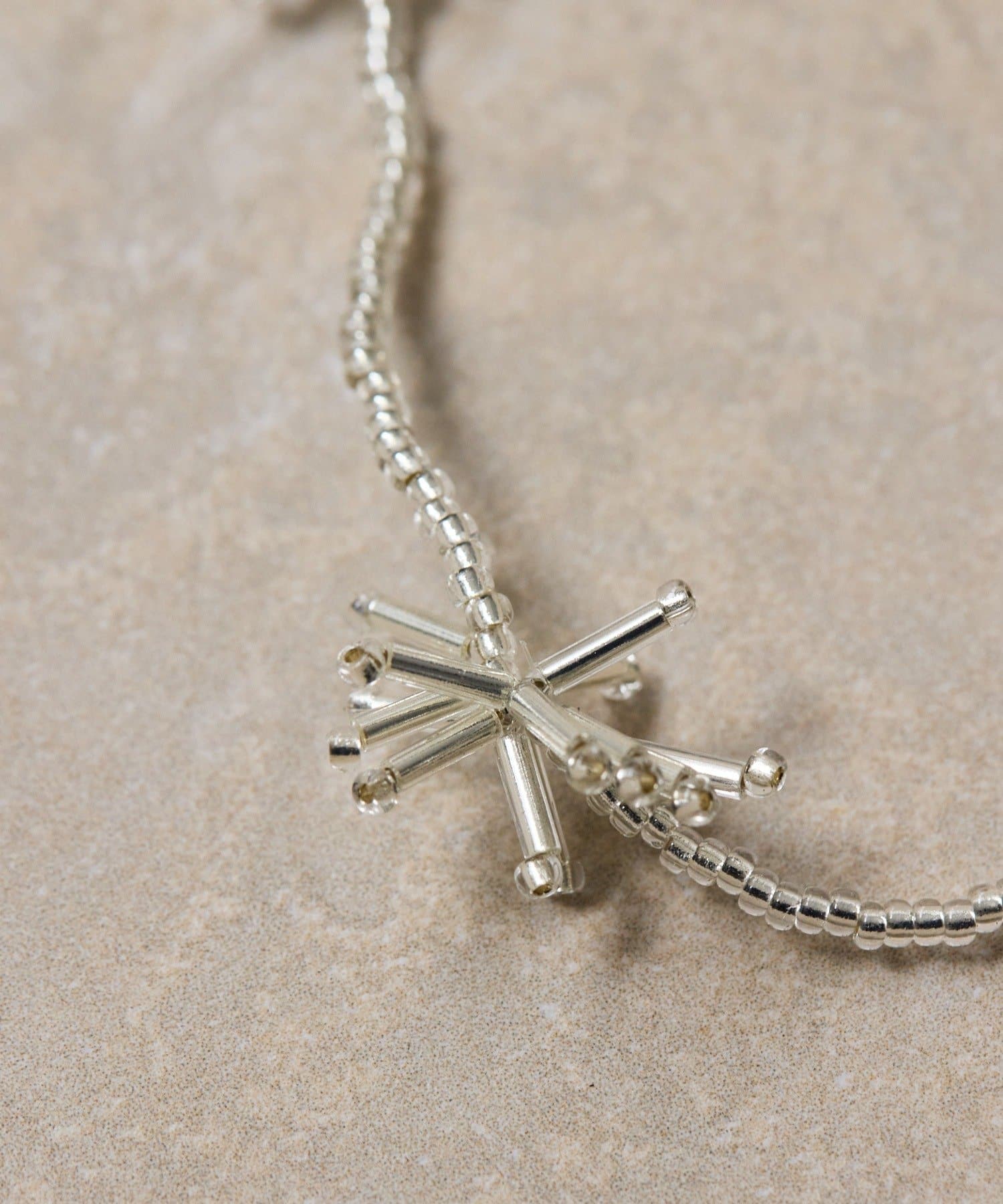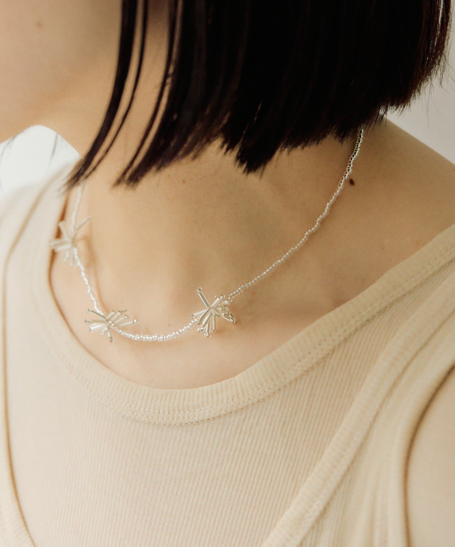 まるで夜空に咲く花火のような、繊細な輝きを放つビーズネックレス。