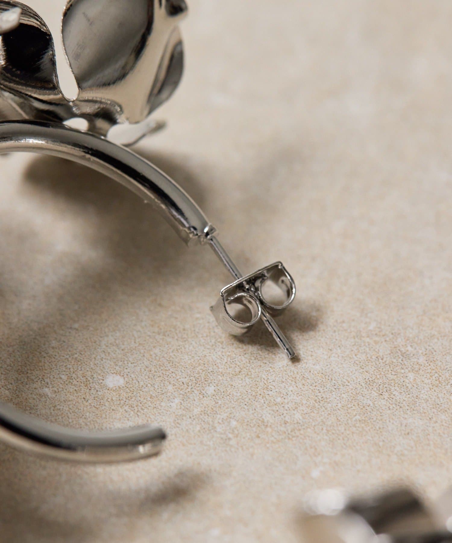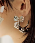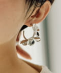 ・フープにメタルの花をあしらった、個性的なピアス