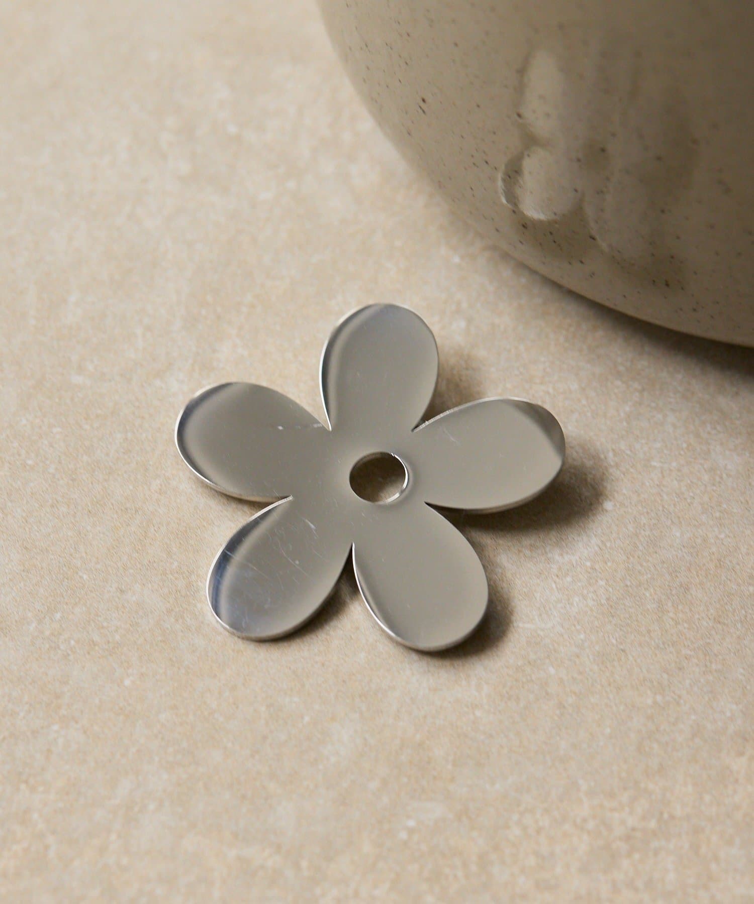 春の訪れを告げる、ステンレス製フラワープレートブローチ。